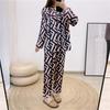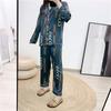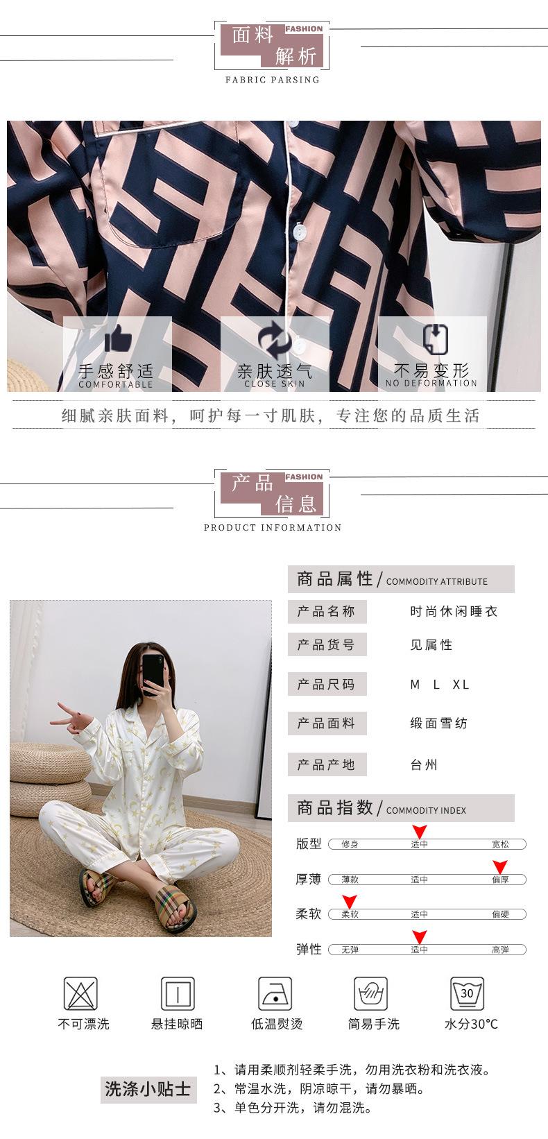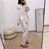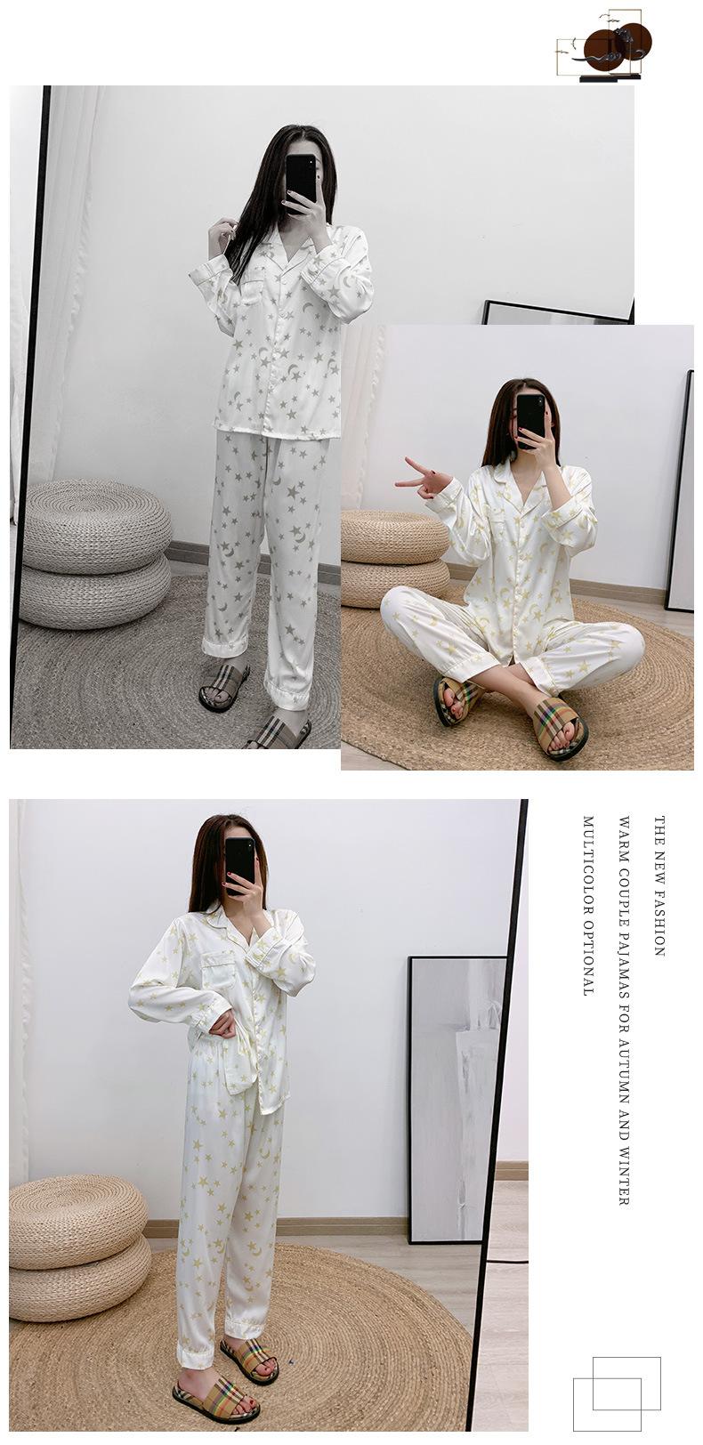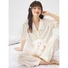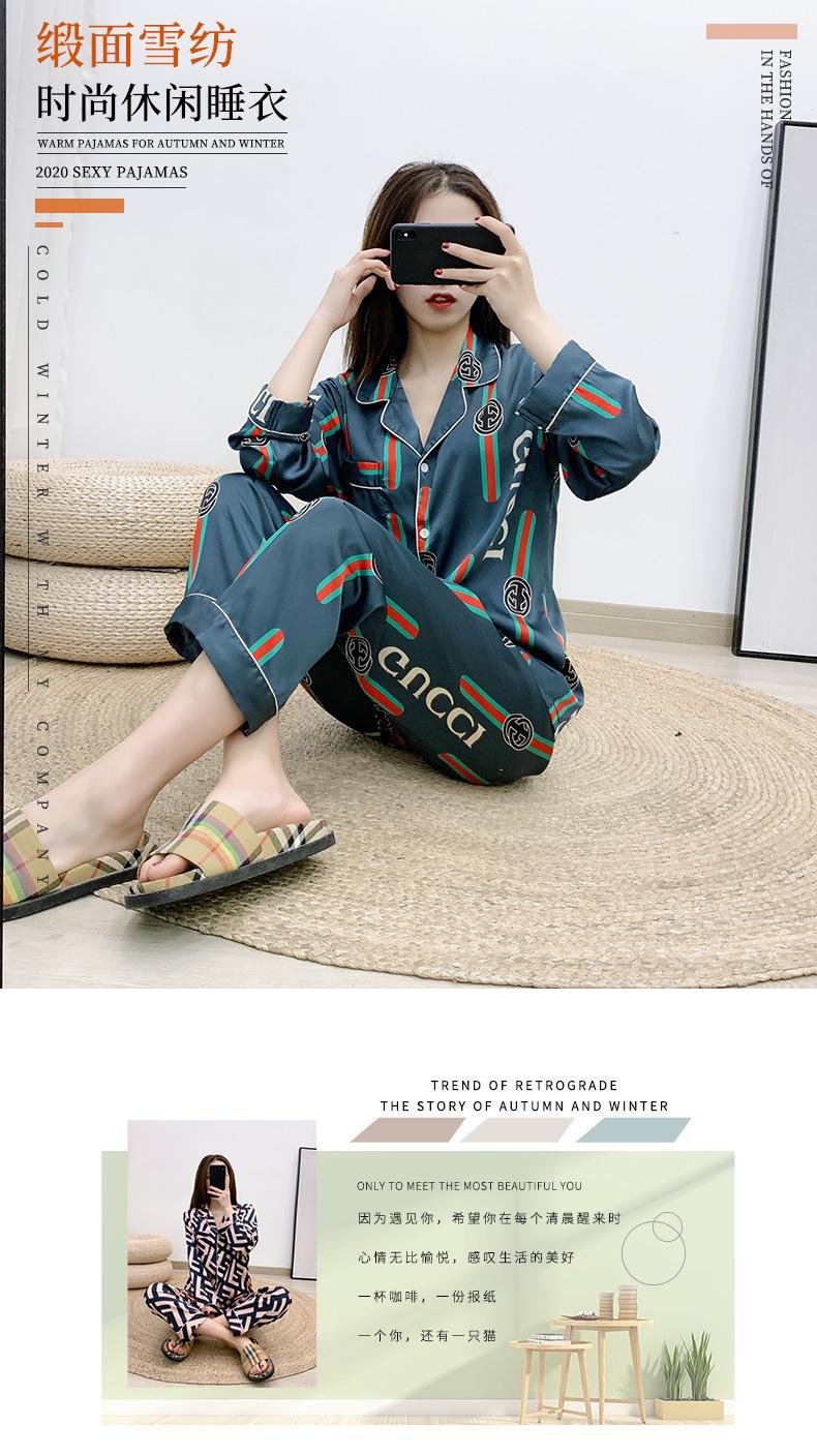 Conjunto de dos piezas de ropa para el hogar para mujer nuevo Primavera y Verano Pijama de satén y chifón Cárdigan Solapa Manga larga Pantalones Pijama