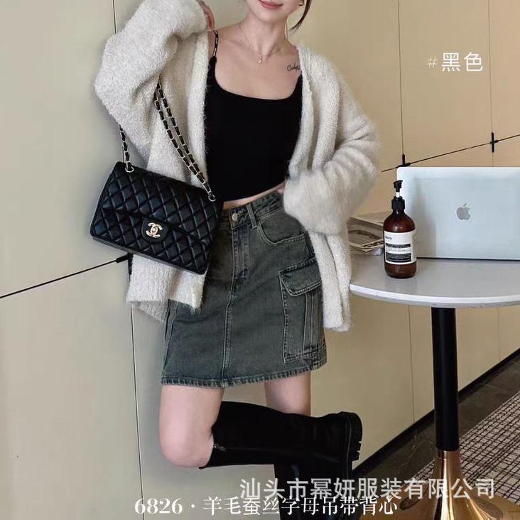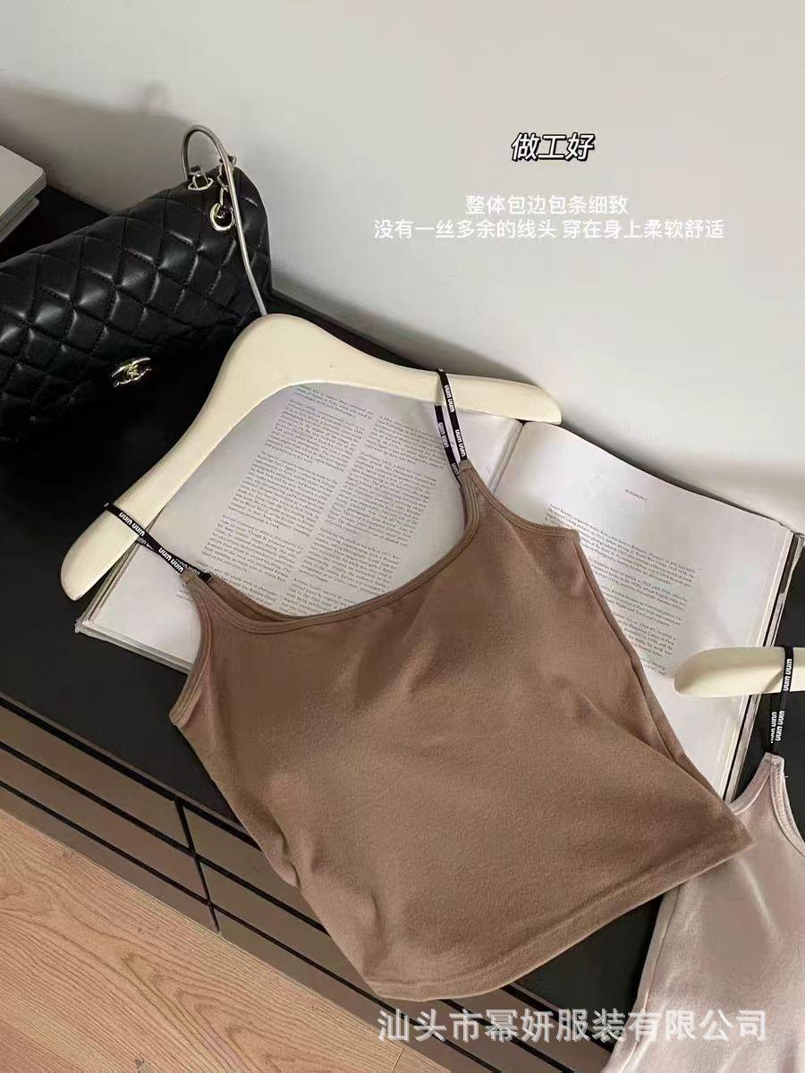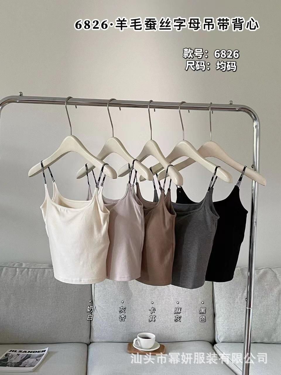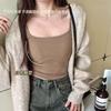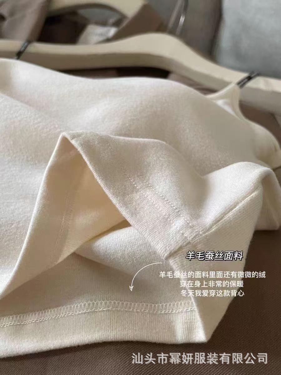 Otoño e Invierno Lijado Color Sólido Lana Seda Correa de Letras Cuello Cuadrado Chaleco Cálido con Base de Copa Fija Top