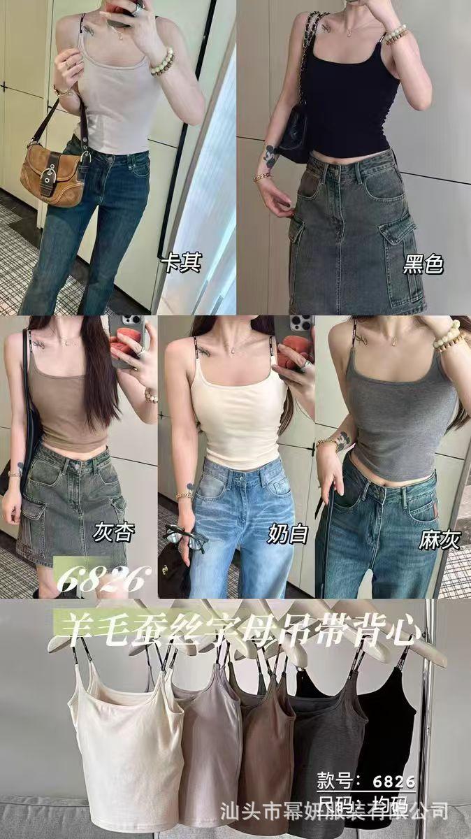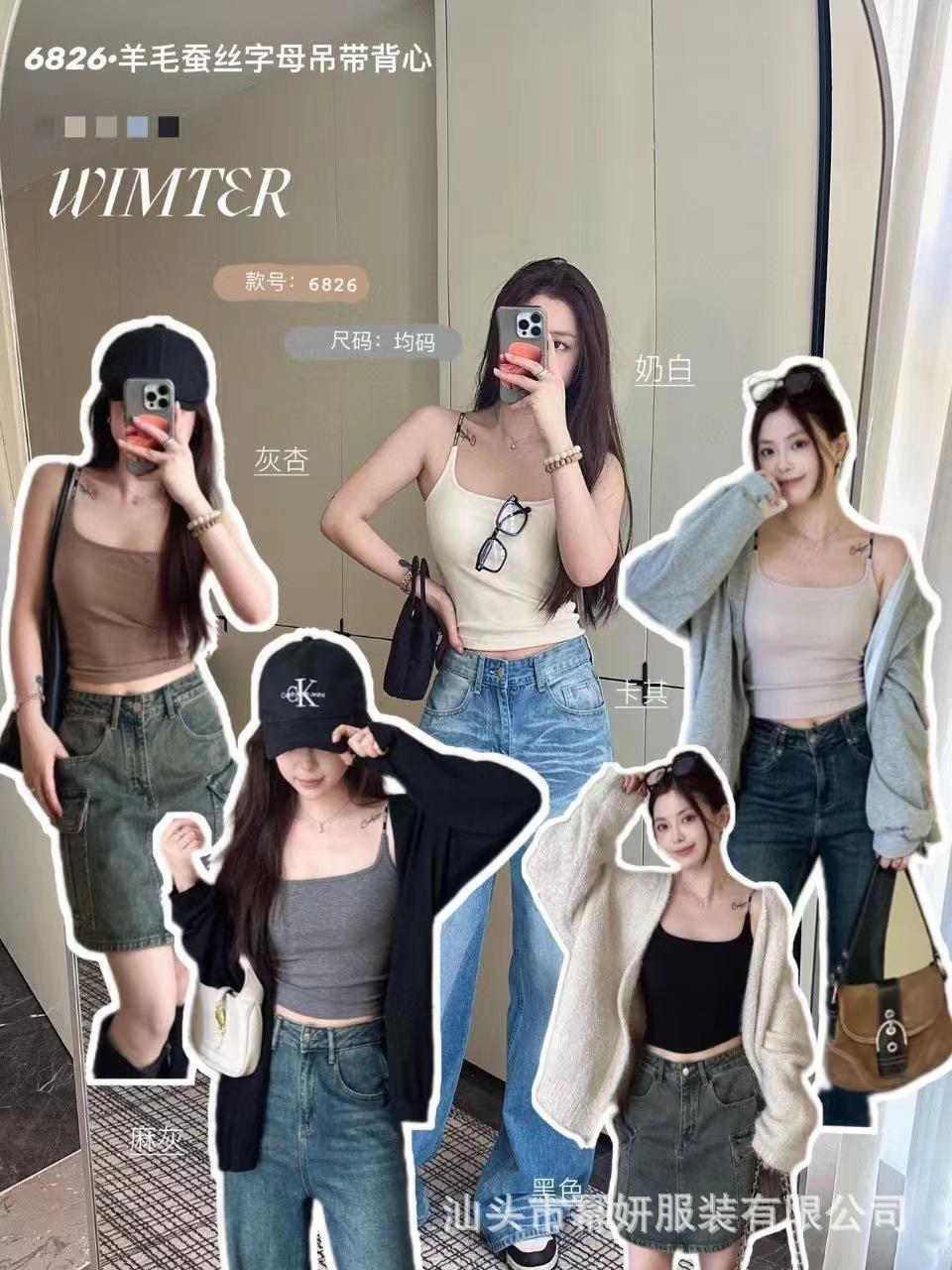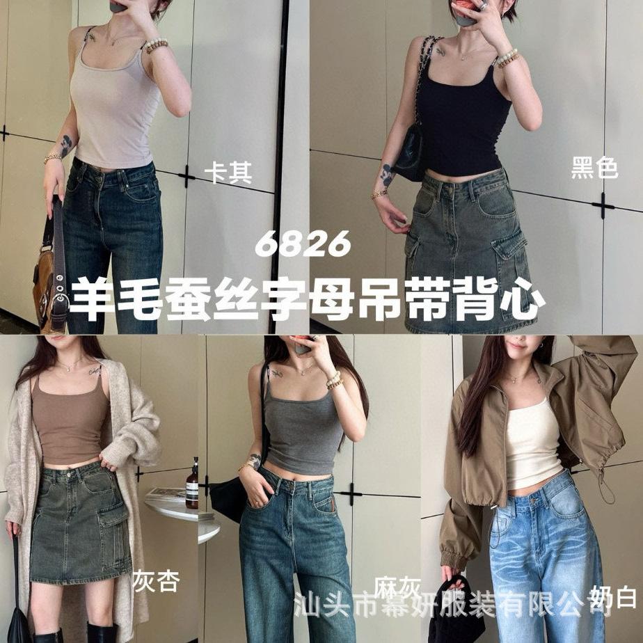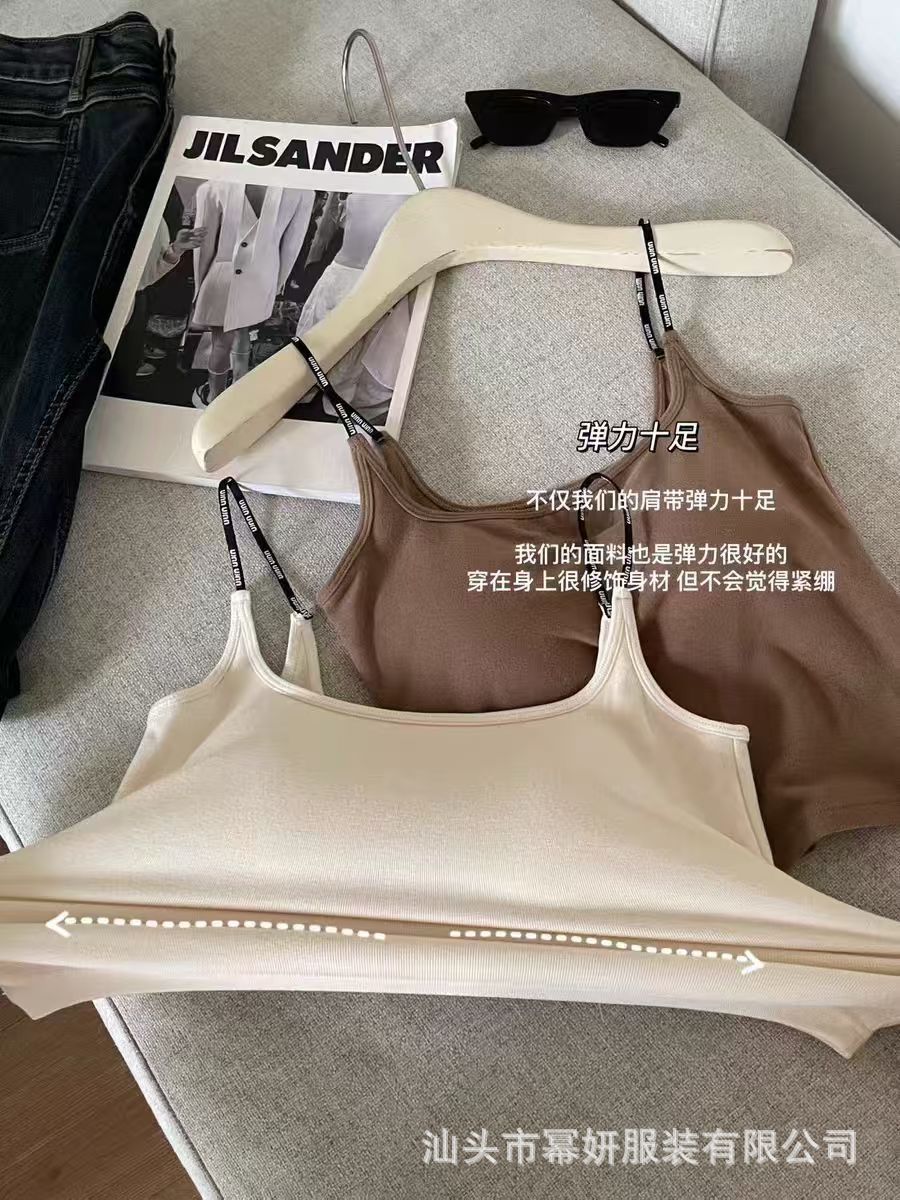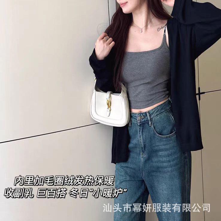 Otoño e Invierno Lijado Color Sólido Lana Seda Correa de Letras Cuello Cuadrado Chaleco Cálido con Base de Copa Fija Top