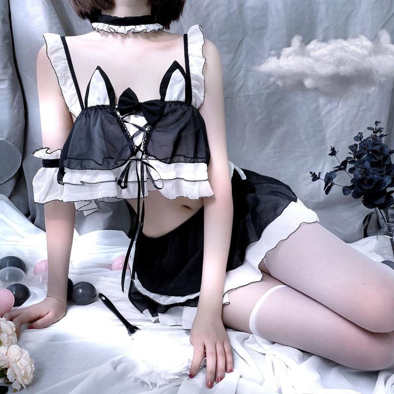 Lencería sexy mujer conejita gatita salvaje falda corta transparente uniforme tentación traje de gasa cospla de sirvienta¥23Compre ya