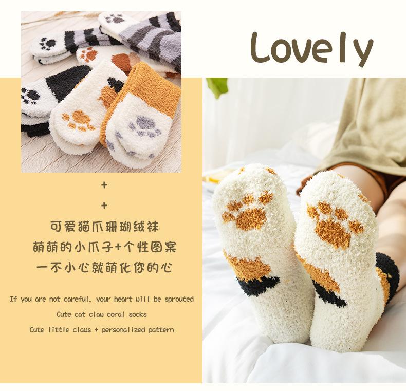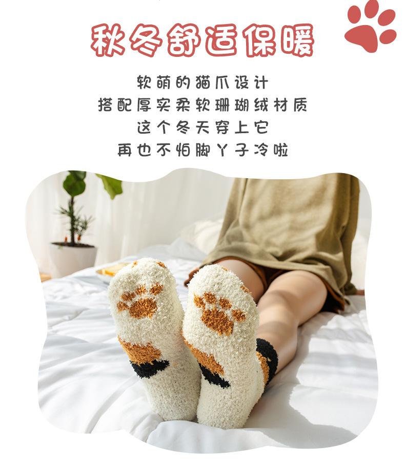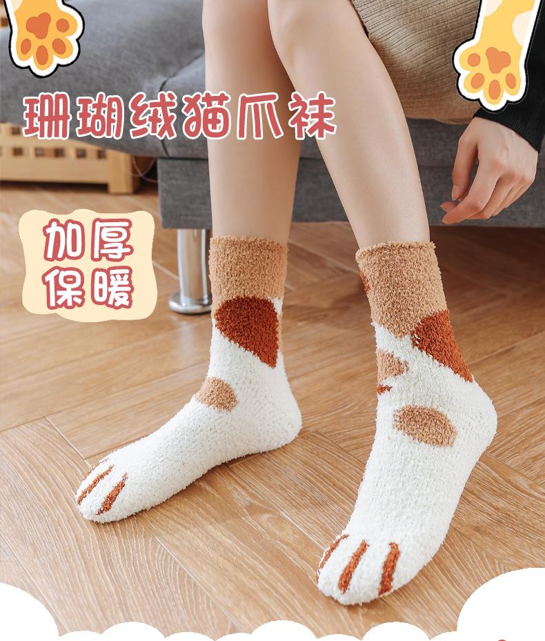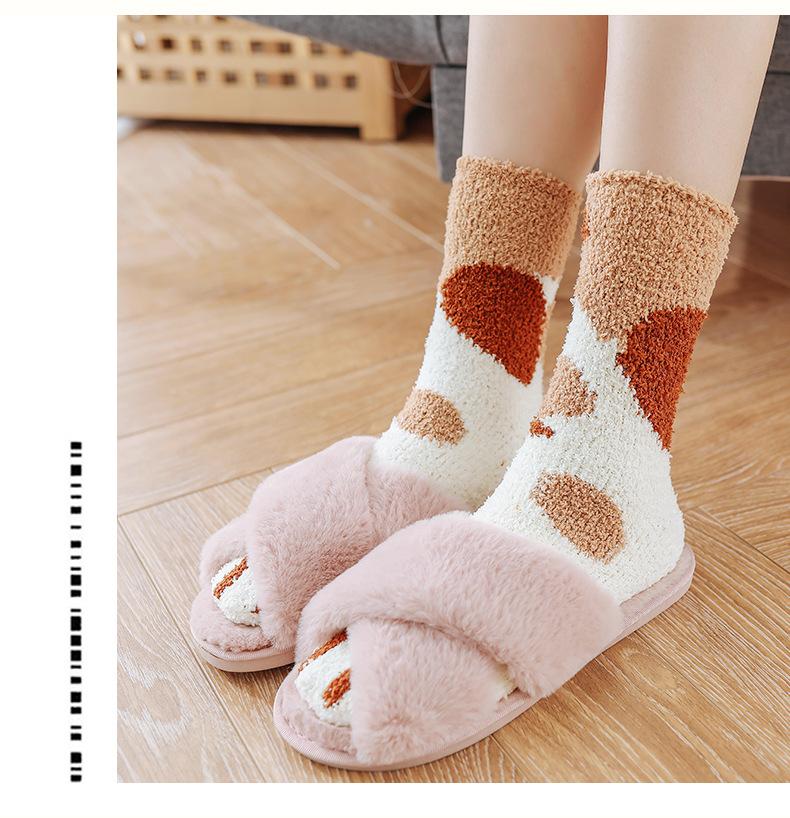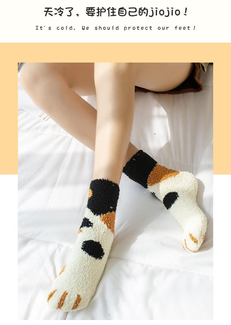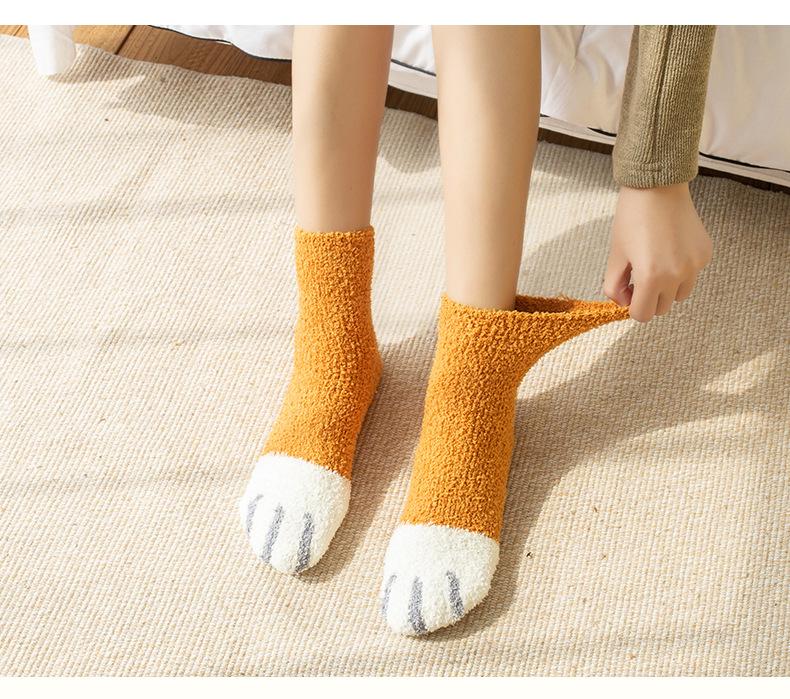 Calcetines de Garra de Gato de Forro Polar Coral para Mujer Invierno Cálidos Gruesos Felpa para Dormir Calcetines de Toalla para Piso para Ocio en Casa de Mujer
