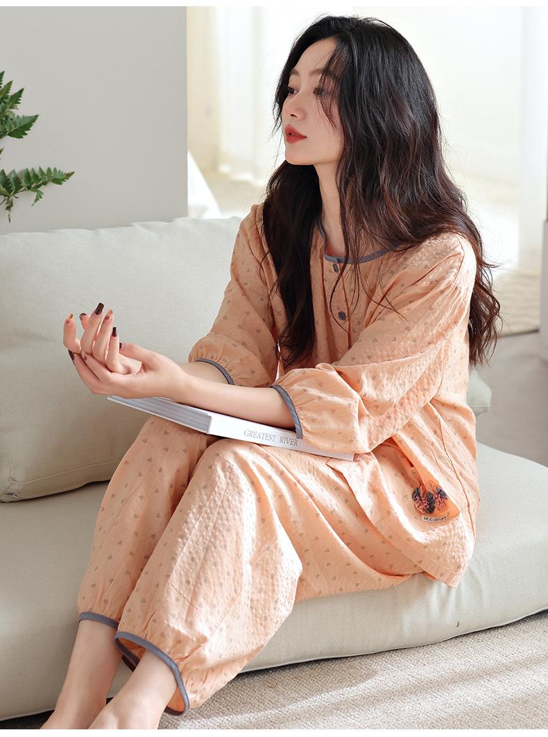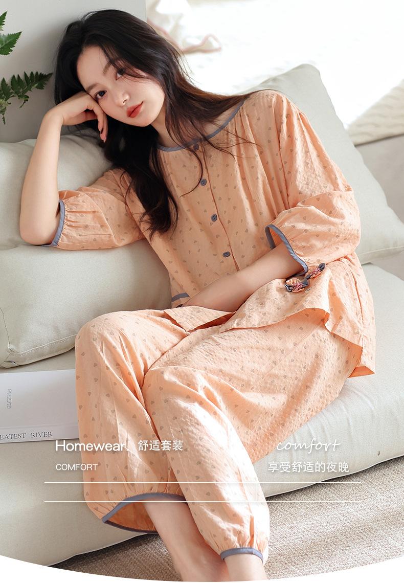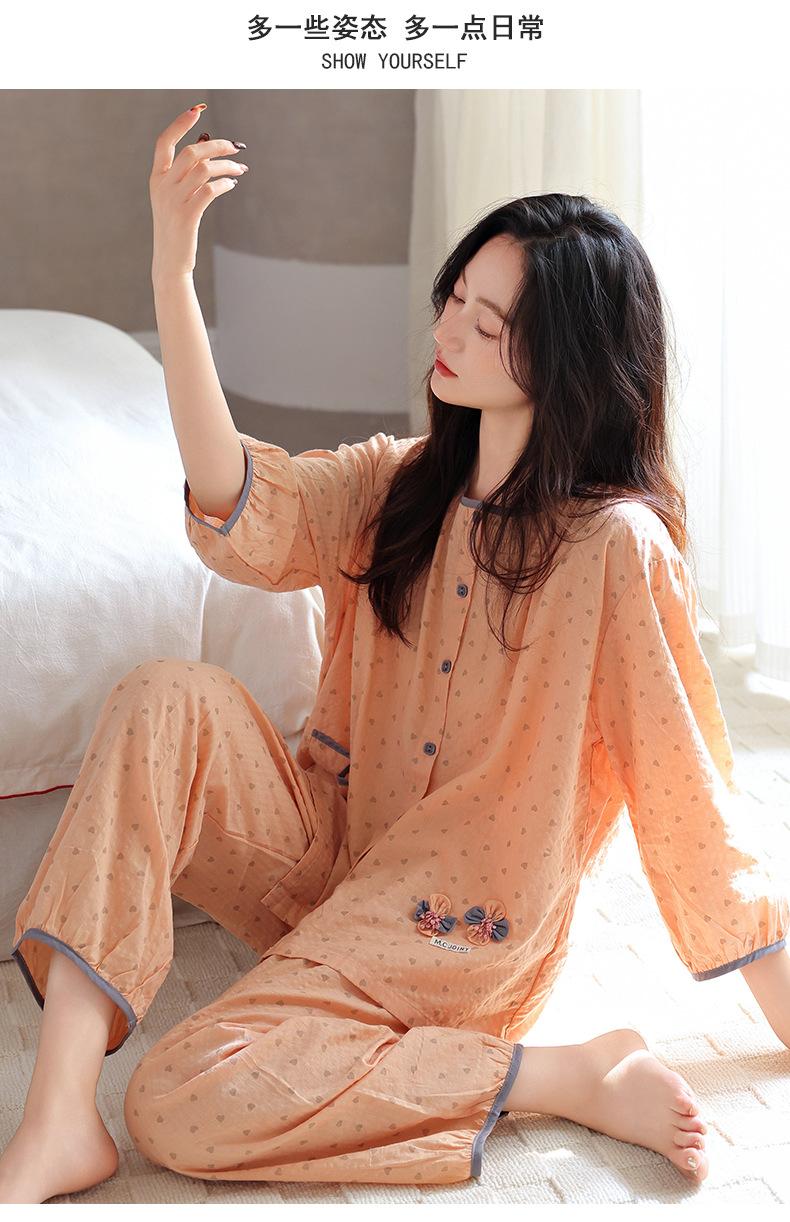Compra Pijama para Mujer Primavera y Otoño Algodón Tejido Fino Primavera y Verano Gasa de Algodón Puro Manga Siete Octavos Traje de Algodón para Madre de Mediana Edad al por mayor en Joom.pro