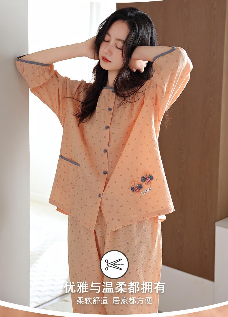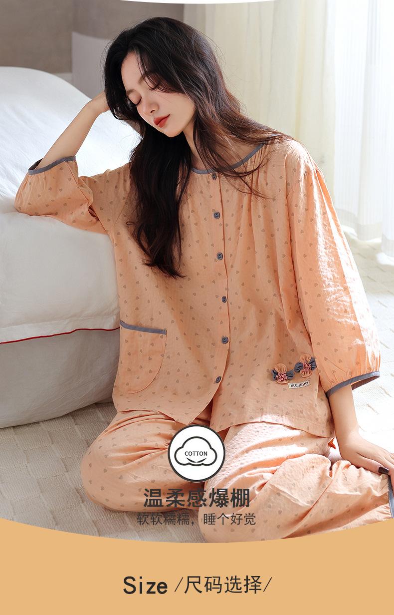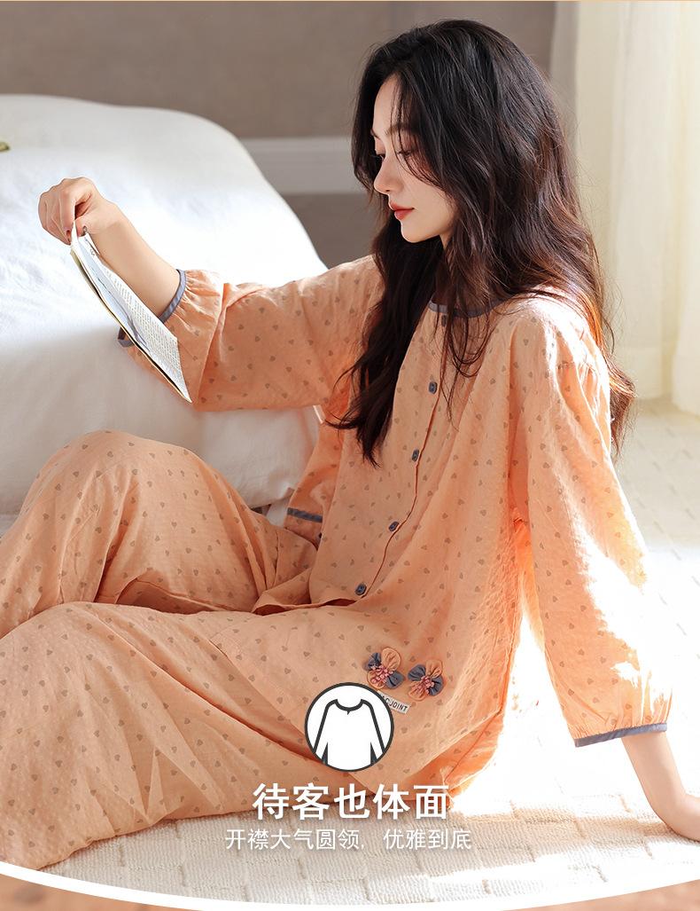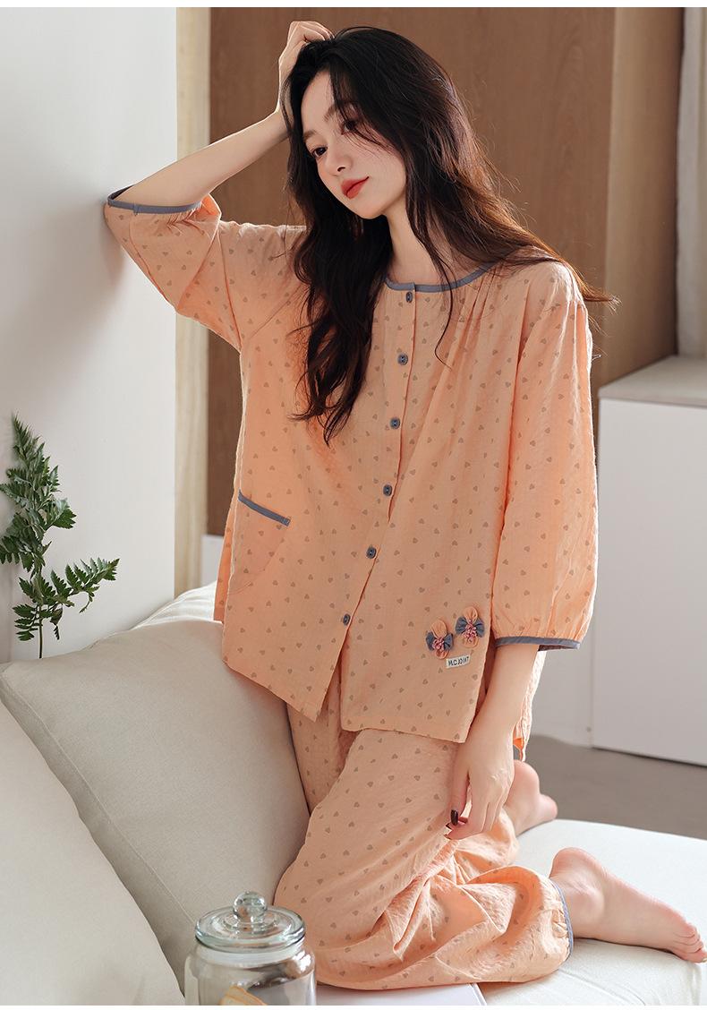 Compra Pijama para Mujer Primavera y Otoño Algodón Tejido Fino Primavera y Verano Gasa de Algodón Puro Manga Siete Octavos Traje de Algodón para Madre de Mediana Edad al por mayor en Joom.pro