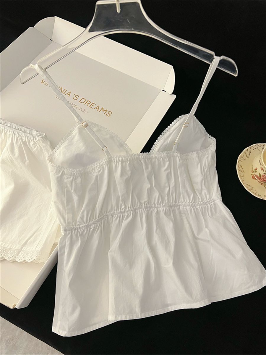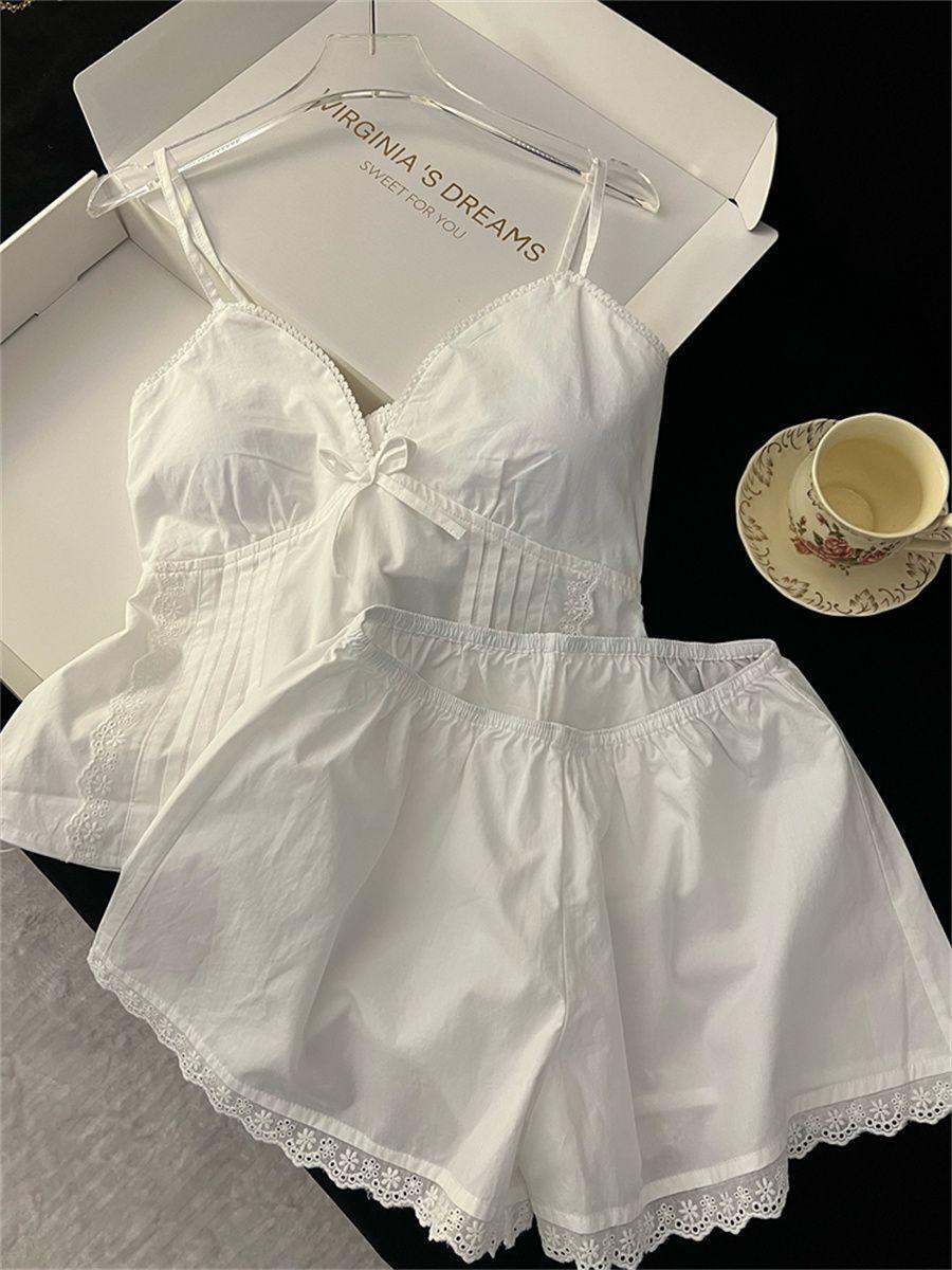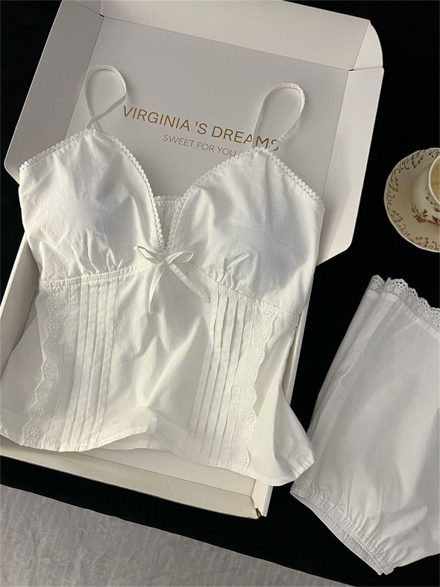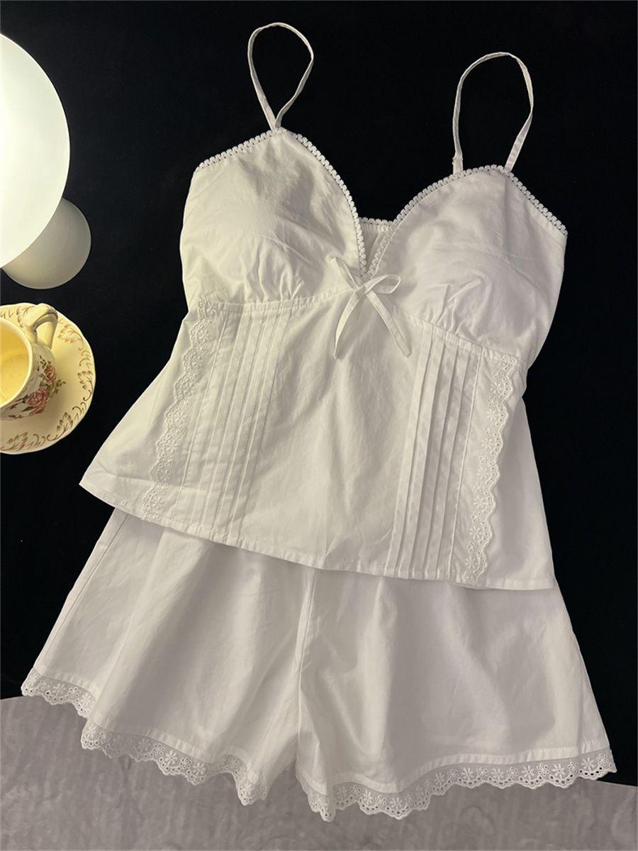 Pijama de Tirantes Estilo Francés Puro Deseo para Mujer 2025 Nuevo Verano Sexy Encaje de Lazo Ropa de Casa Traje