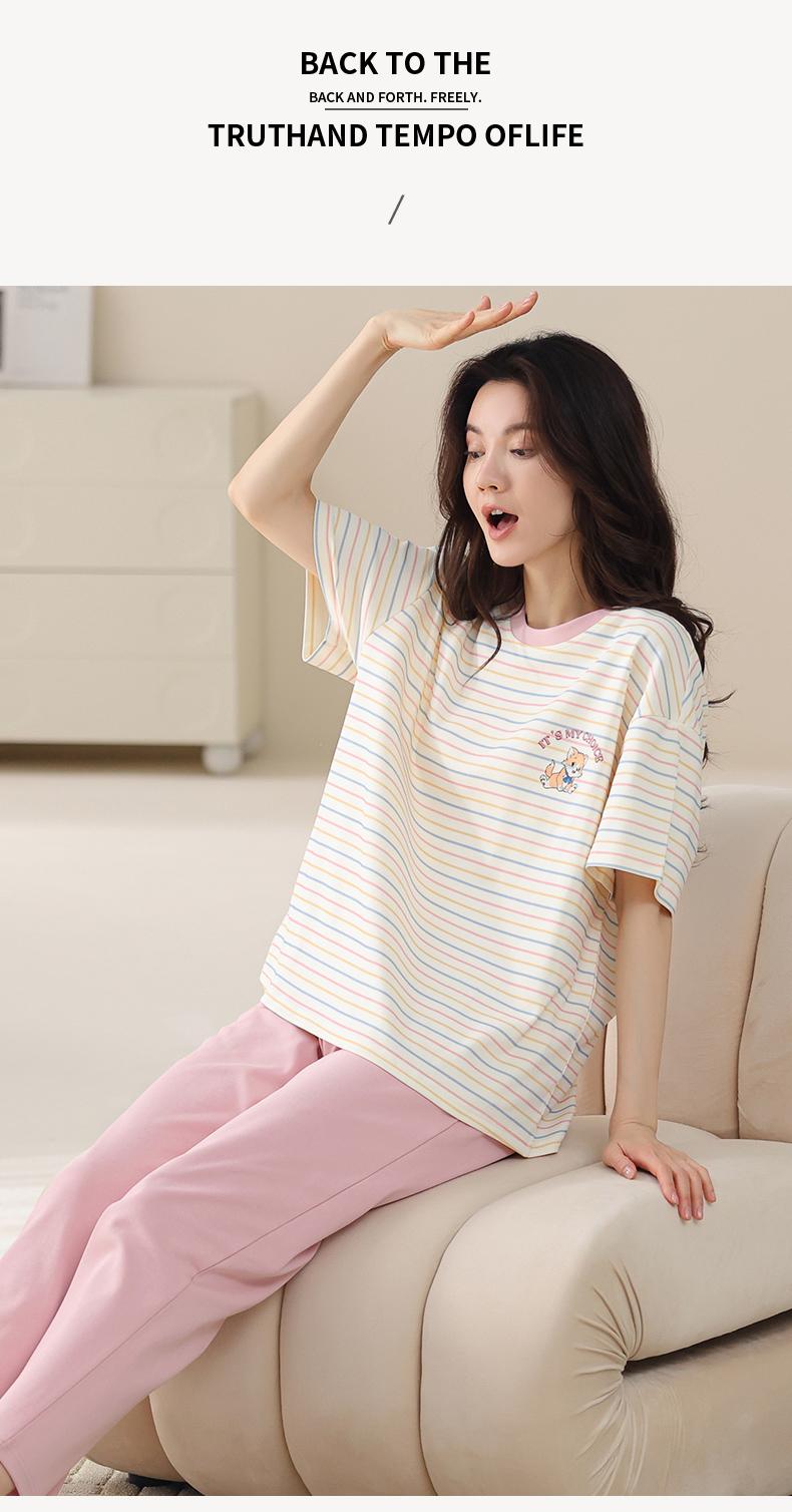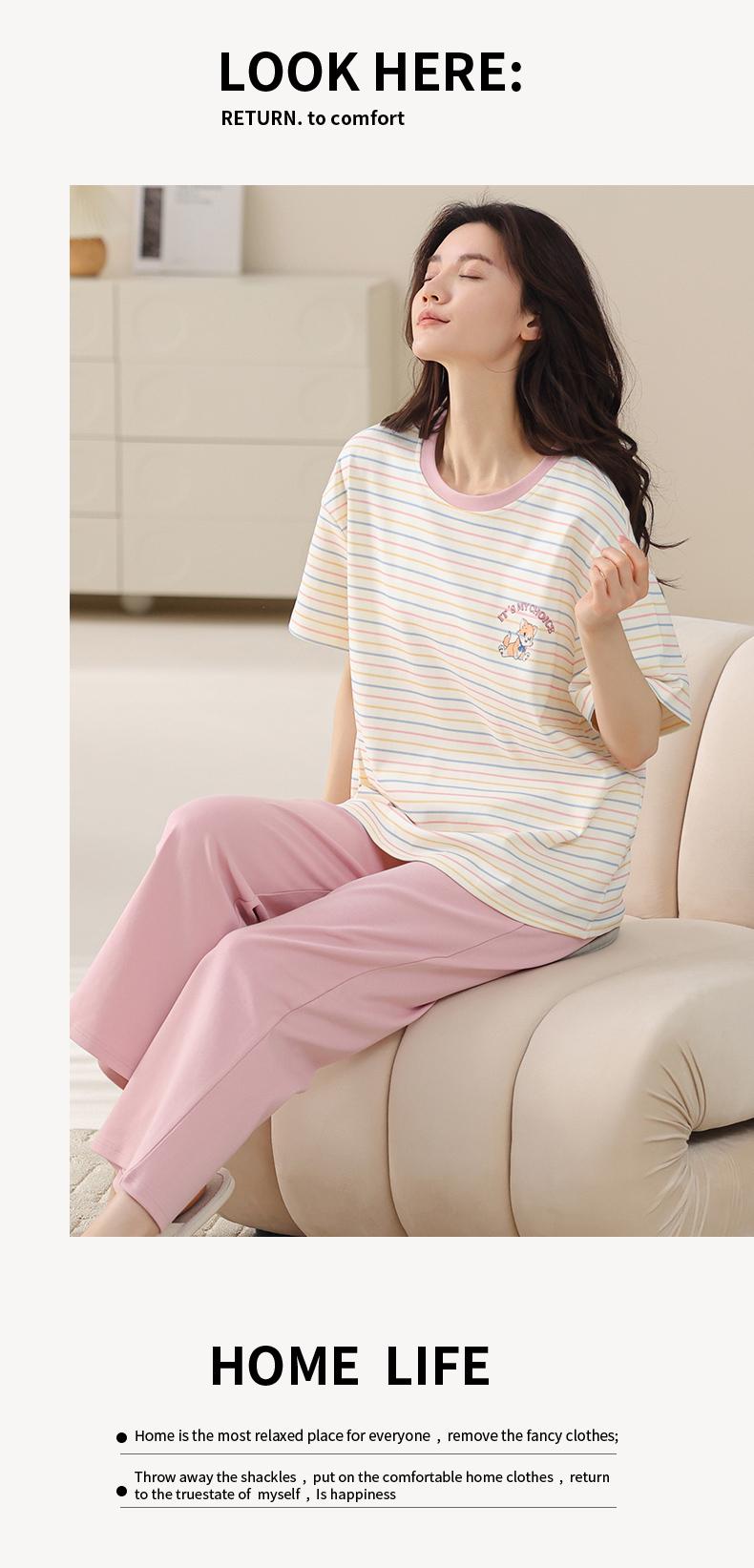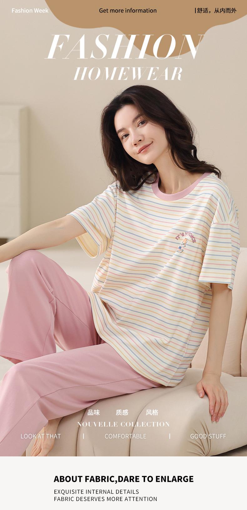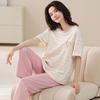 [algodón puro] 2025 pijama nuevo de verano para mujer de manga corta y pantalón fino, traje sencillo, ropa para el hogar que se puede usar para salir