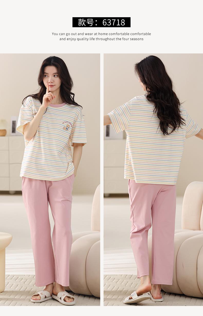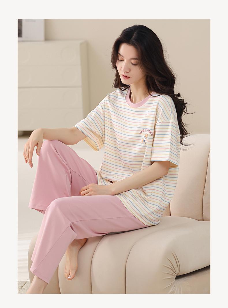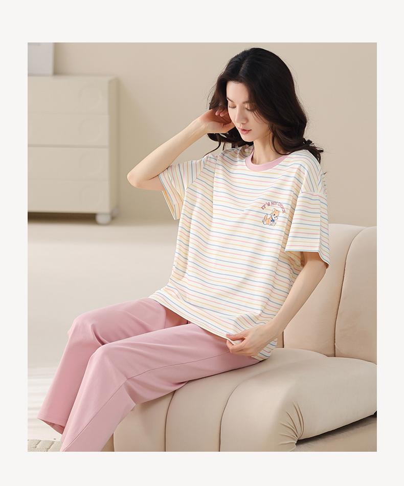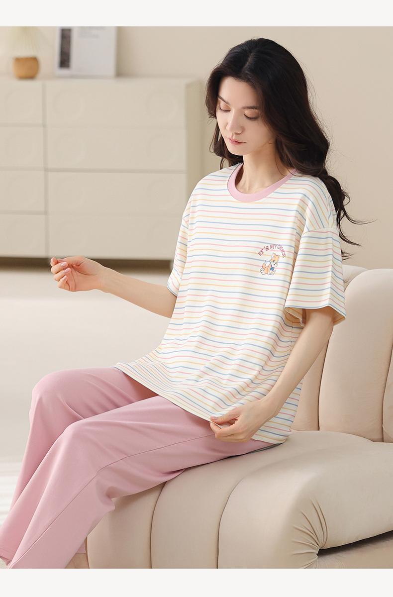 [algodón puro] 2025 pijama nuevo de verano para mujer de manga corta y pantalón fino, traje sencillo, ropa para el hogar que se puede usar para salir