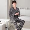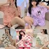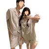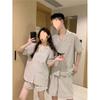 Pijamas de Estilo para Pareja para Hombre y Mujer Verano Manga Corta Cárdigan Solapa Suelto Talla Grande Casual Rayado Conjunto de Ropa para el Hogar