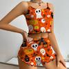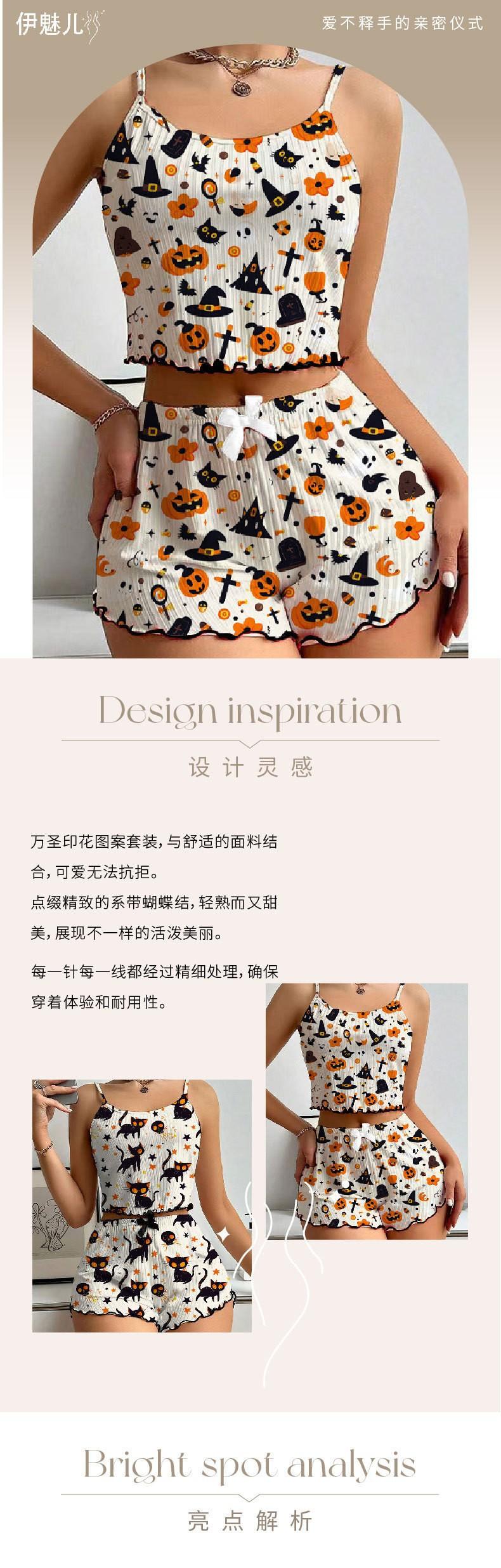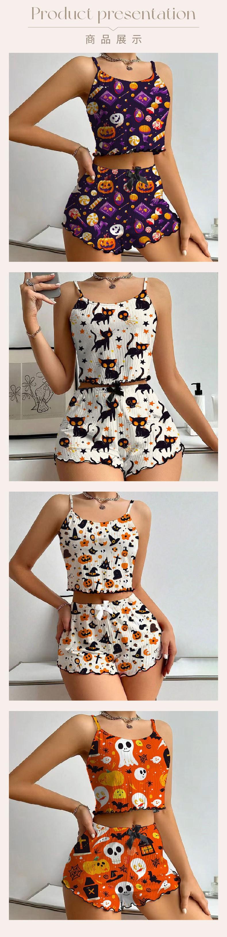 Conjunto Europeo y Americano Transfronterizo para el Hogar de Encaje con Tirantes y Shorts Cómodo Elástico para el Hogar Casual Usable Pijama para Mujer