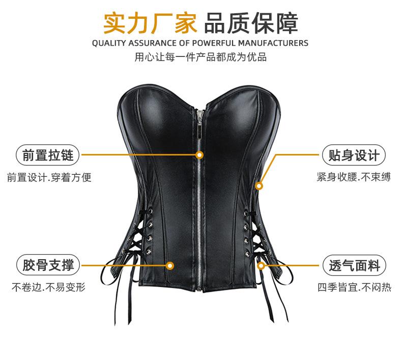 Corsé de Tirantes Estilo Spice Girl Punk Negro Cintura Ajustada Adelgazante Pecho Decoración de Lazo PU Cremallera Corsé