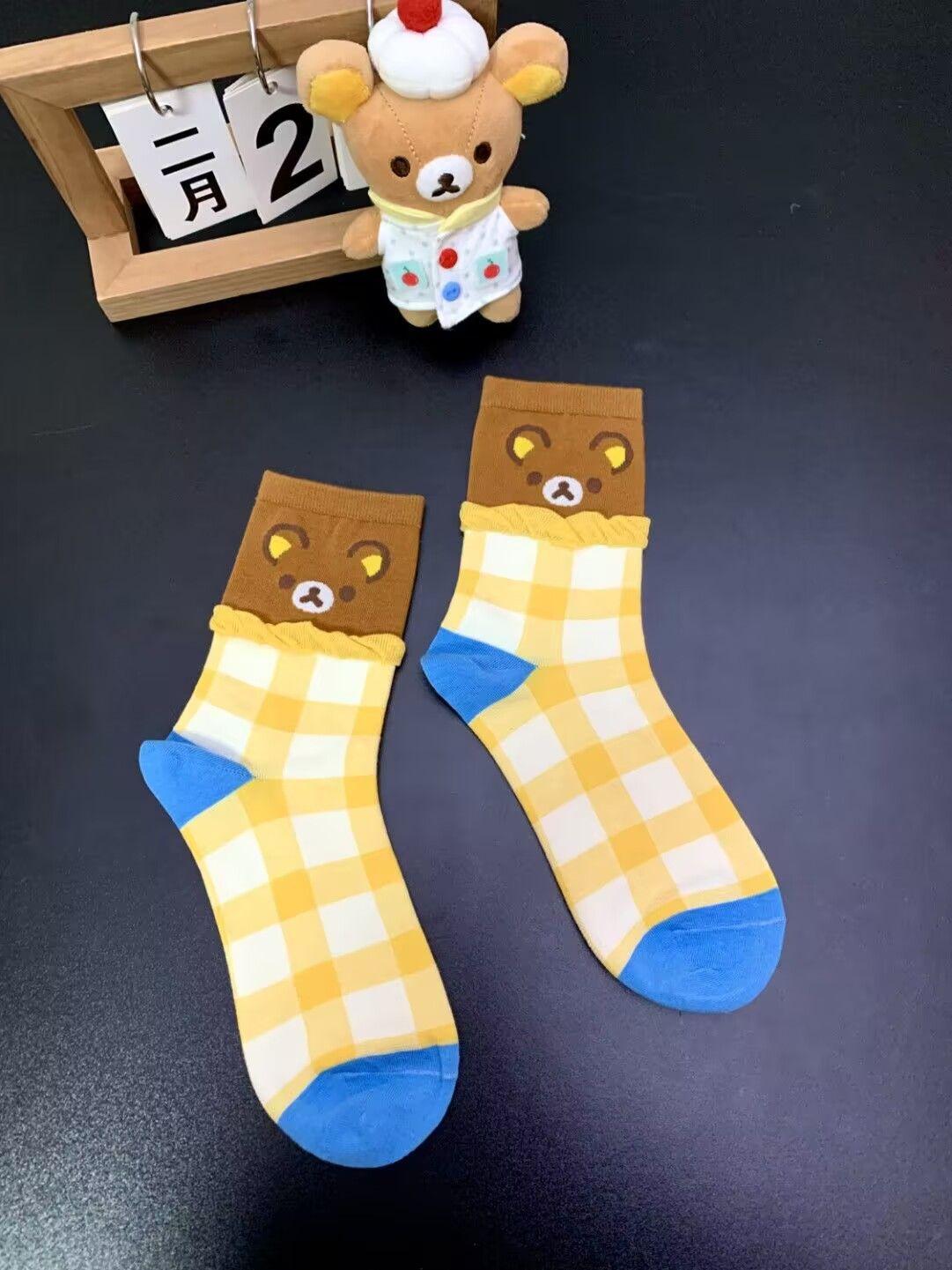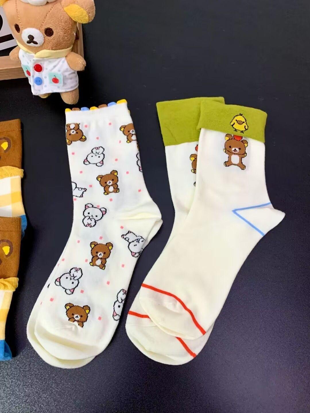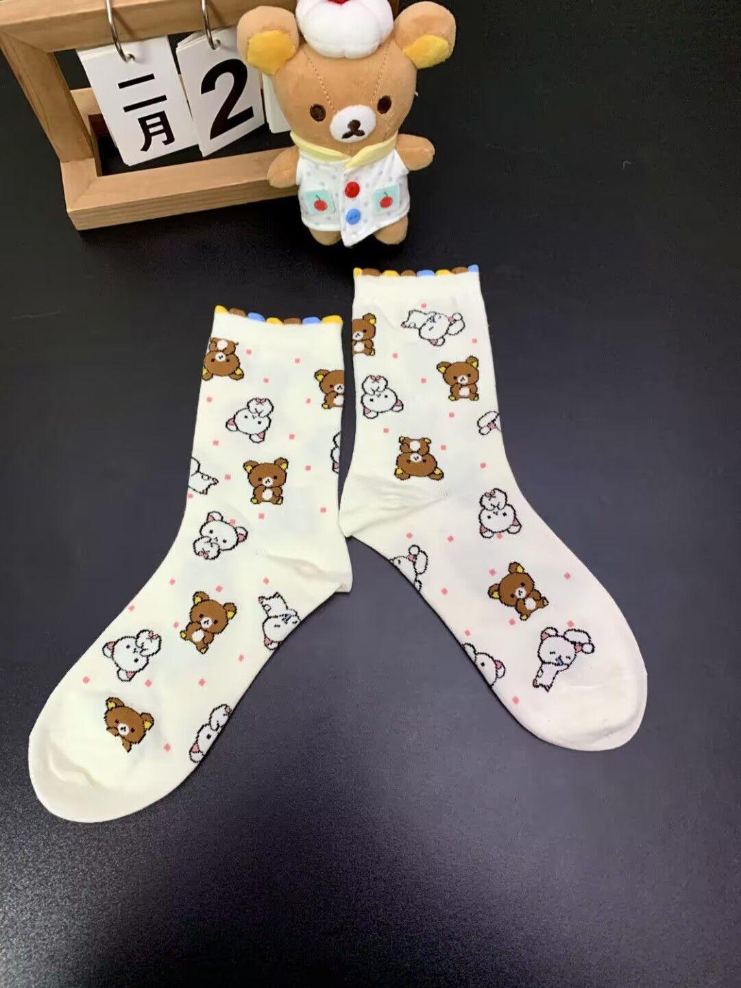 Primavera y verano nuevo creativo caricatura oso fácil lindo calcetines de mujer oso japonés estilo académico color caramelo dulce calcetines de tubo