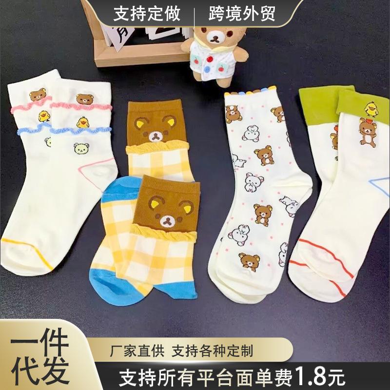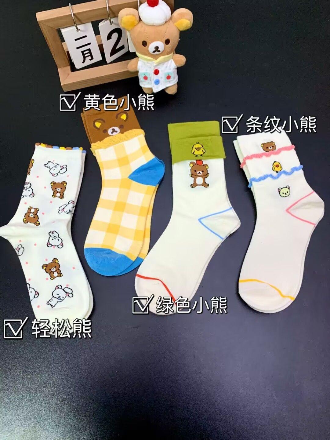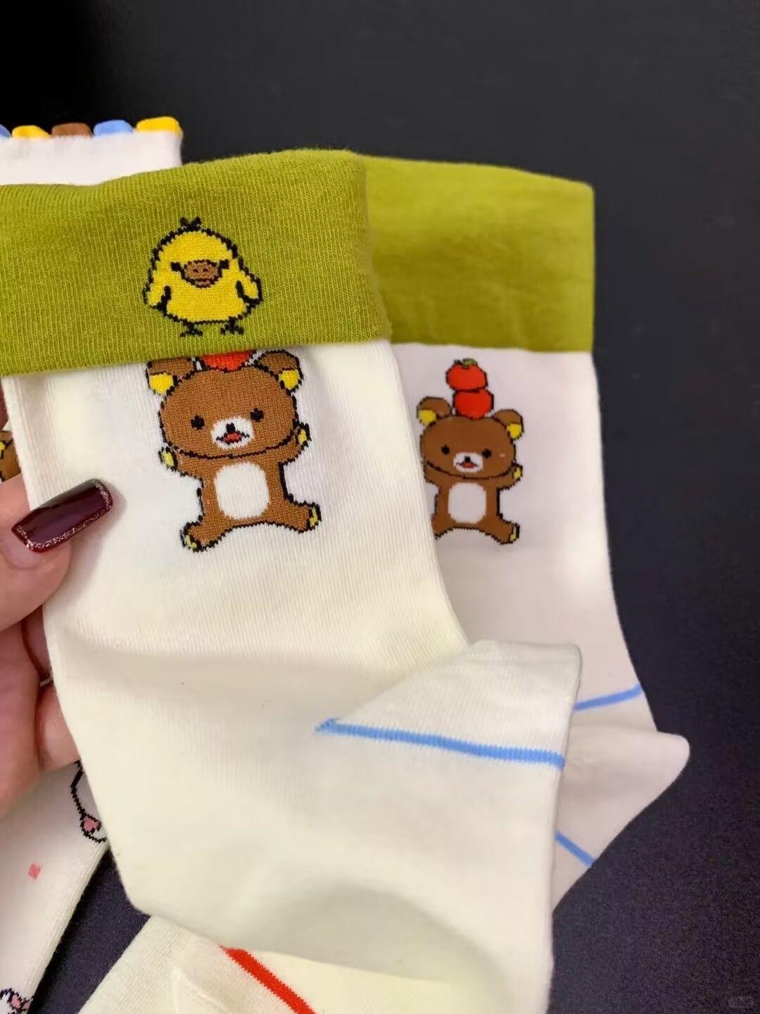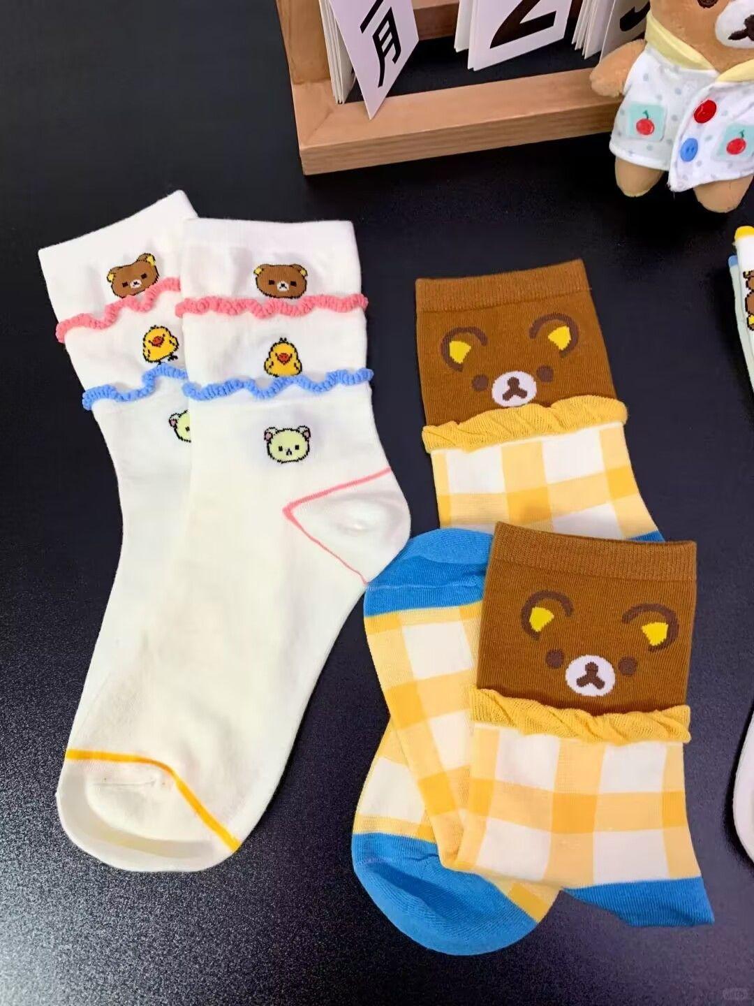 Primavera y verano nuevo creativo caricatura oso fácil lindo calcetines de mujer oso japonés estilo académico color caramelo dulce calcetines de tubo