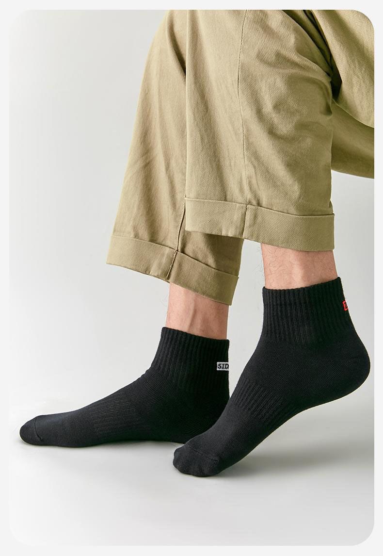 Calcetines Zhuji Calcetines Cortos para Hombre Primavera y Verano Transpirables Algodón Puro Estudiantes Ocio Calcetines Deportivos Modernos Color Sólido Calcetines de Media Caña