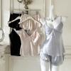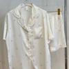 2025 Pijama de Seda de Hielo para Mujer Verano Delgado Seda de Hielo Blanco Alta Calidad Ropa para el Hogar Desgaste Conjunto de Pantalones Cortos de Manga Corta