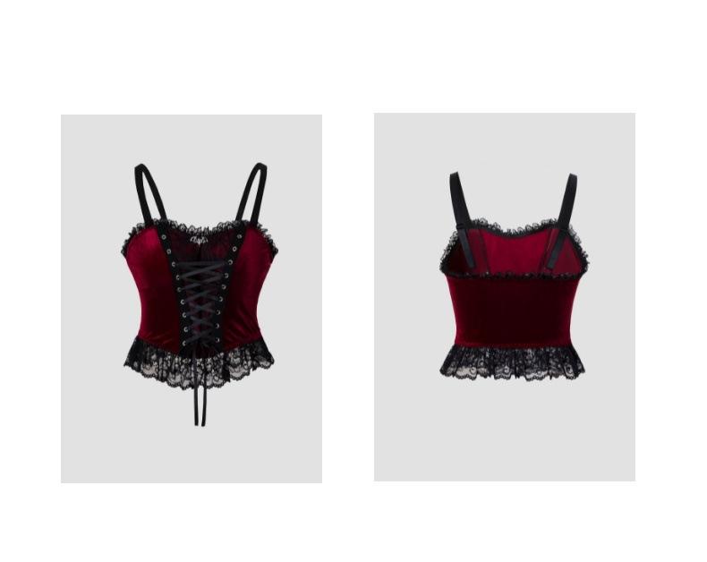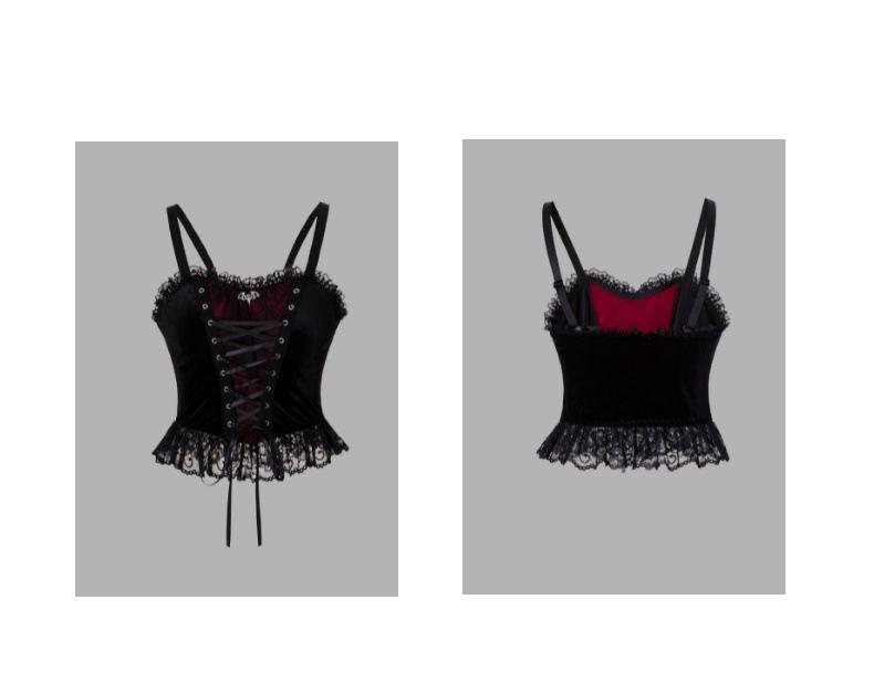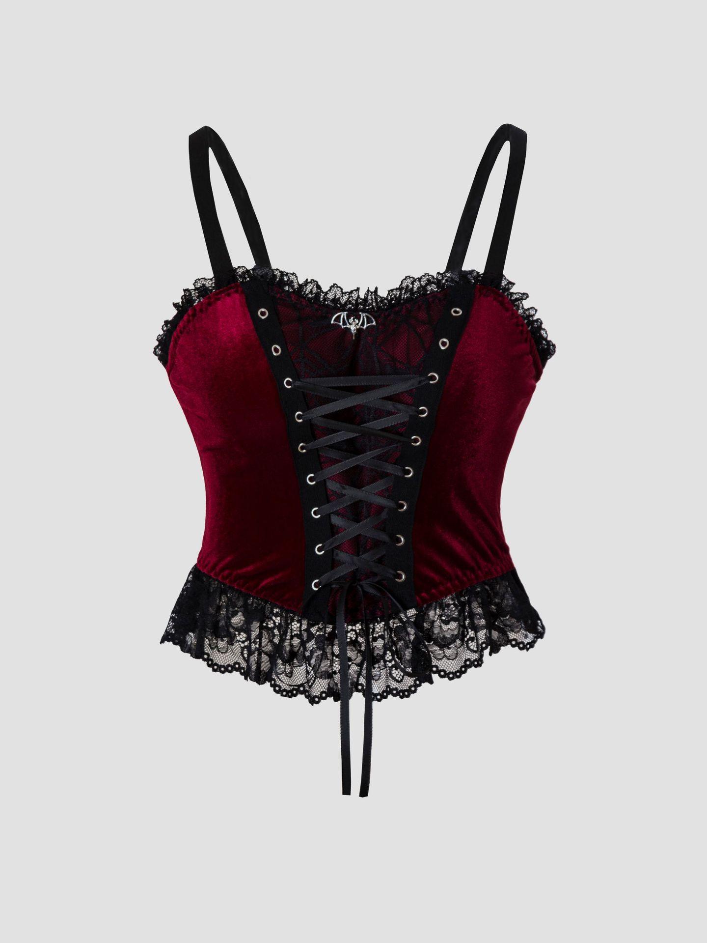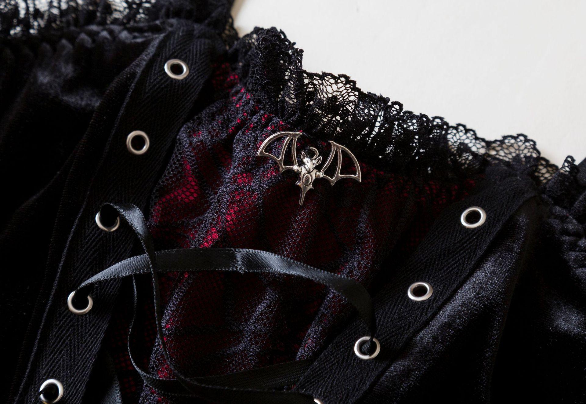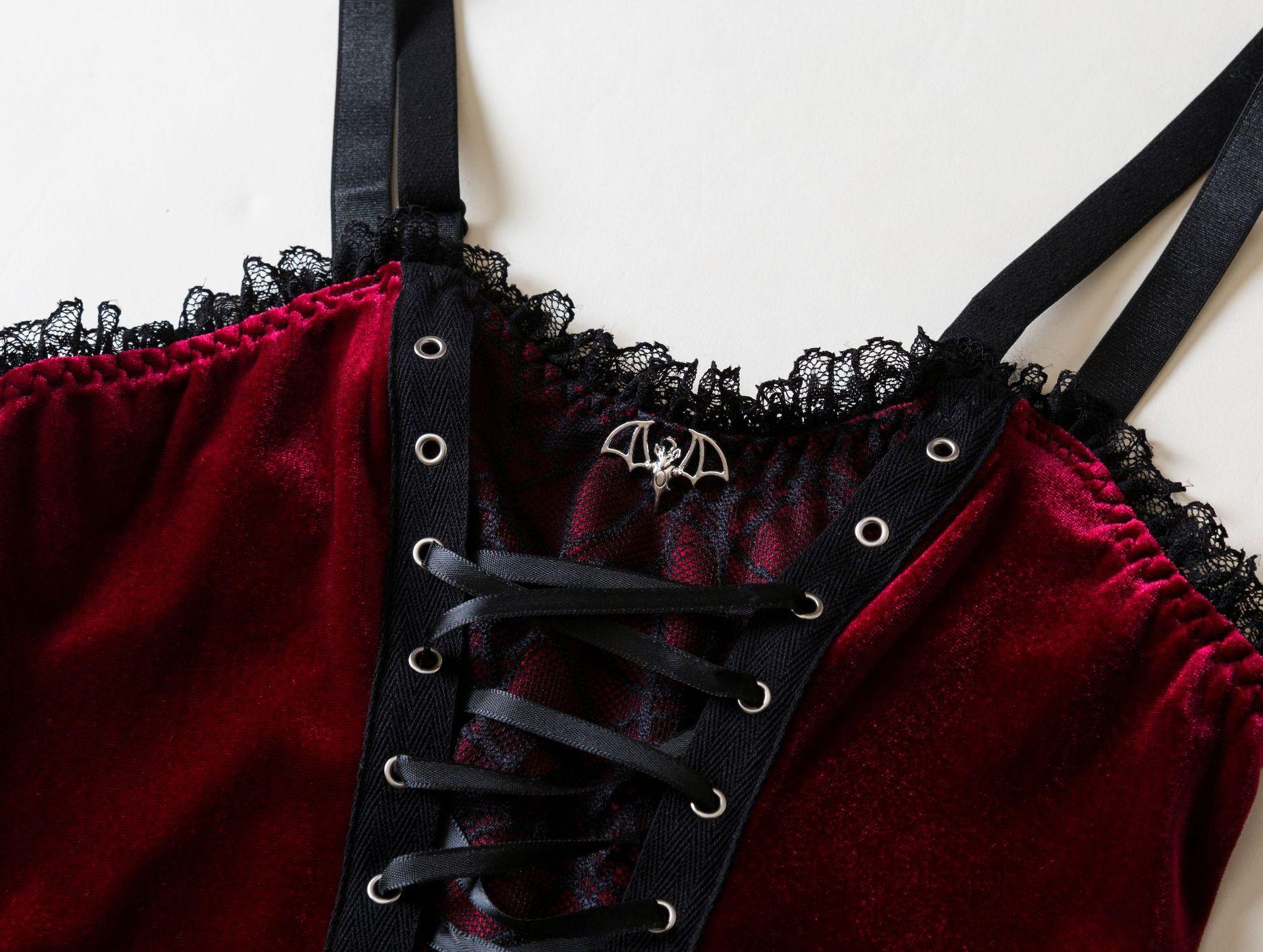 Camisola Sexy de Encaje con Cordones de Terciopelo Estilo Gótico Oscuro de Halloween Transfronterizo 2205