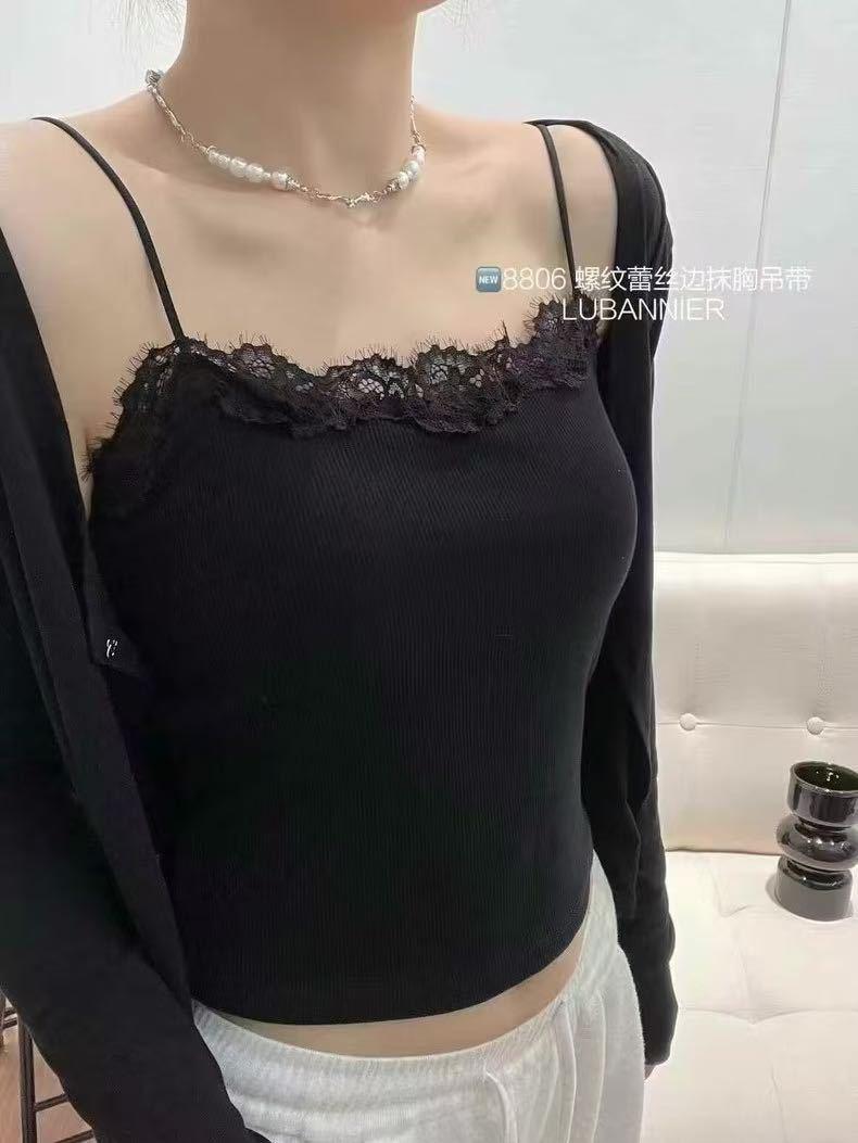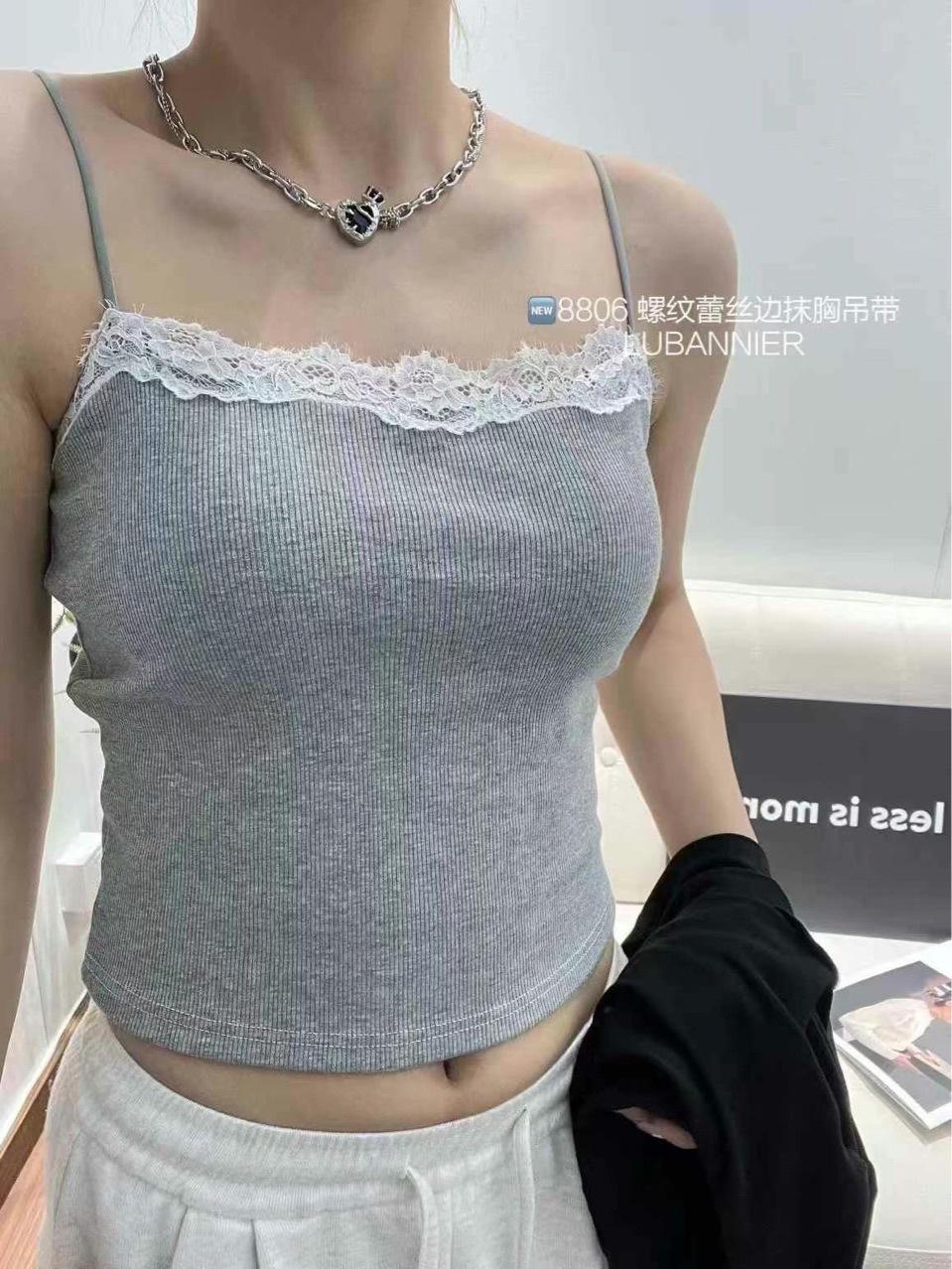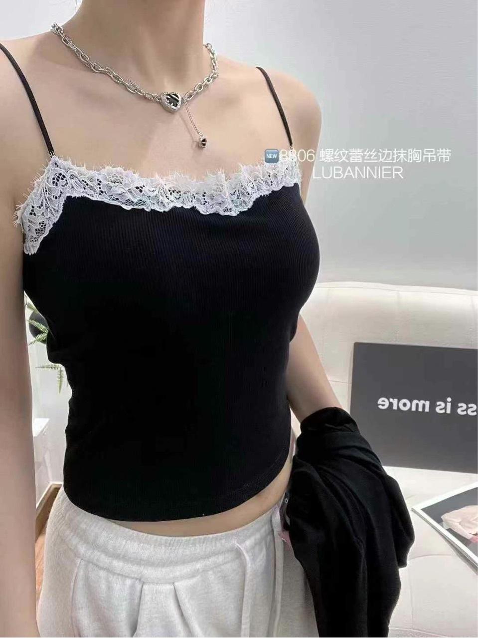 Camisola de Encaje Estilo Lujuria Pura Sexy de Un Hombro Espalda Hermosa Cómoda Delgada Exterior Top Corto