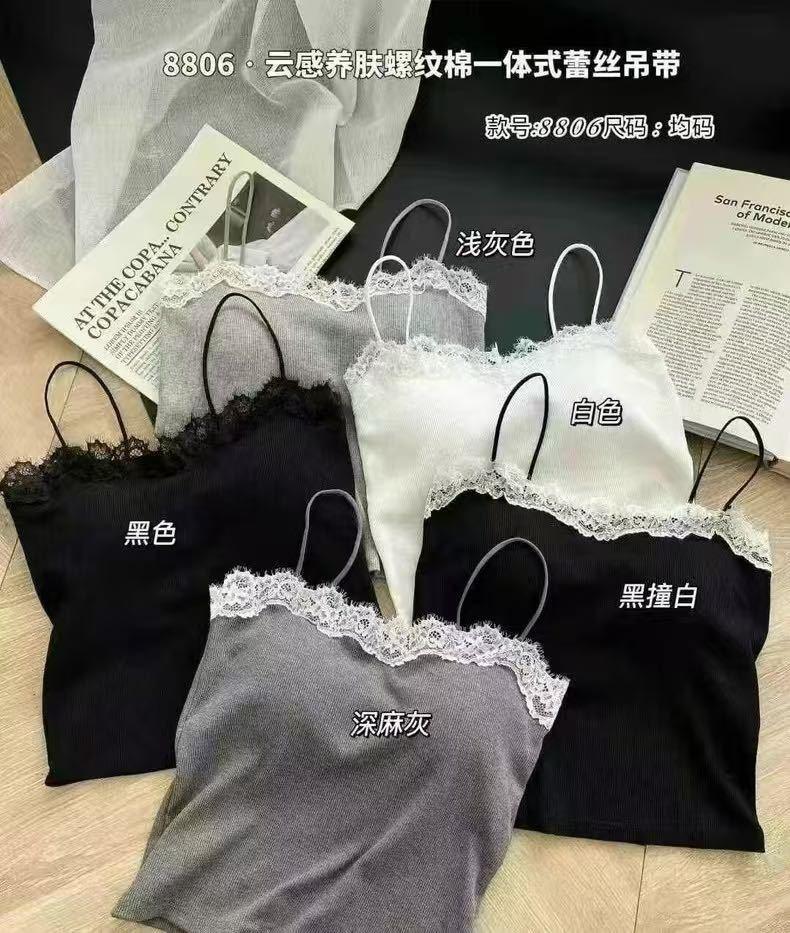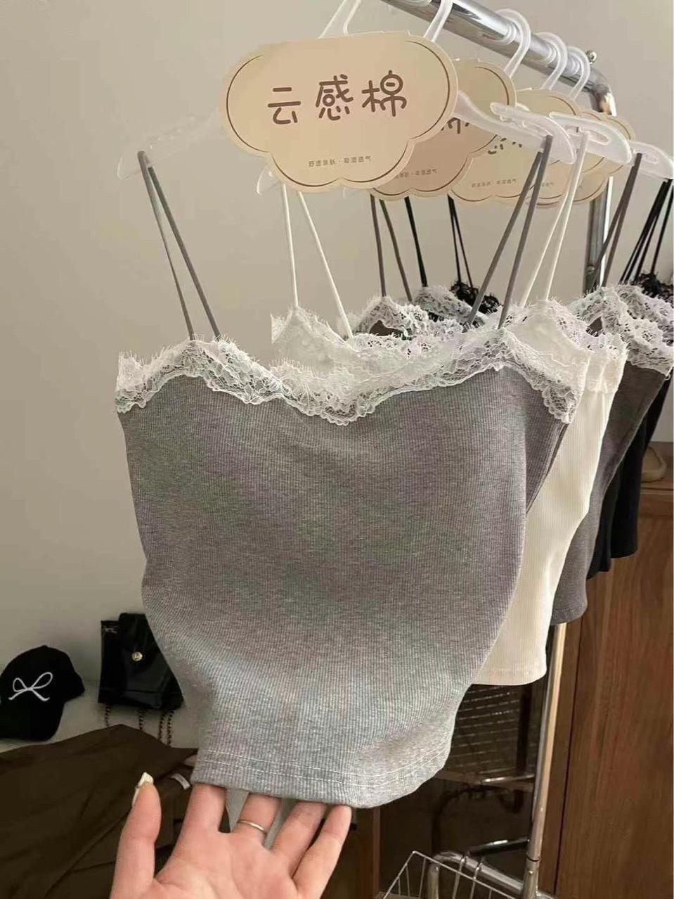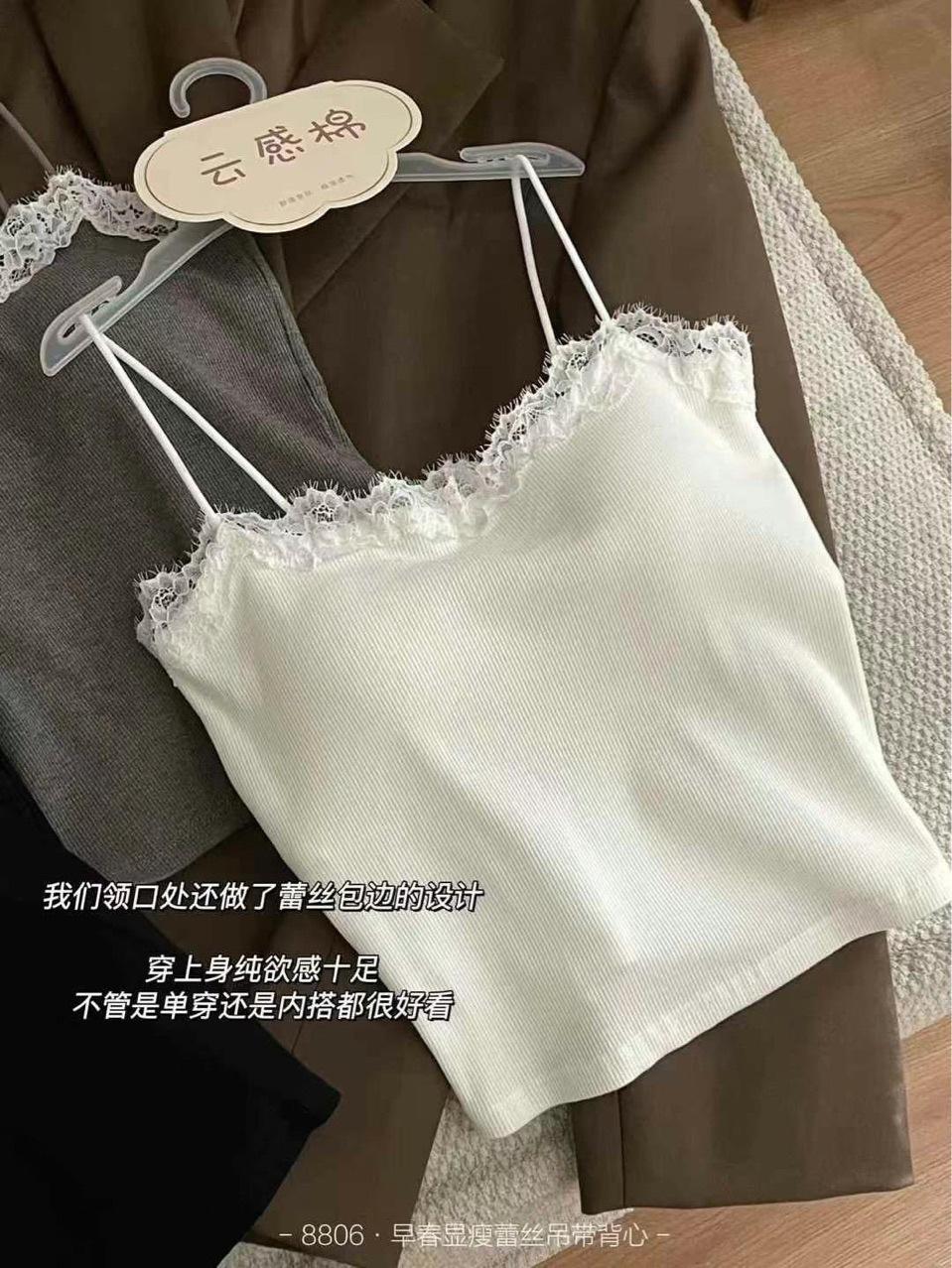 Camisola de Encaje Estilo Lujuria Pura Sexy de Un Hombro Espalda Hermosa Cómoda Delgada Exterior Top Corto
