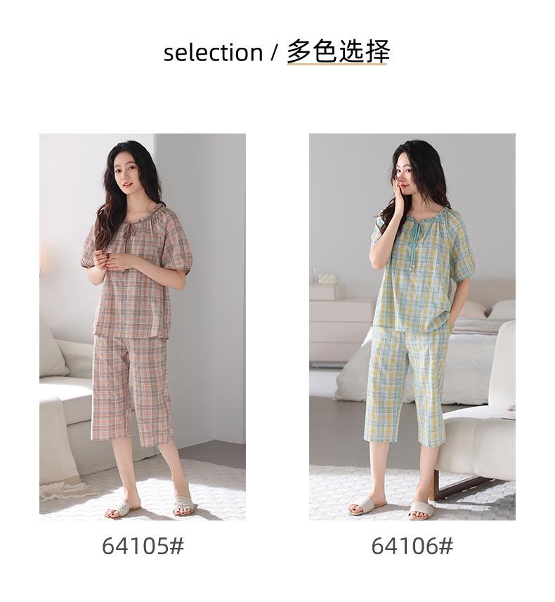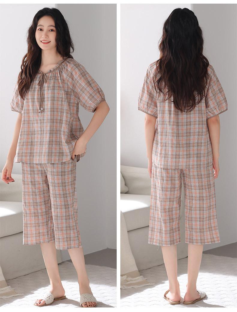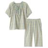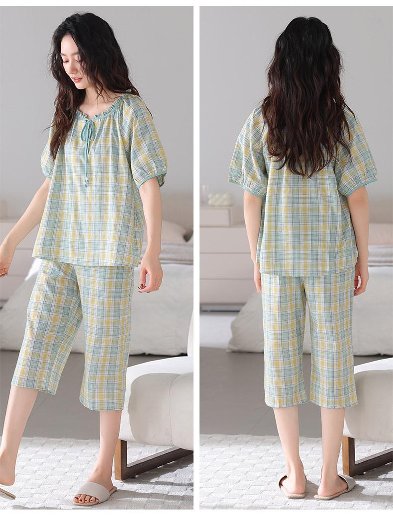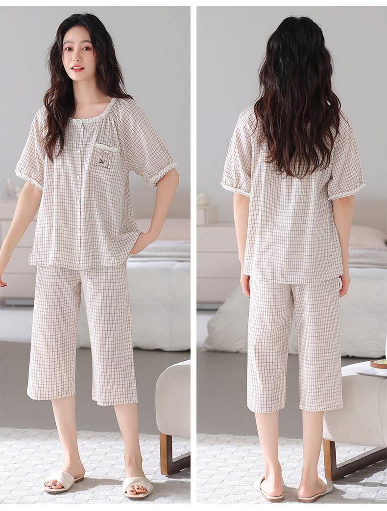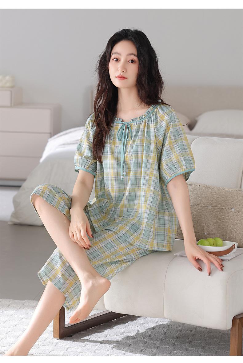 Pijama de Gasa de Algodón Tejido para Mujer Verano Algodón Puro Manga Corta Pantalón Capri Nuevo Set Delgado de Verano para Estar en Casa