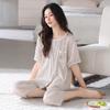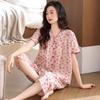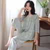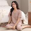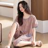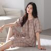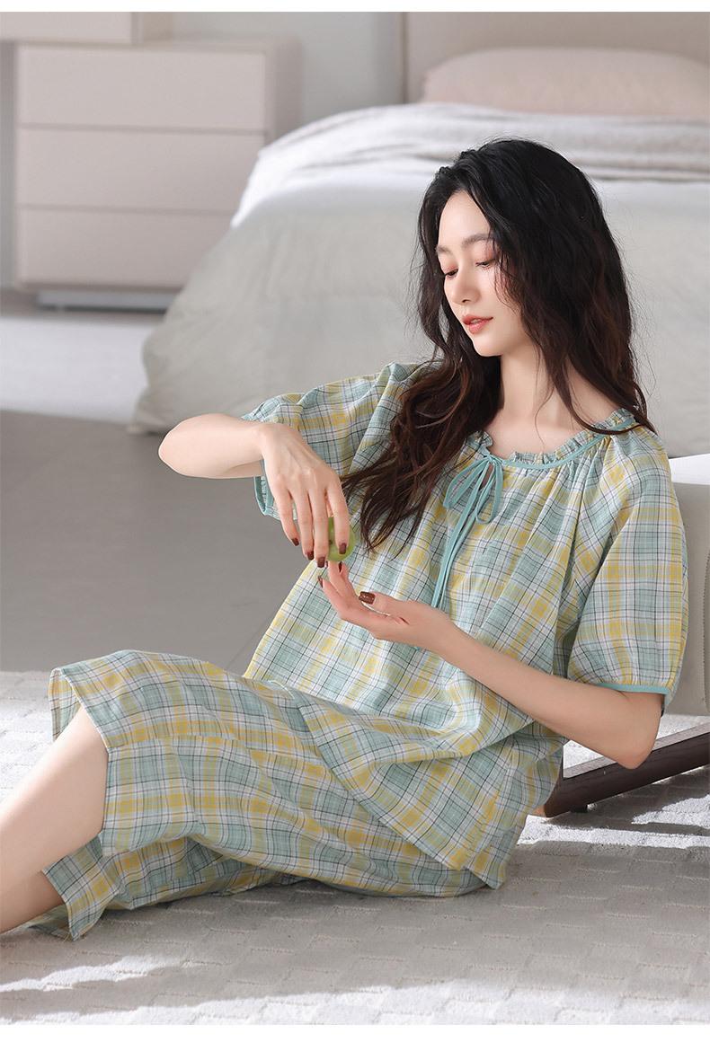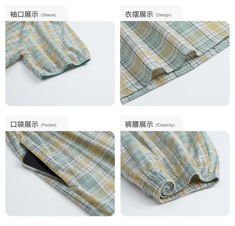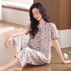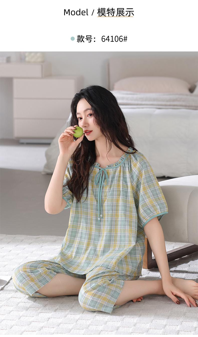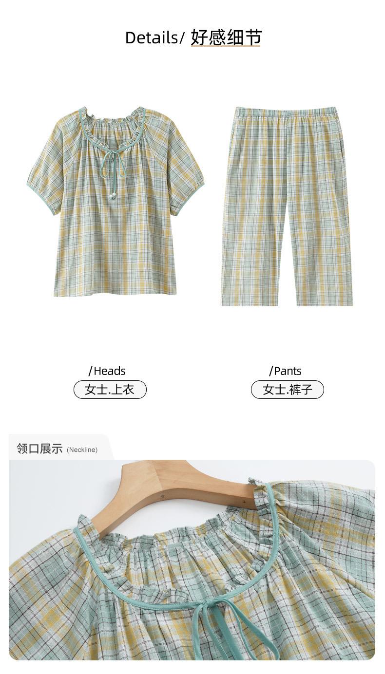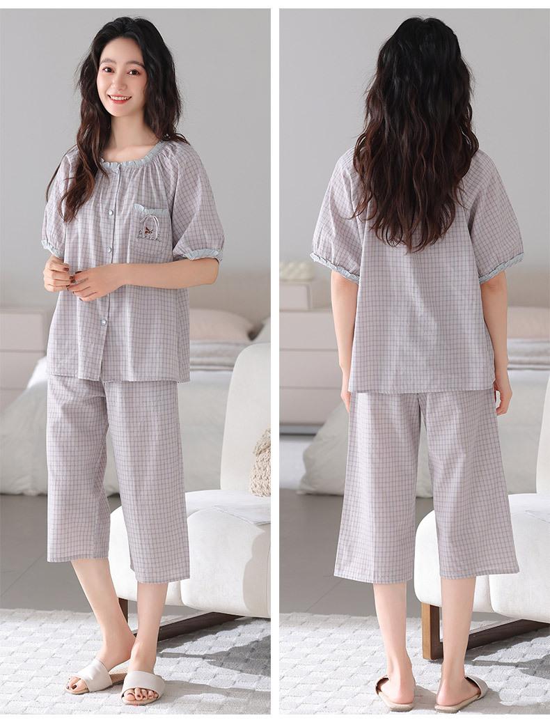 Pijama de Gasa de Algodón Tejido para Mujer Verano Algodón Puro Manga Corta Pantalón Capri Nuevo Set Delgado de Verano para Estar en Casa