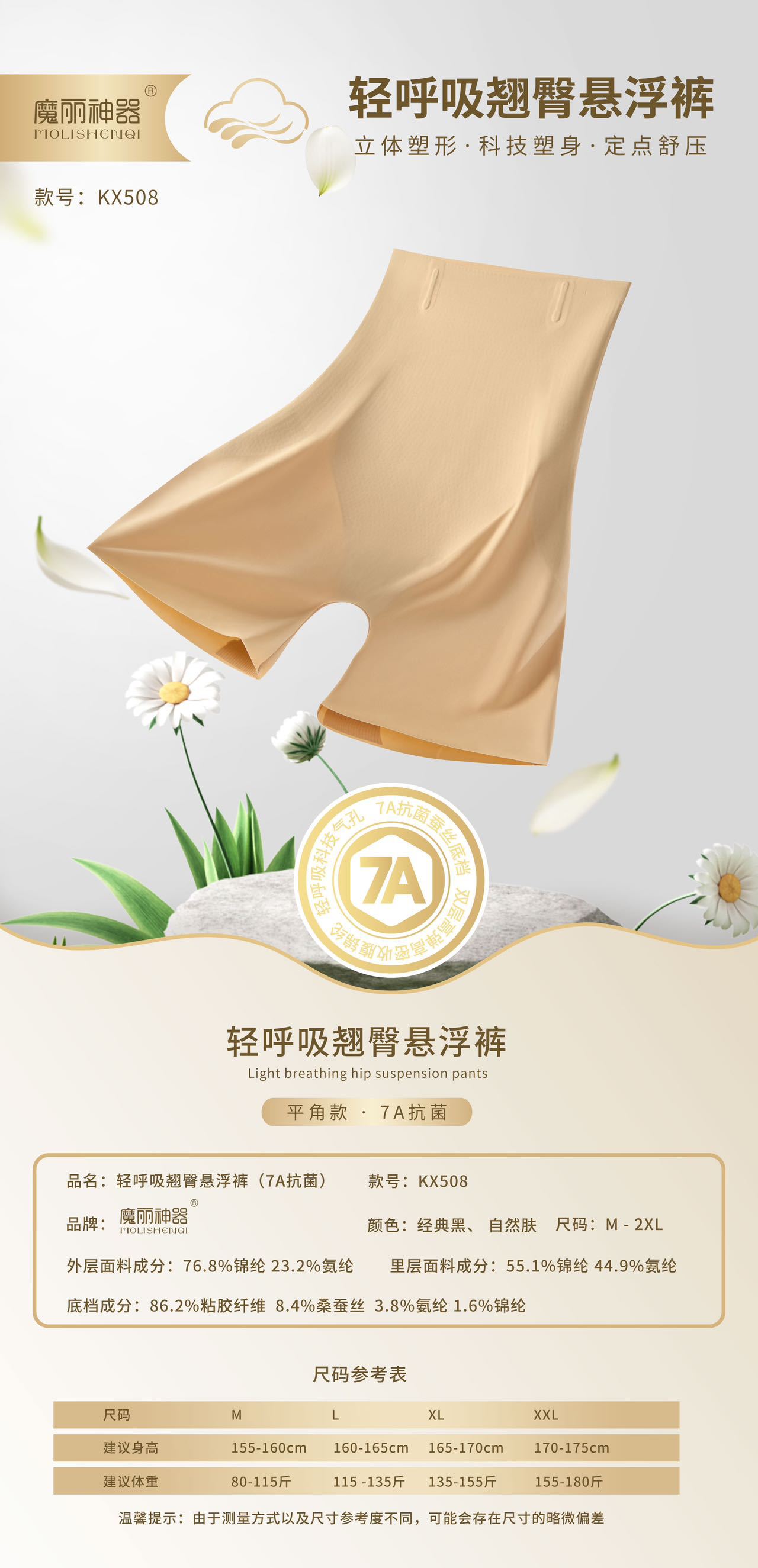 Artefacto Mágico Kx508 Pantalones Suspensión Transpirables Ligeros Cintura Alta 7A Antibacteriano Parte Inferior Ropa Interior Fina Parte Inferior Cinco Puntos Adelgazante para Mujer