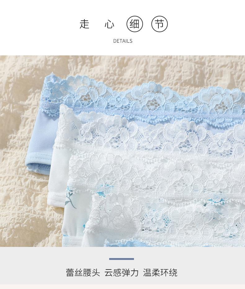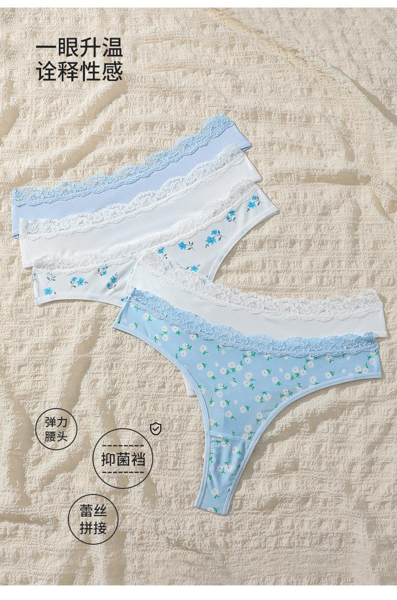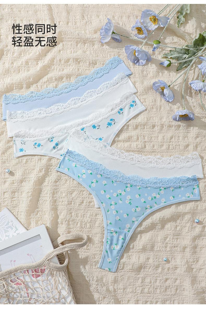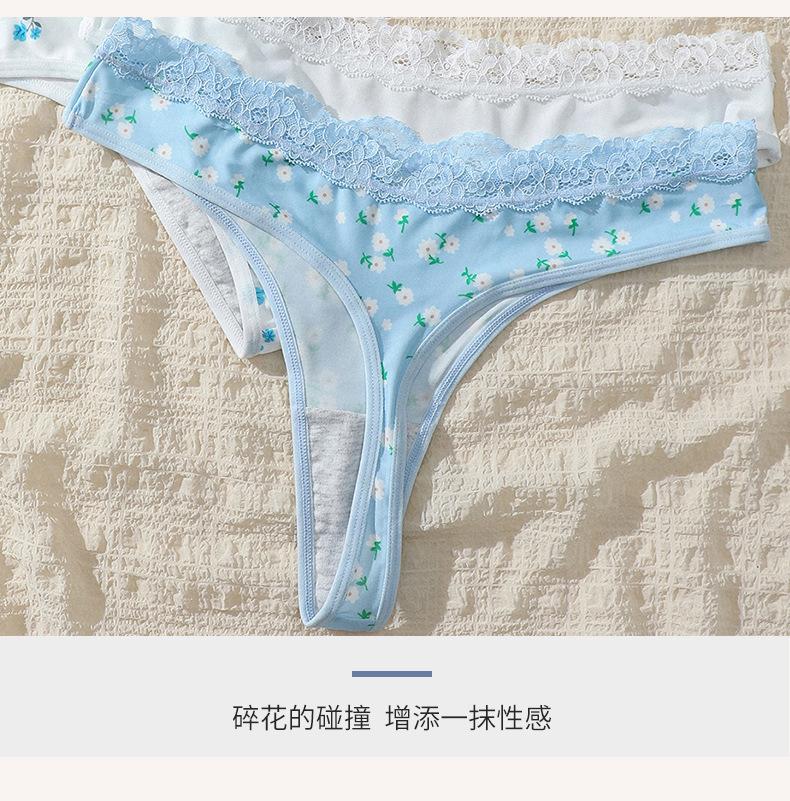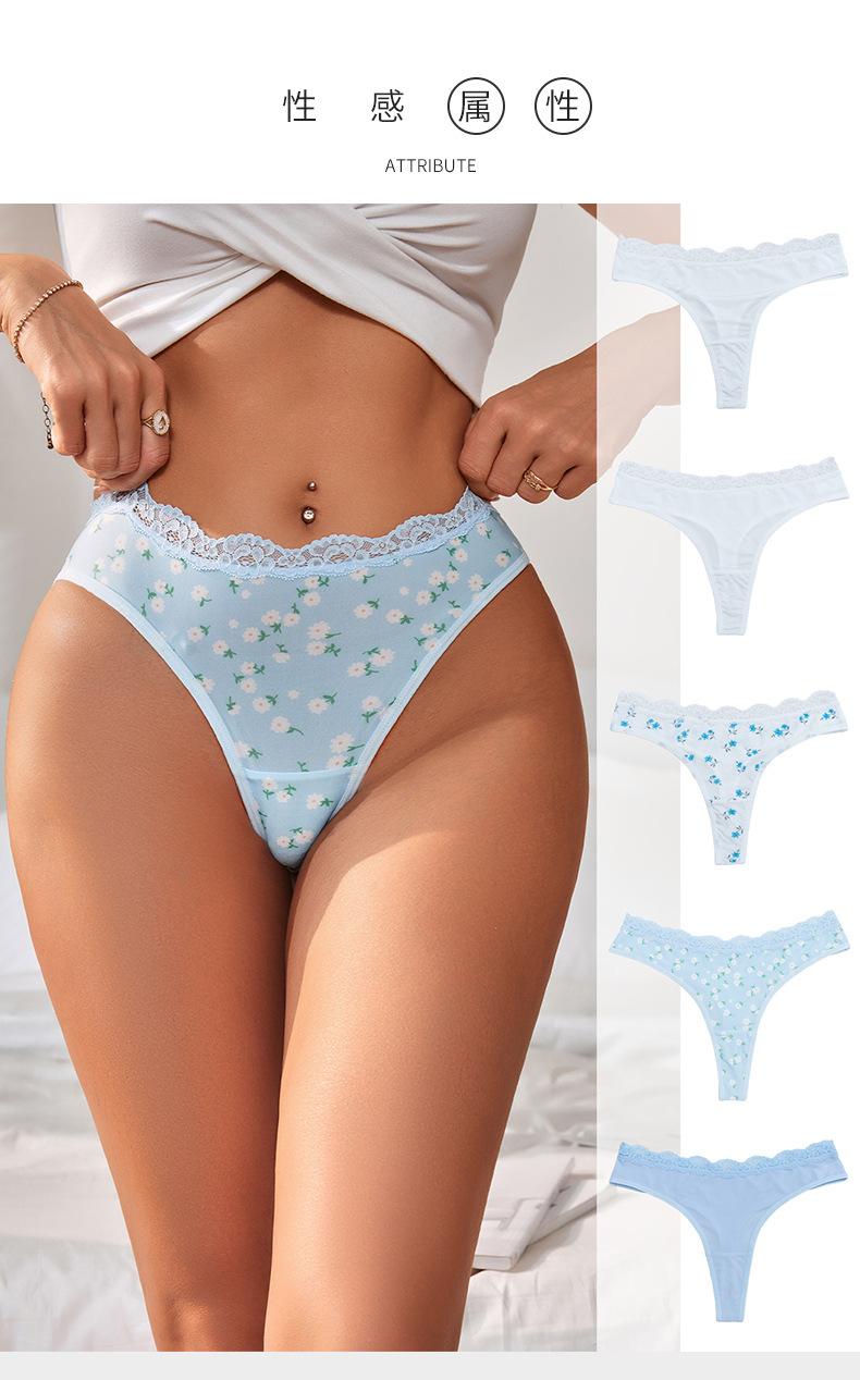 Ropa interior personalizada con estampado floral integral Calzoncillos sexys europeos y americanos con encaje en la cintura y realce de cadera sin costuras de talle medio con fondo de entrepierna de algodón puro para mujer