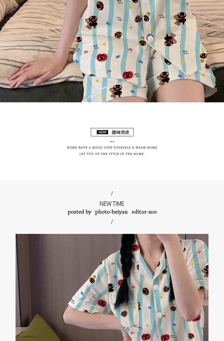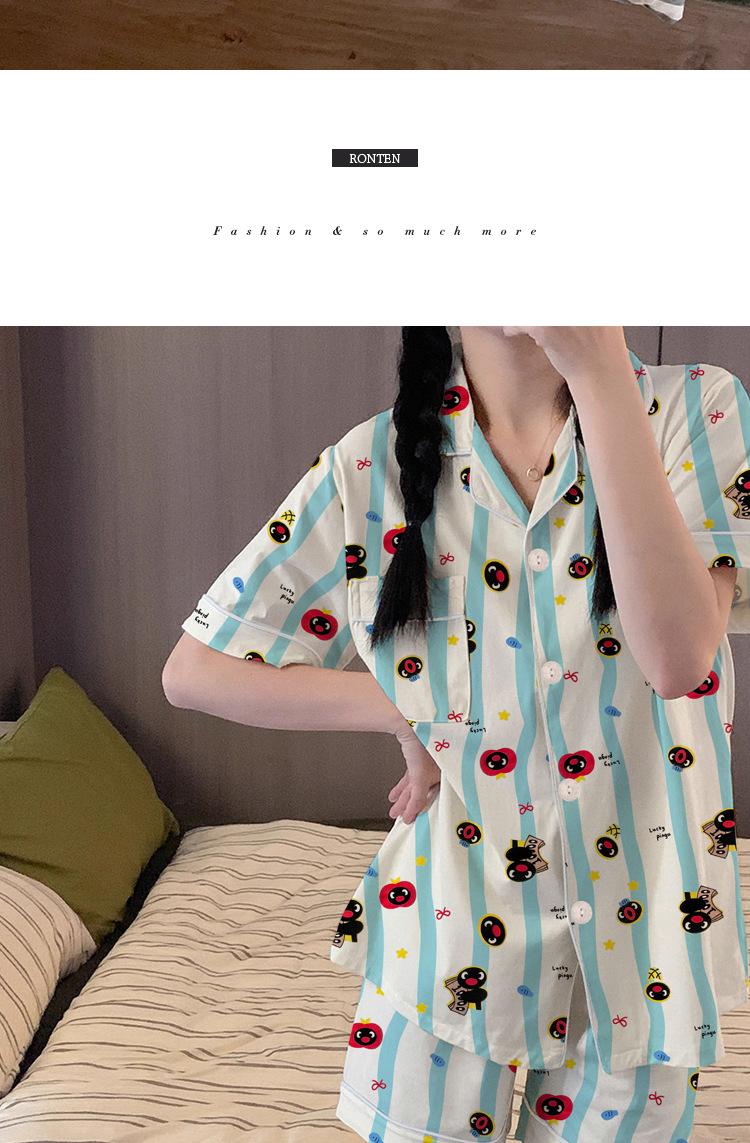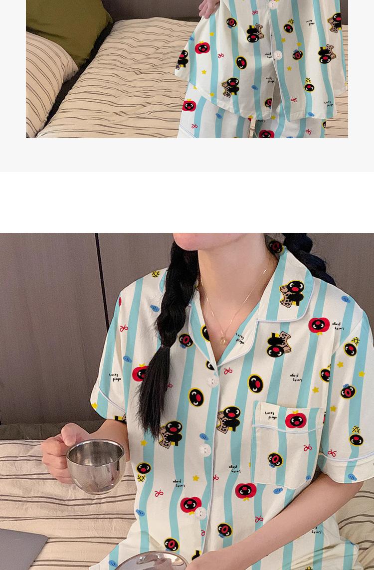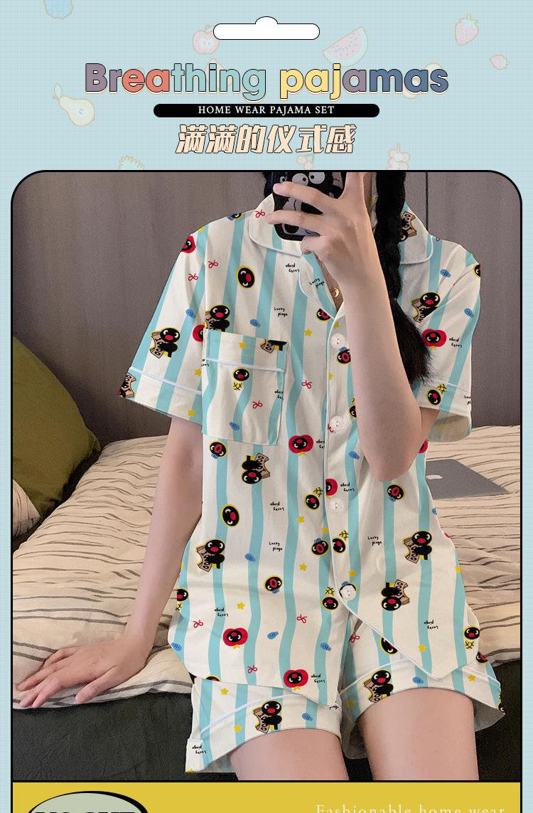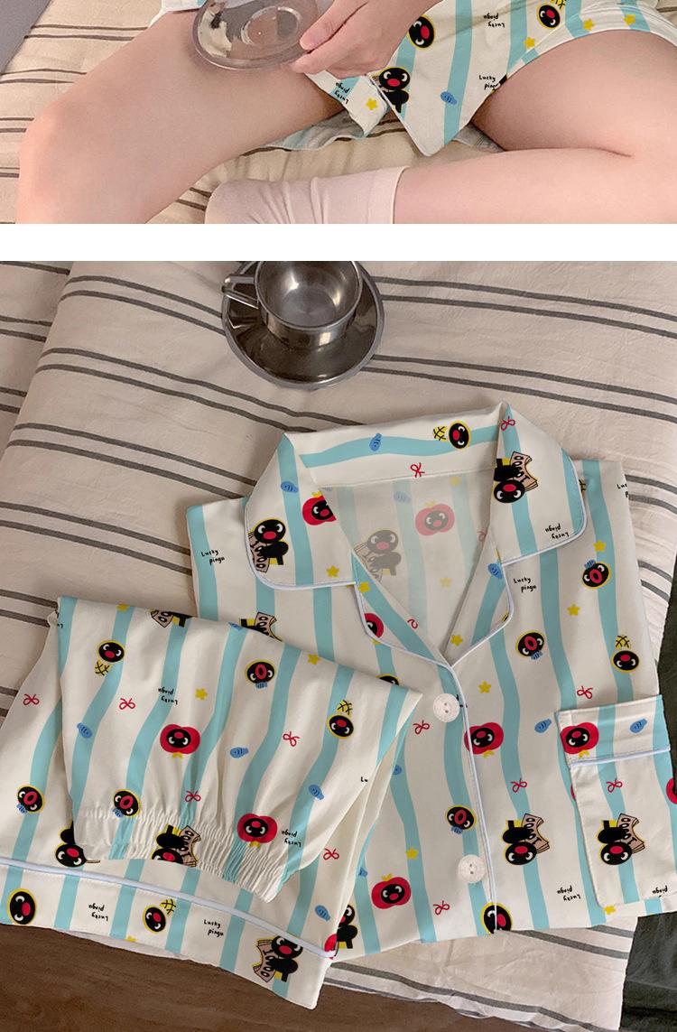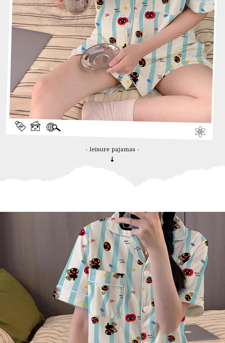 Pijama de Pingüino para Mujer Verano Nuevo Manga Corta Delgada Lindo Cárdigan Suelto Ropa para el Hogar Conjunto de Dos Piezas Venta al por Mayor