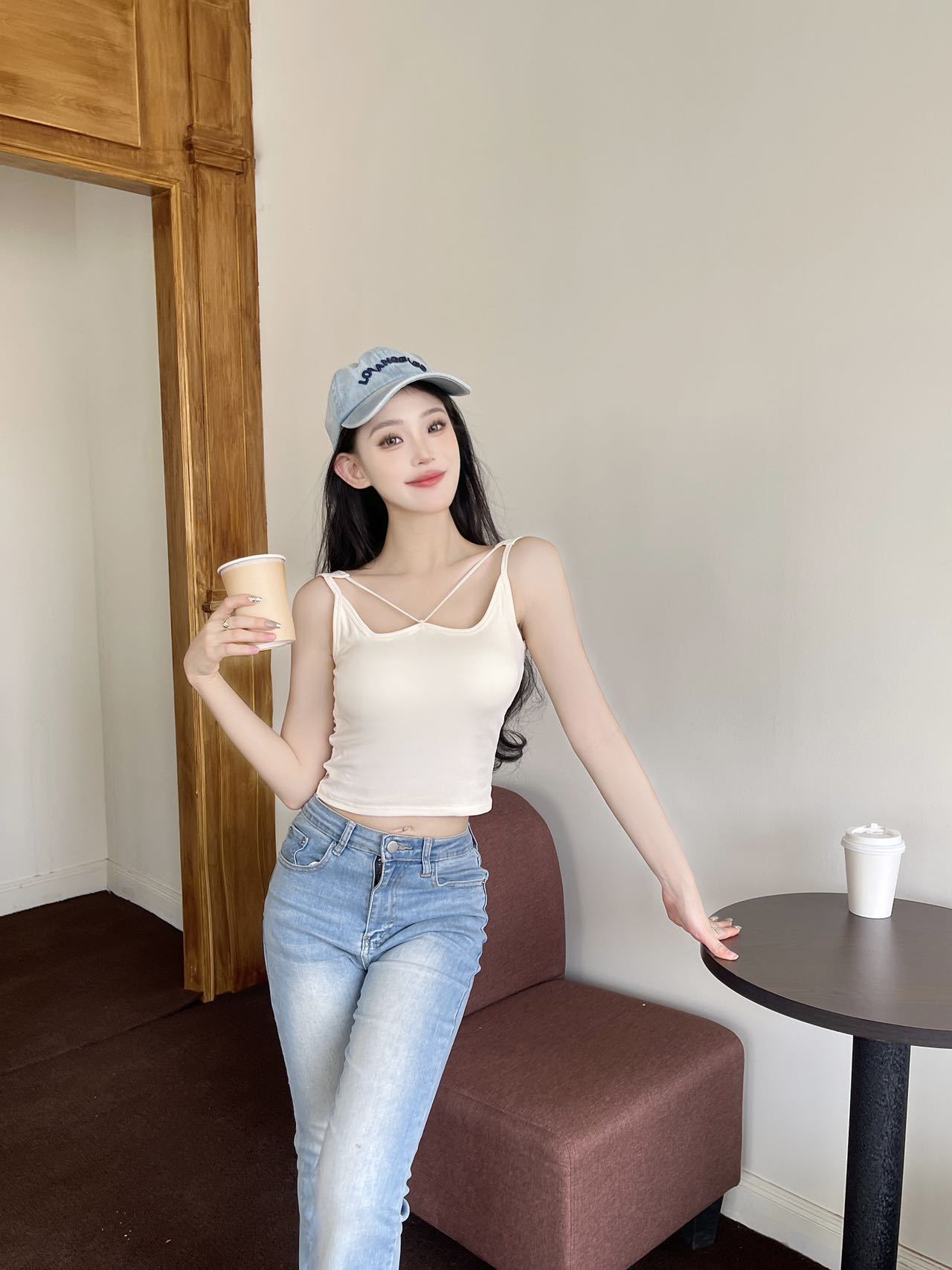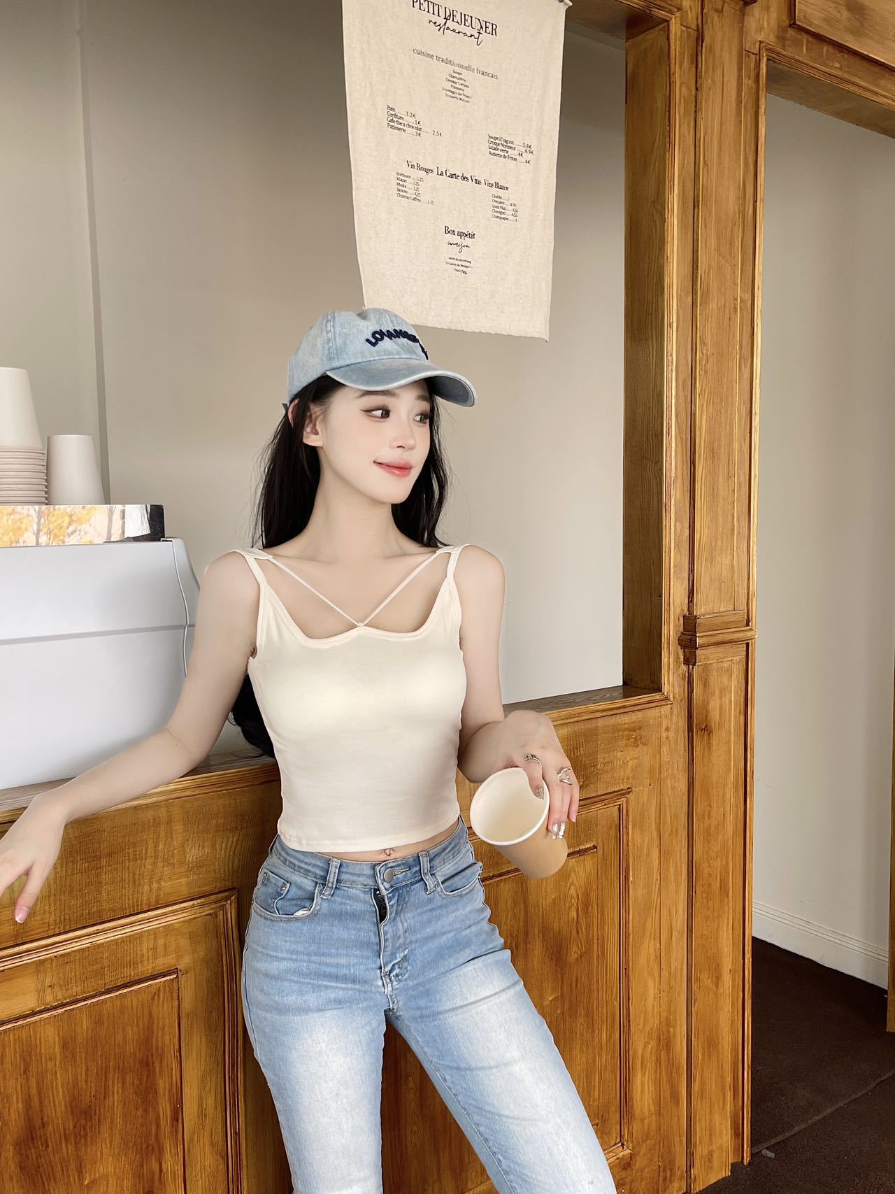 Nuevo Estilo Exterior Belleza Espalda Camisola Copa Fija con Almohadilla para el Pecho Sin Aros de Acero Transpirable Ajuste Delgado Ropa Interior Base para Mujer en Verano