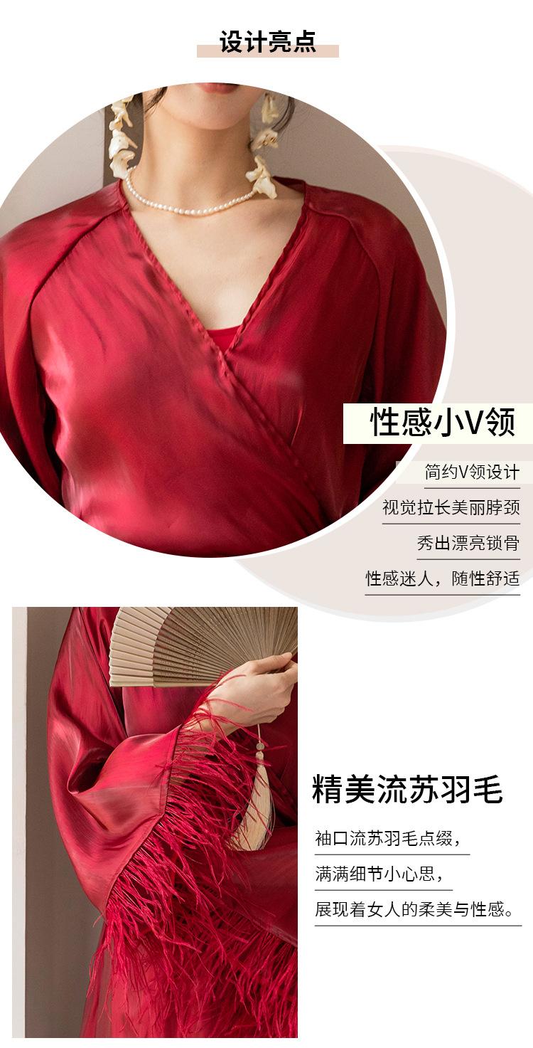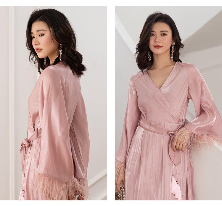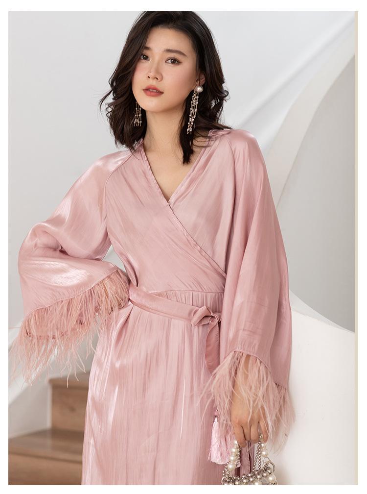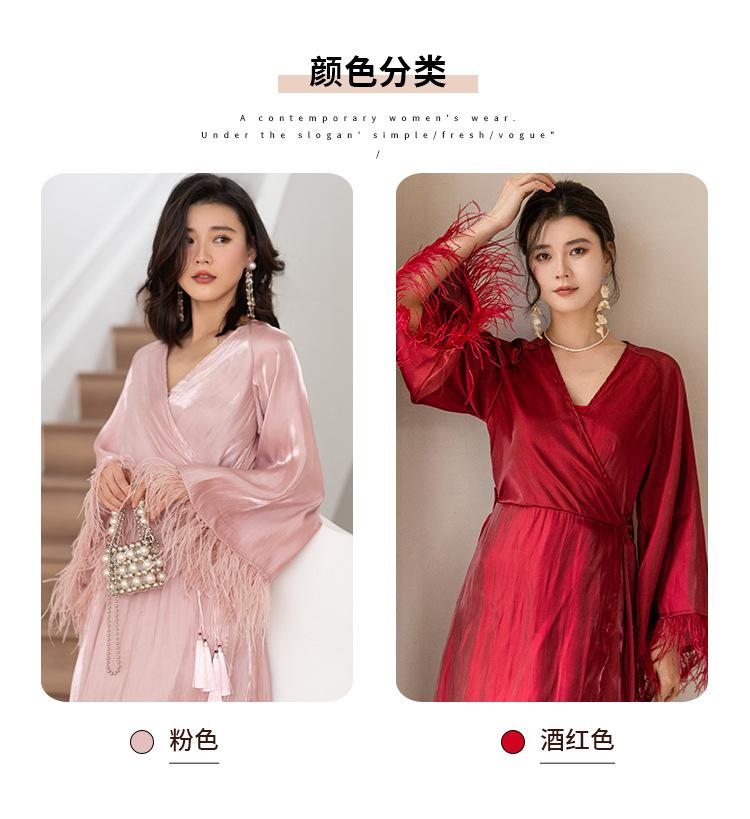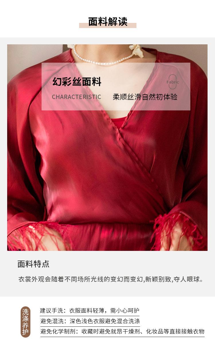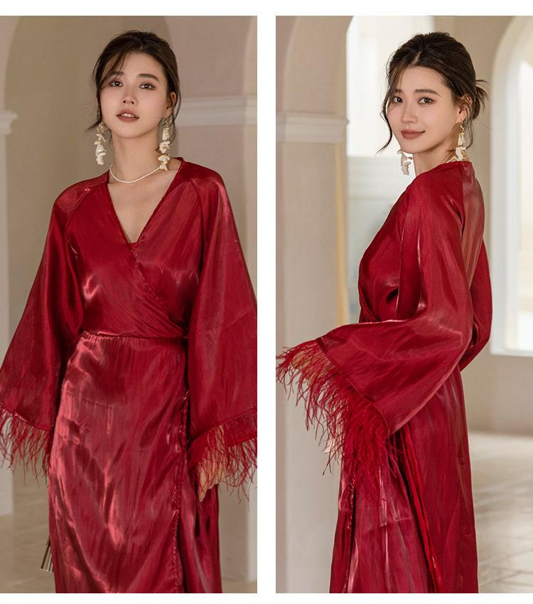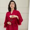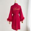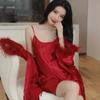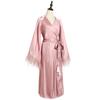 Bata Sexy de Plumas Rosa para Mujer Novia Boda Primavera Otoño Verano Boda Francesa Camisón de Dama de Honor de Alta Gama Conjunto de Dos Piezas