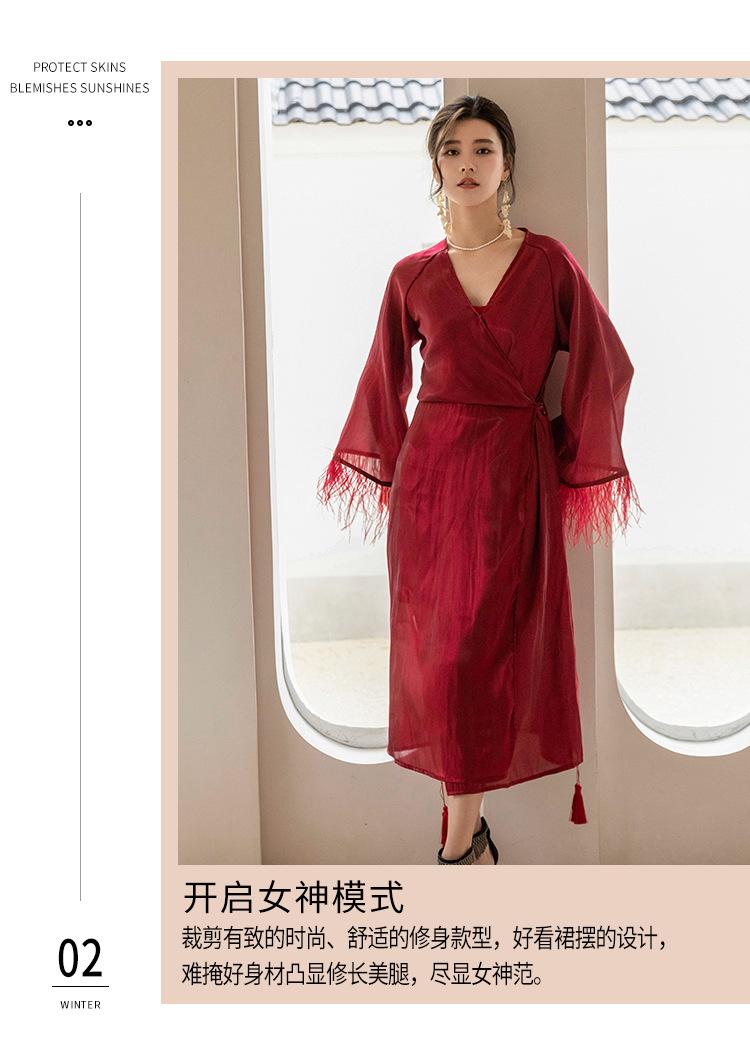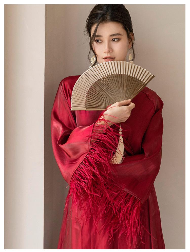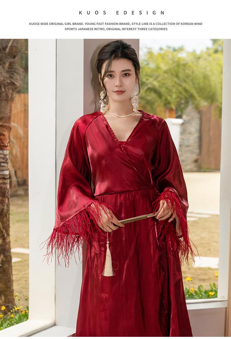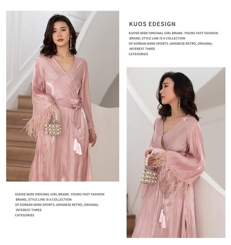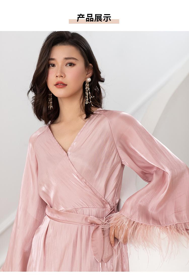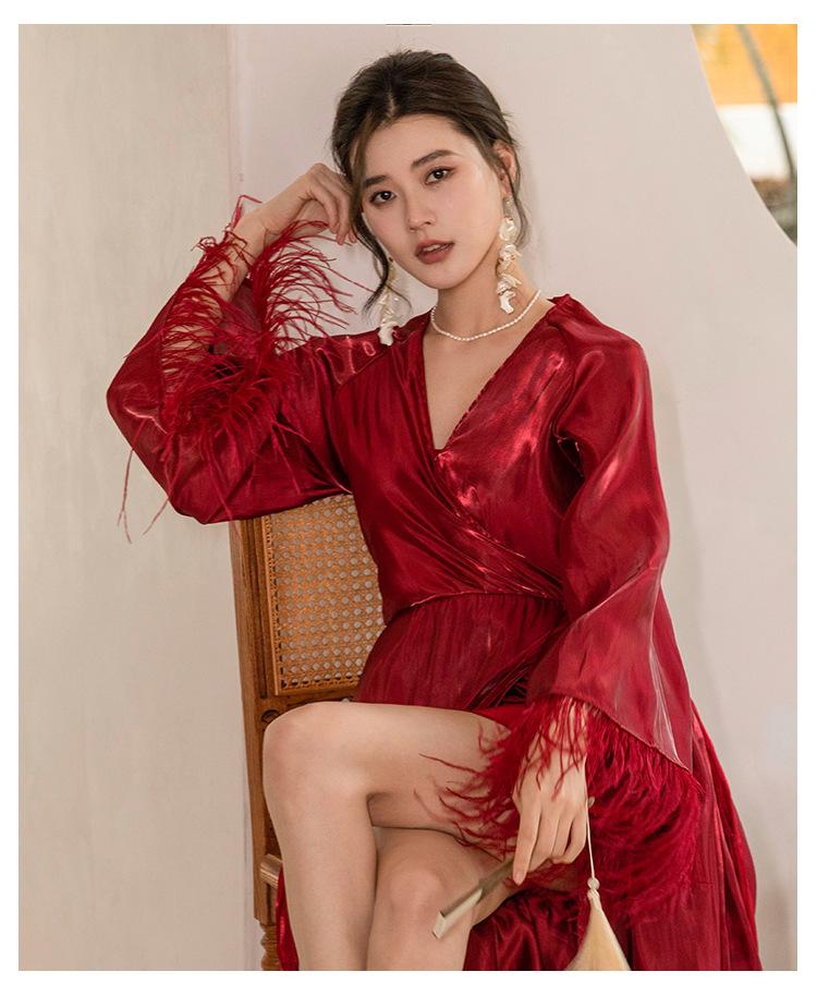 Bata Sexy de Plumas Rosa para Mujer Novia Boda Primavera Otoño Verano Boda Francesa Camisón de Dama de Honor de Alta Gama Conjunto de Dos Piezas