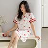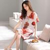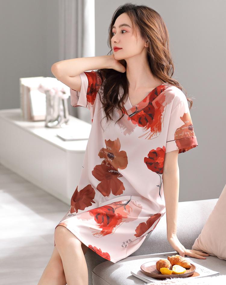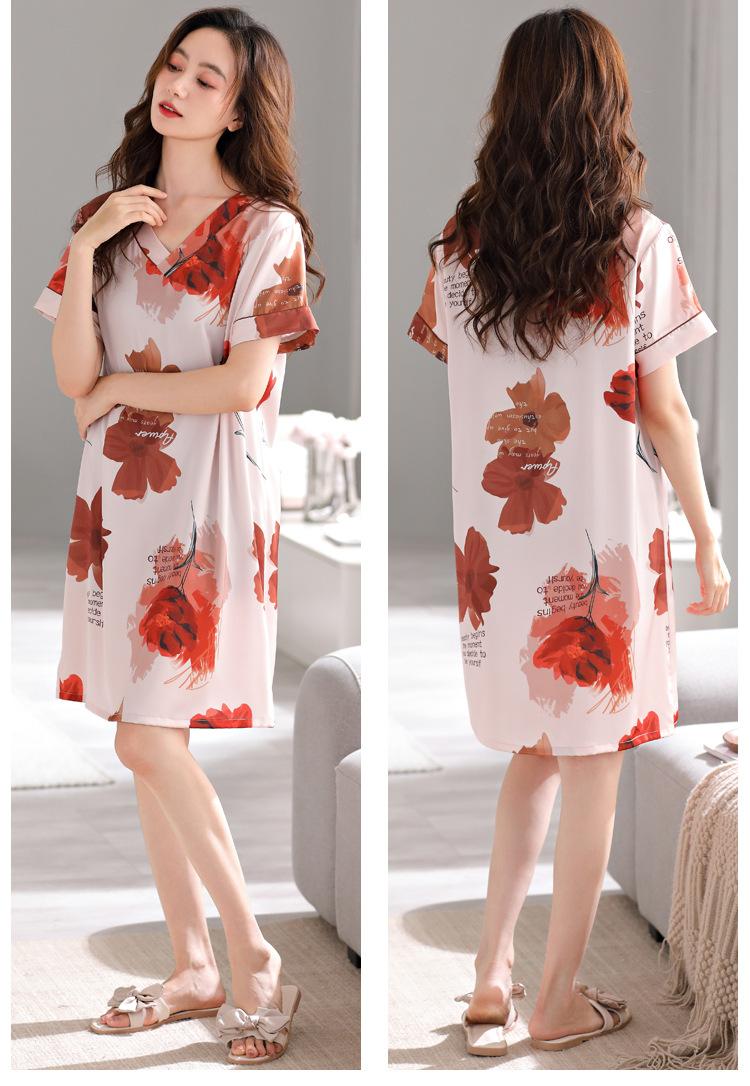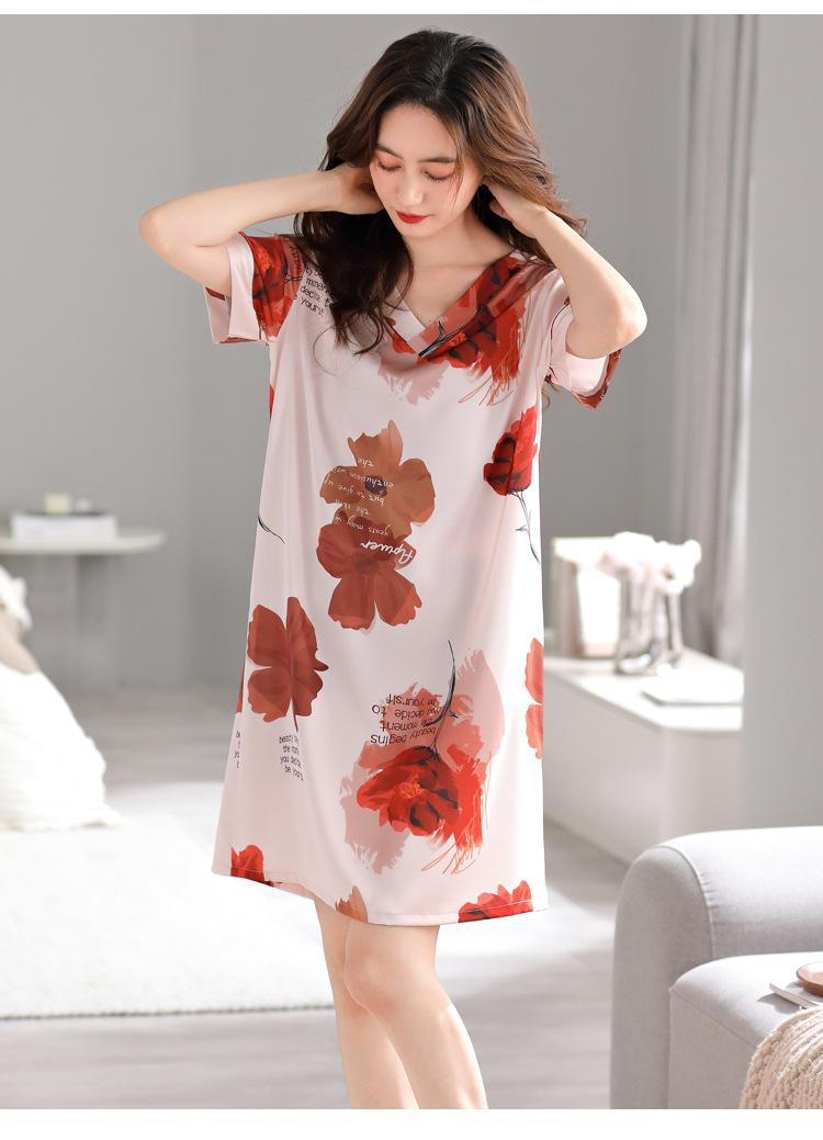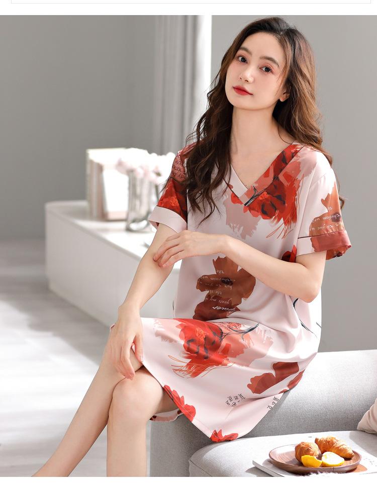 Camisón de Manga Corta para Mujer Verano 2025 Nuevo Camisón de Seda de Hielo de Pulóver Pijama de Seda Imitada Estampado de Alta Gama Ropa para el Hogar