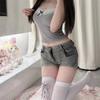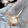 Calcetines largos blancos por encima de la rodilla tipo Jk para mujer, medias finas de verano, presión adelgazante piernas, lazo estampado, rodilleras de terciopelo