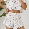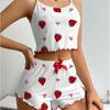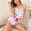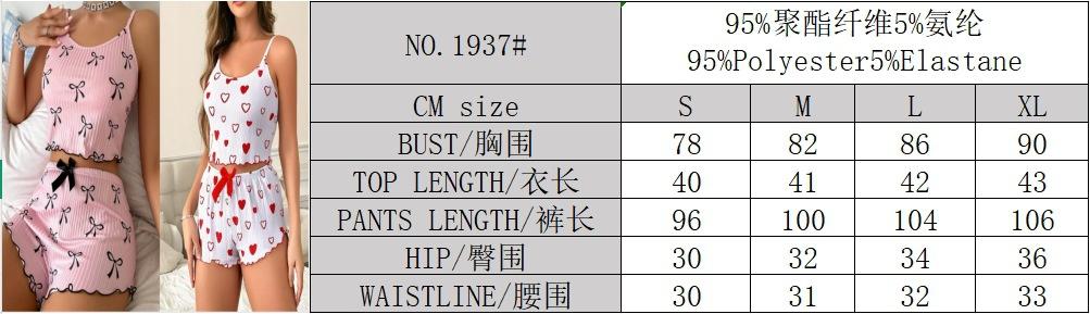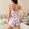 Pijamas Europeos y Americanos Transfronterizos para Mujer con Estampado de Amor de Lazo Sexy Shorts con Tirantes Ropa para el Hogar Traje de Dos Piezas