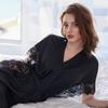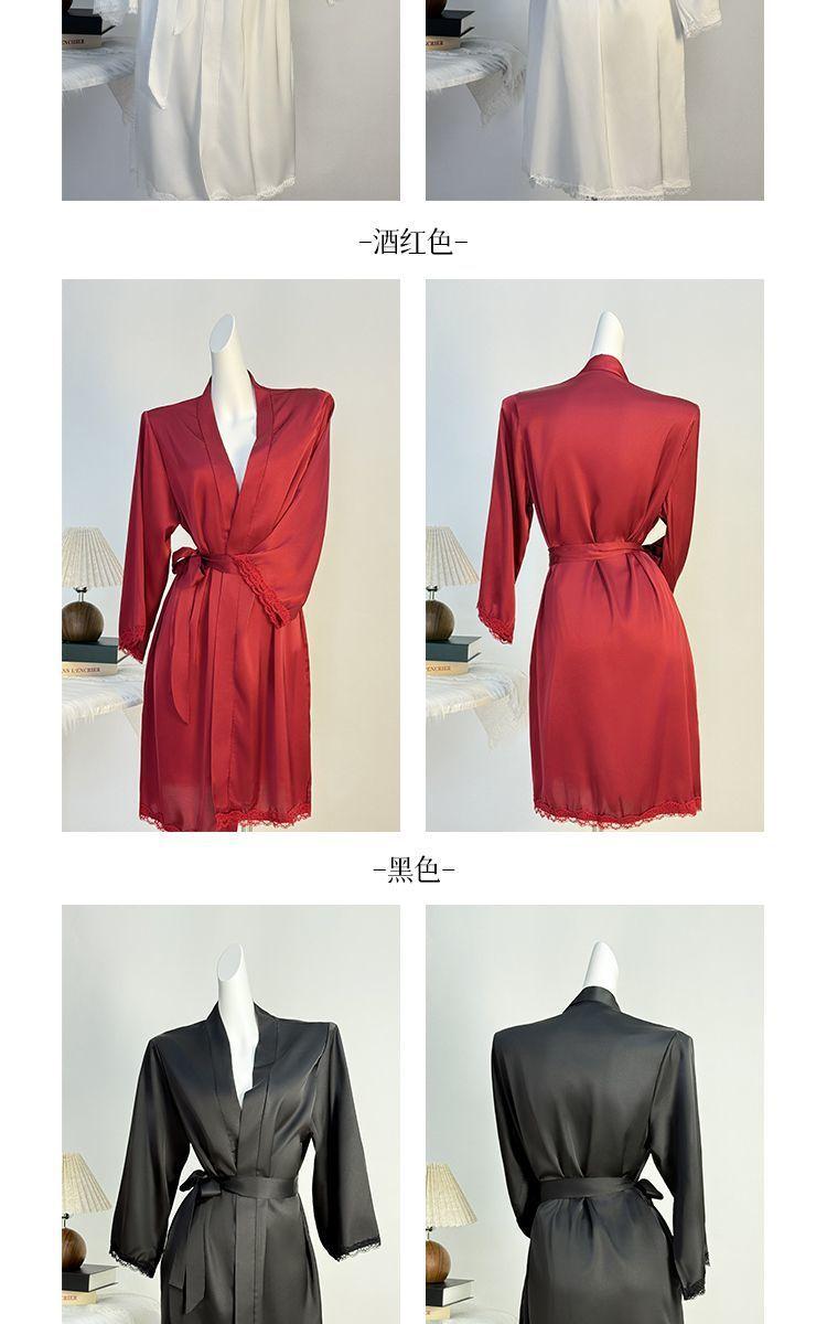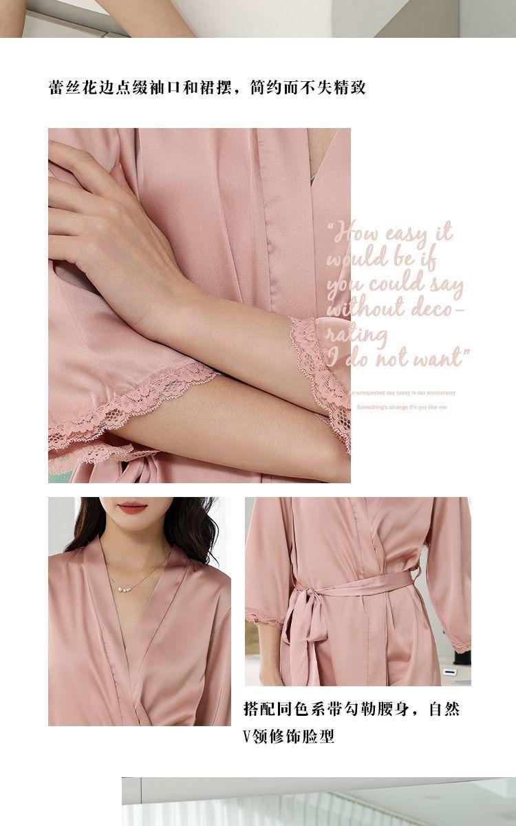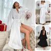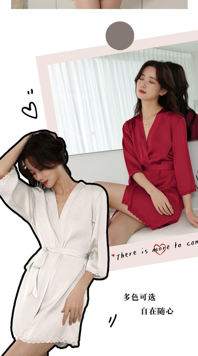 Pijama Nuevo Sexy Simple Color Puro Satén Encaje Cuello Cruzado V Profundo Bata Exterior Camisón Talla Única Ropa de Casa para Mujer
