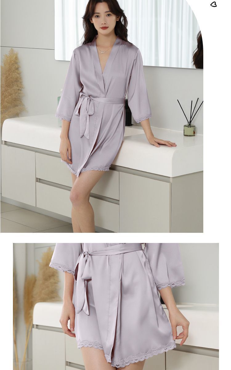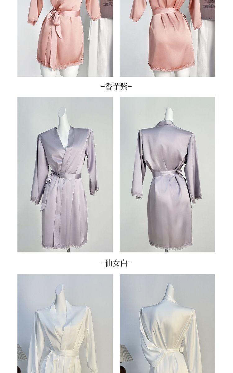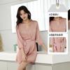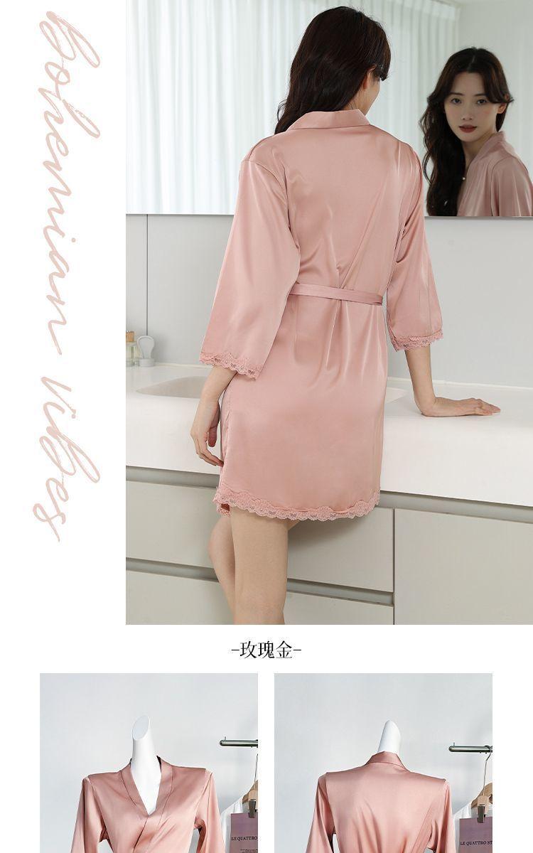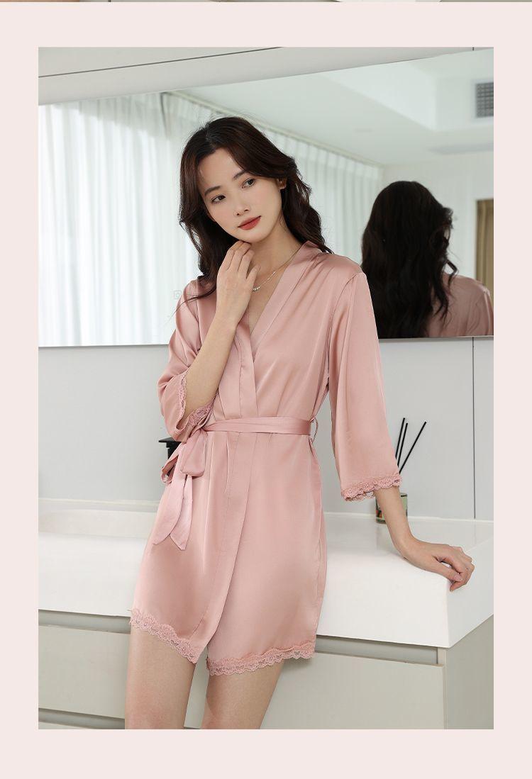 Pijama Nuevo Sexy Simple Color Puro Satén Encaje Cuello Cruzado V Profundo Bata Exterior Camisón Talla Única Ropa de Casa para Mujer