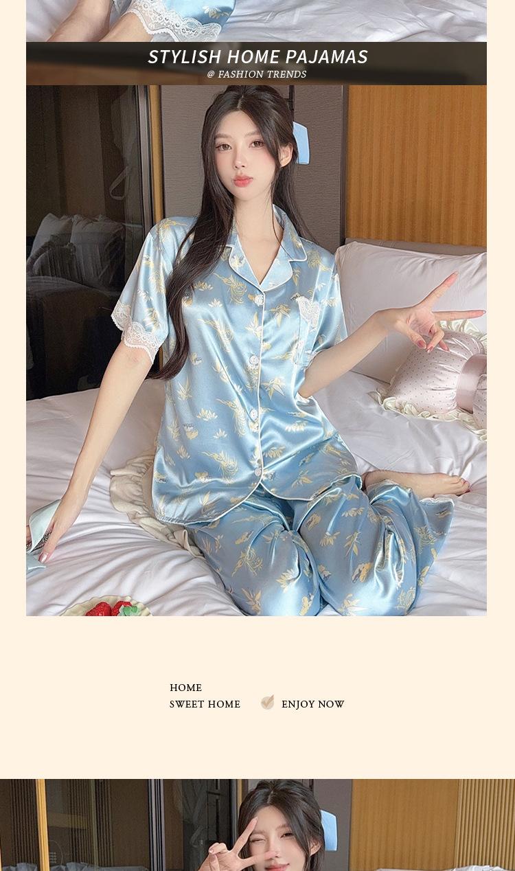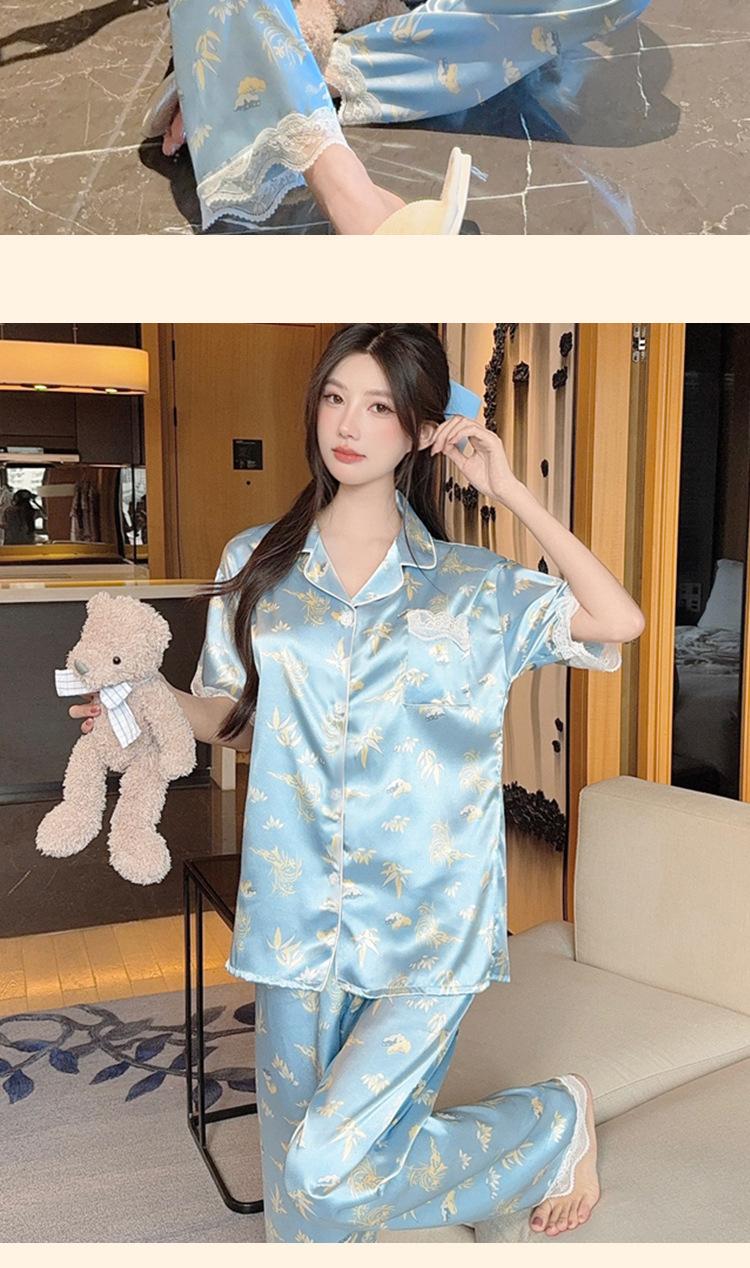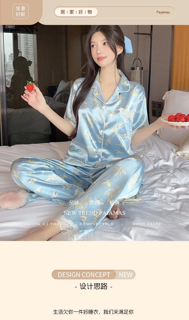 Pijama súper suave para mujer, verano nuevo, lujo antiguo, fresco, manga corta, seda de hielo, pequeño, fresco, traje de ropa para el hogar al por mayor