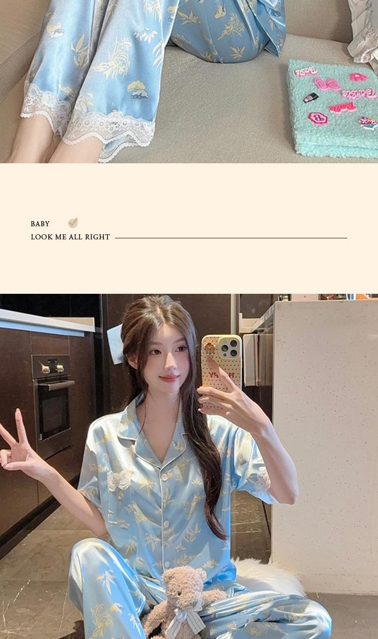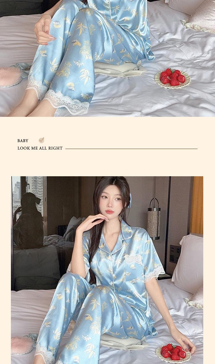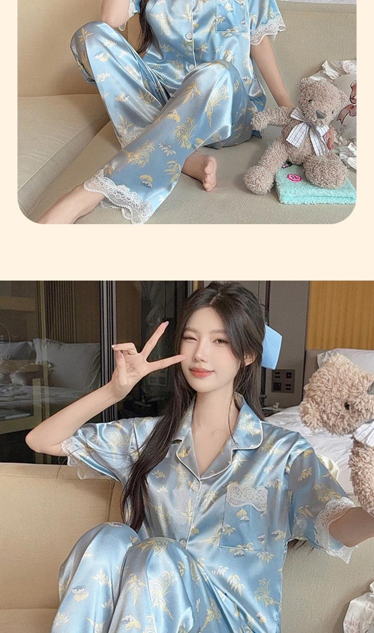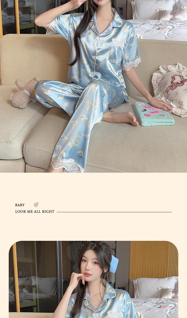 Pijama súper suave para mujer, verano nuevo, lujo antiguo, fresco, manga corta, seda de hielo, pequeño, fresco, traje de ropa para el hogar al por mayor