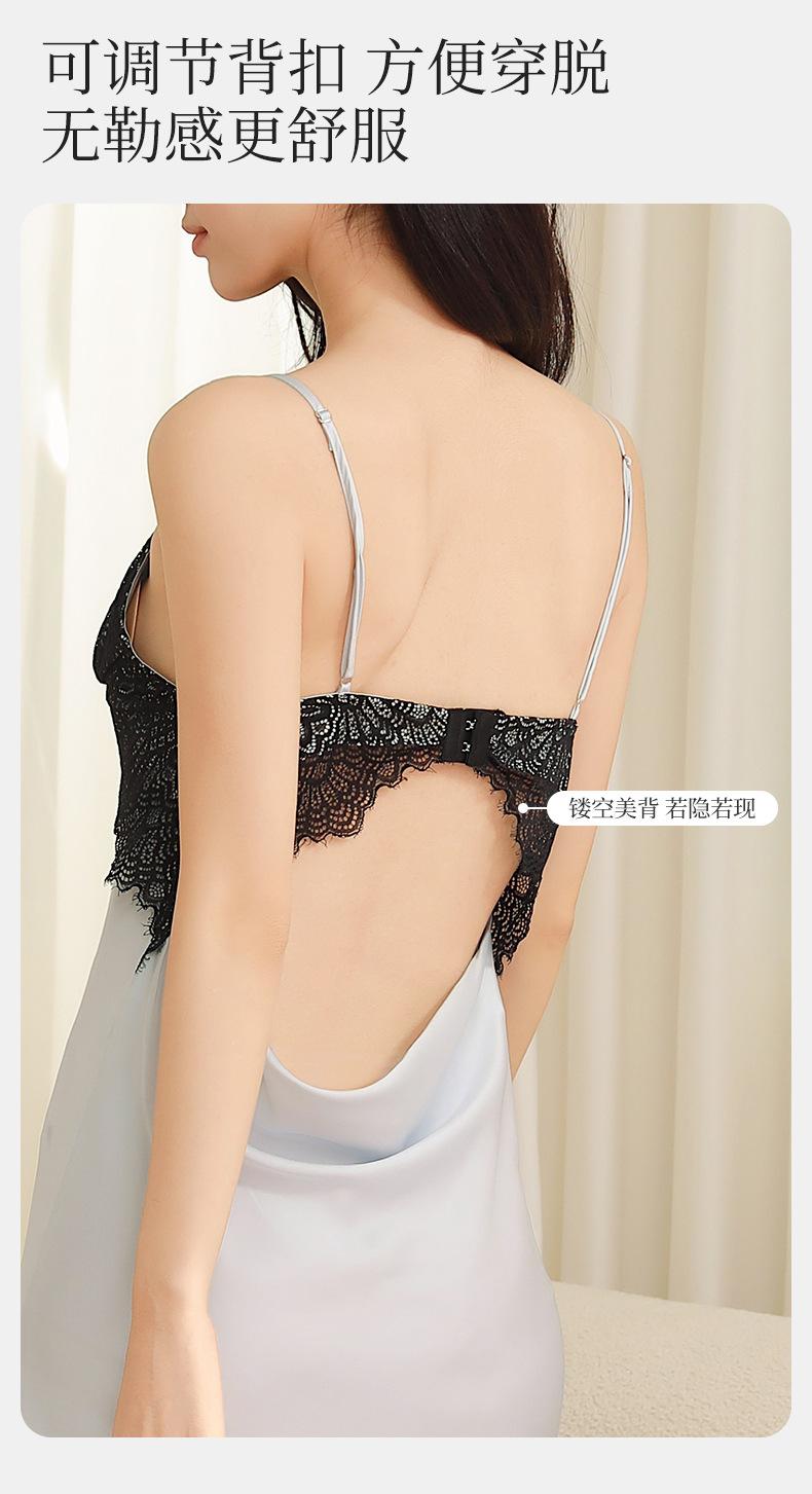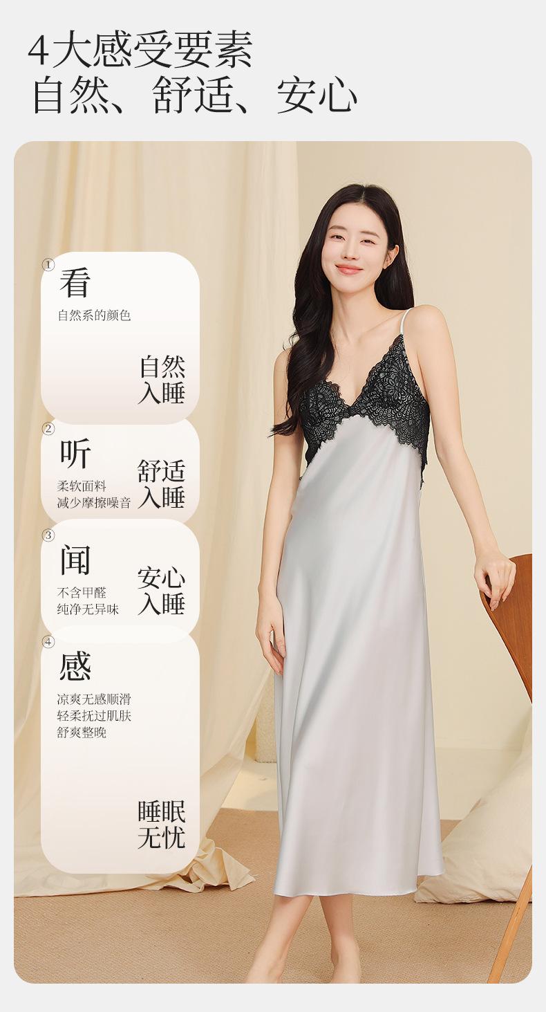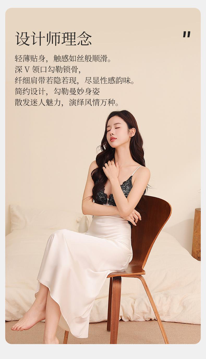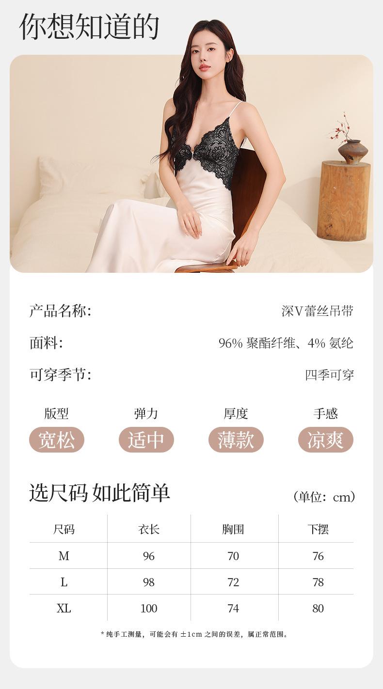 Yu Zhaolin Pijama Sexy de Encaje para Mujer Verano Seda de Hielo Francés Falda con Tirantes Camisón Ropa para el Hogar Falda Larga con Almohadillas en el Busto