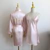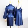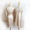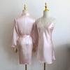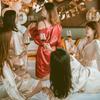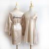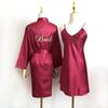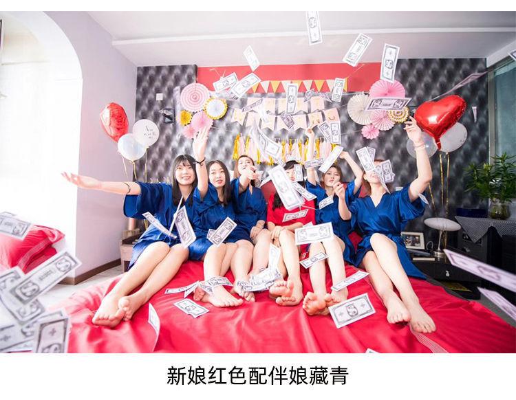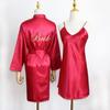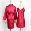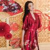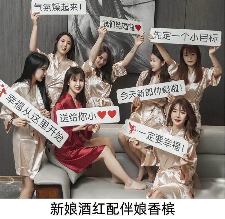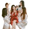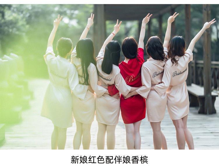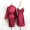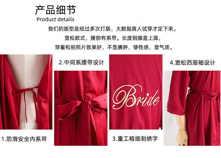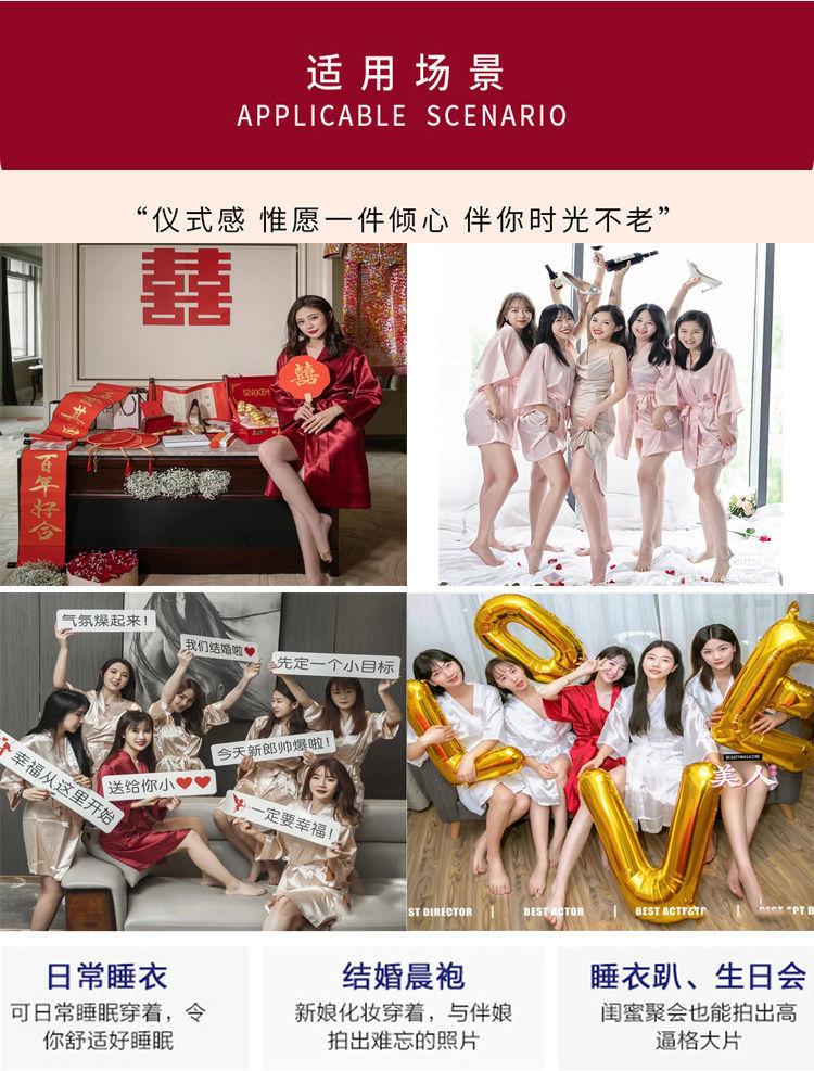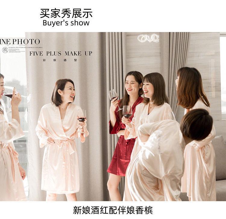 Camisón de Boda Otoño Manga Larga Pijama de Seda de Hielo Seda Hilada Vestido de Dama de Honor Fiesta de Mejores Amigas Rojo Bata de Vestir de Boda Femenino Novia