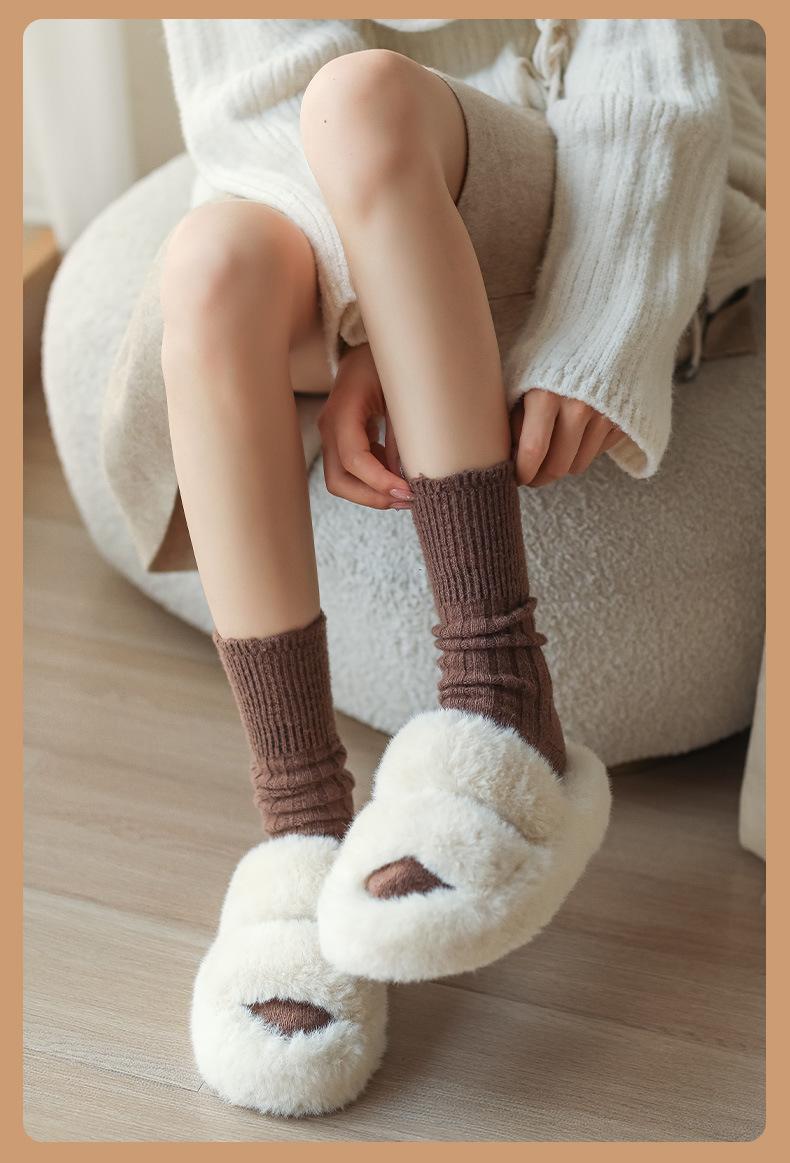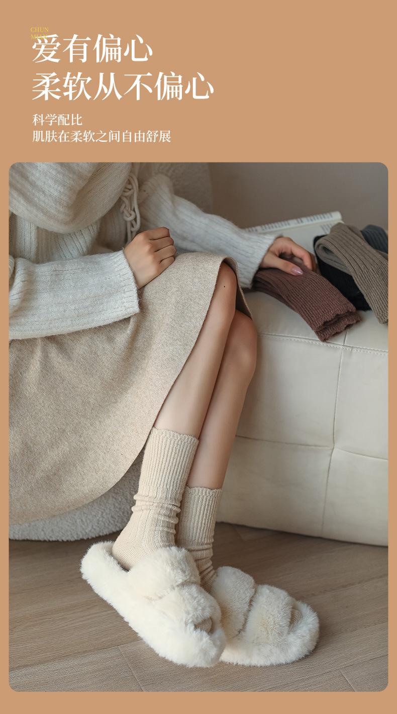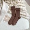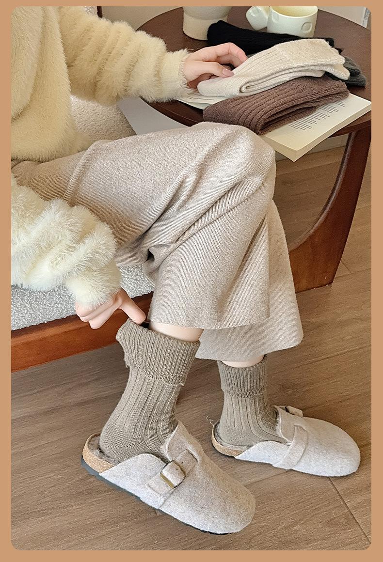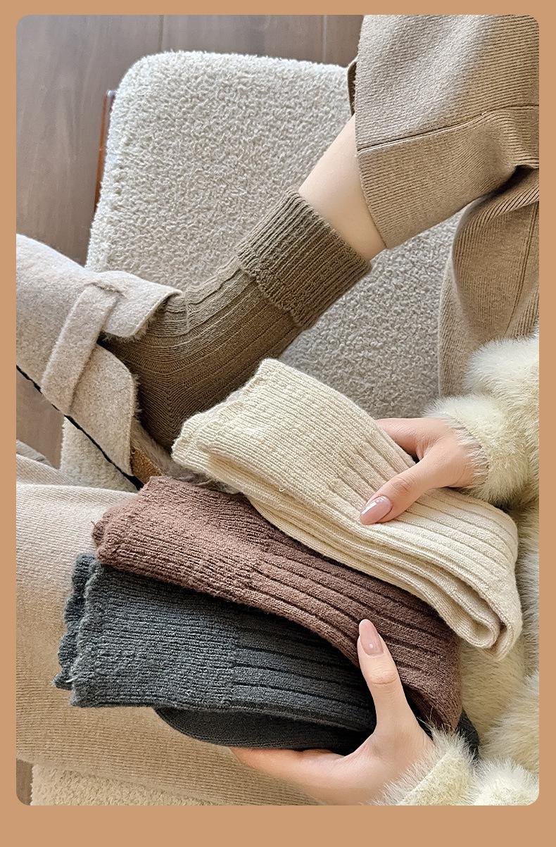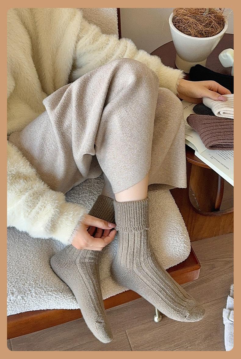 Calcetines para mujer otoño e invierno calcetines gruesos cálidos de tubo color sólido versátiles casuales calcetines de moda de doble aguja calcetines cálidos de felpa de terciopelo