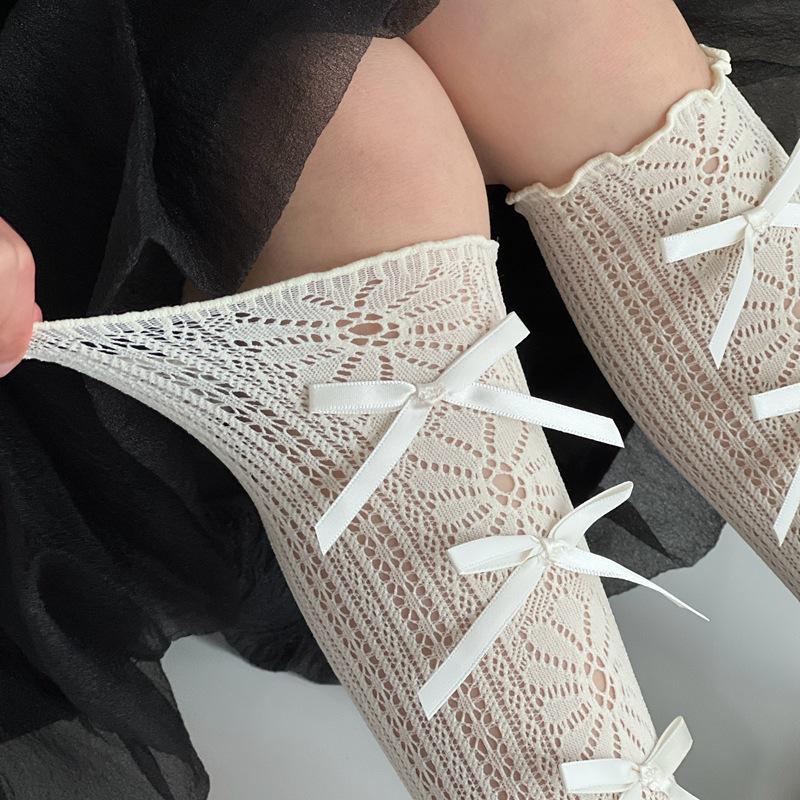 Calcetines de Encaje Lolita para Mujer, Calcetines Largos de Malla Blanca de Verano Jk para Zapatos Mary Jane Delgados, Calcetines Holgados de Media Caña