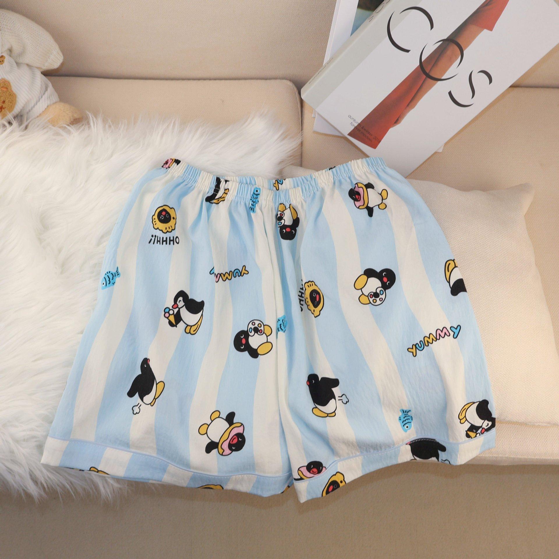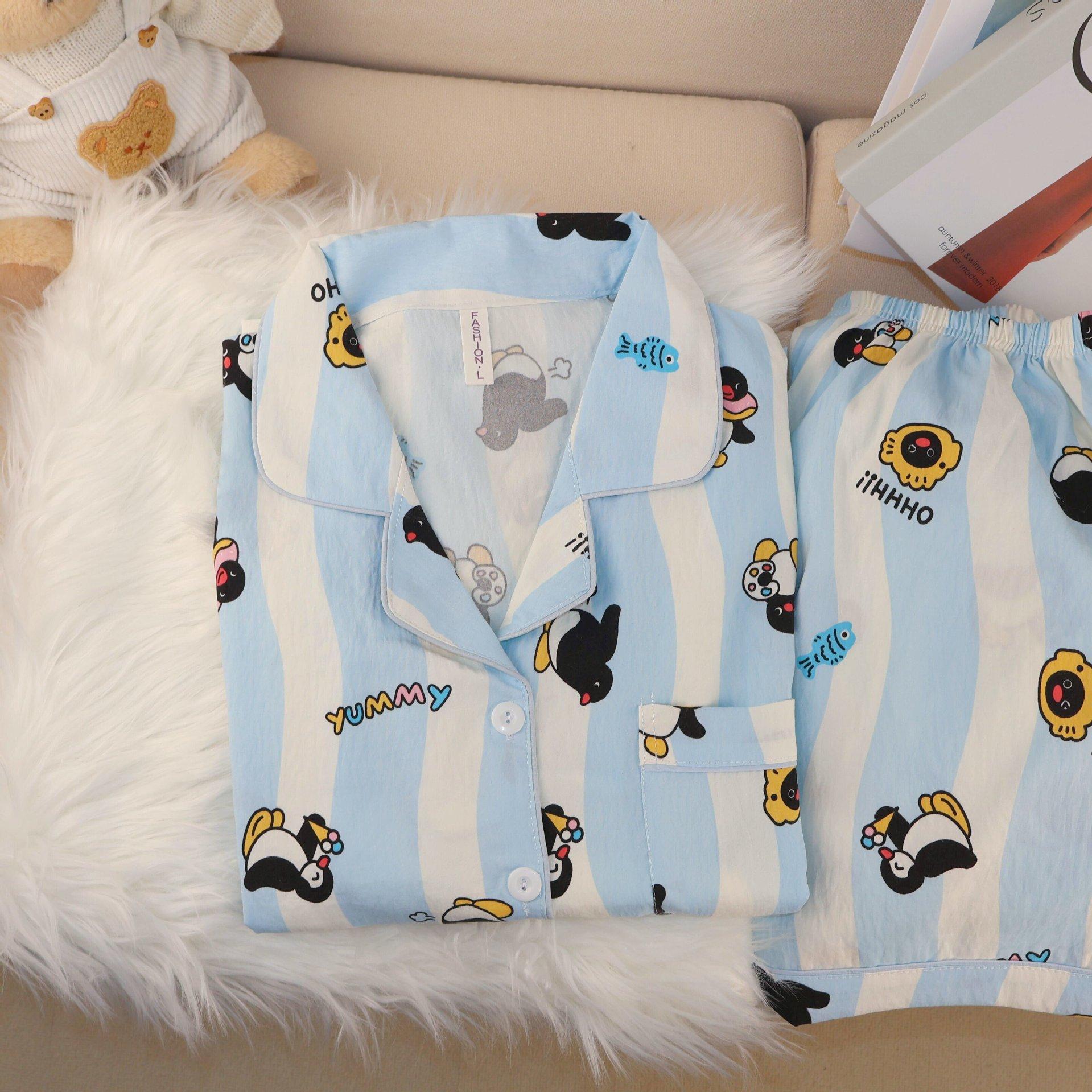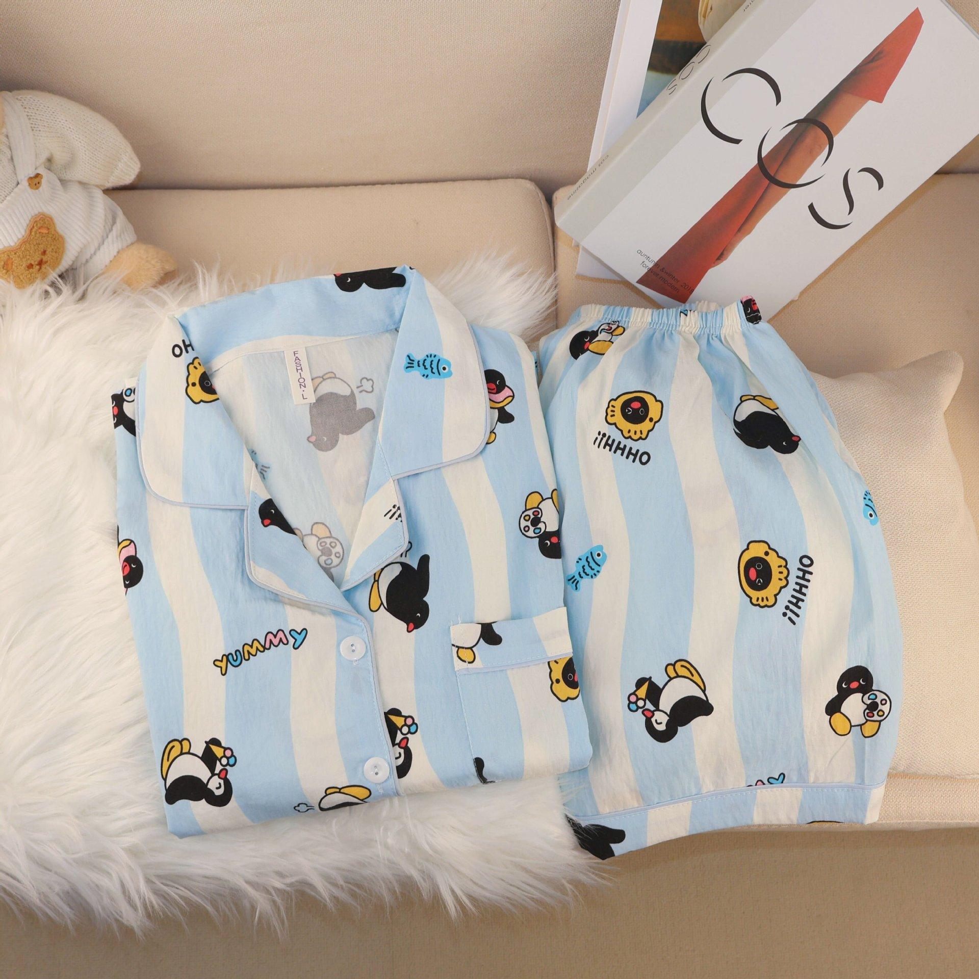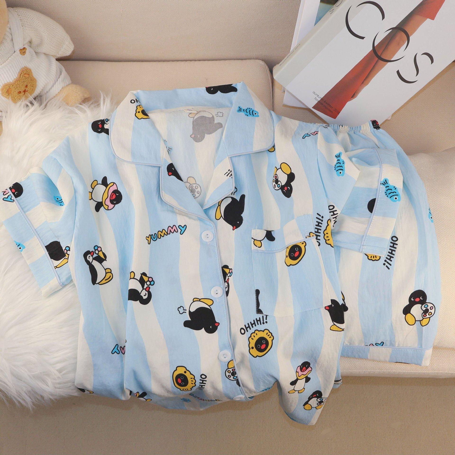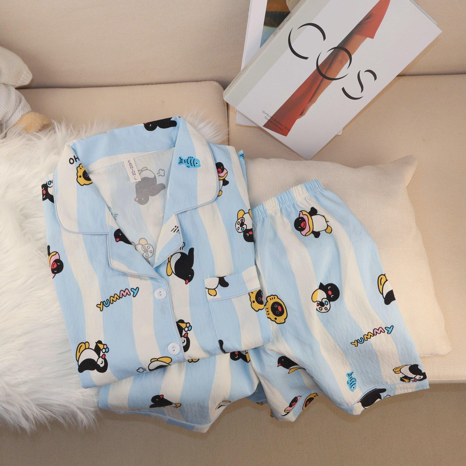 Pijamas de Algodón Nube para Mujer Verano Nuevo Manga Corta Shorts Estudiante Dulce Lindo Pingüino Traje Ropa para el Hogar para Exterior