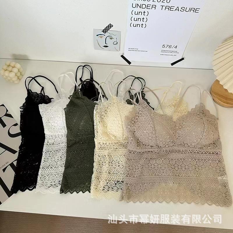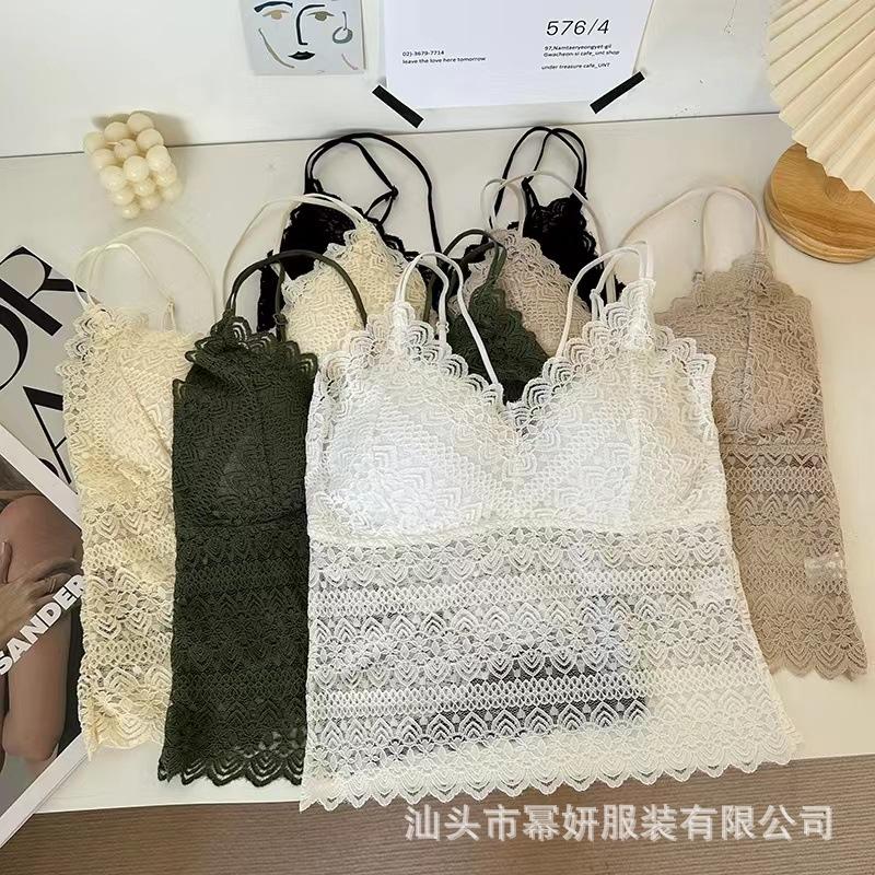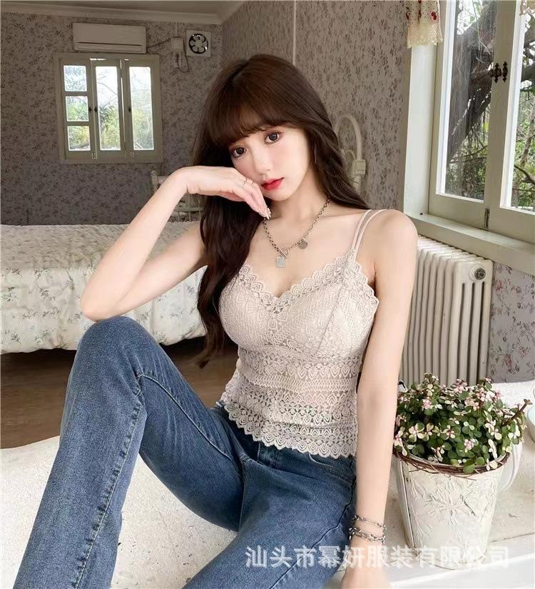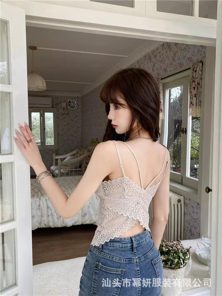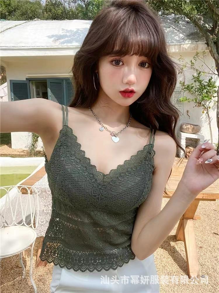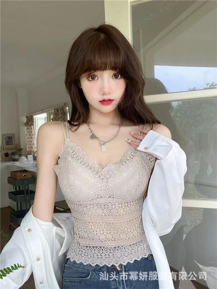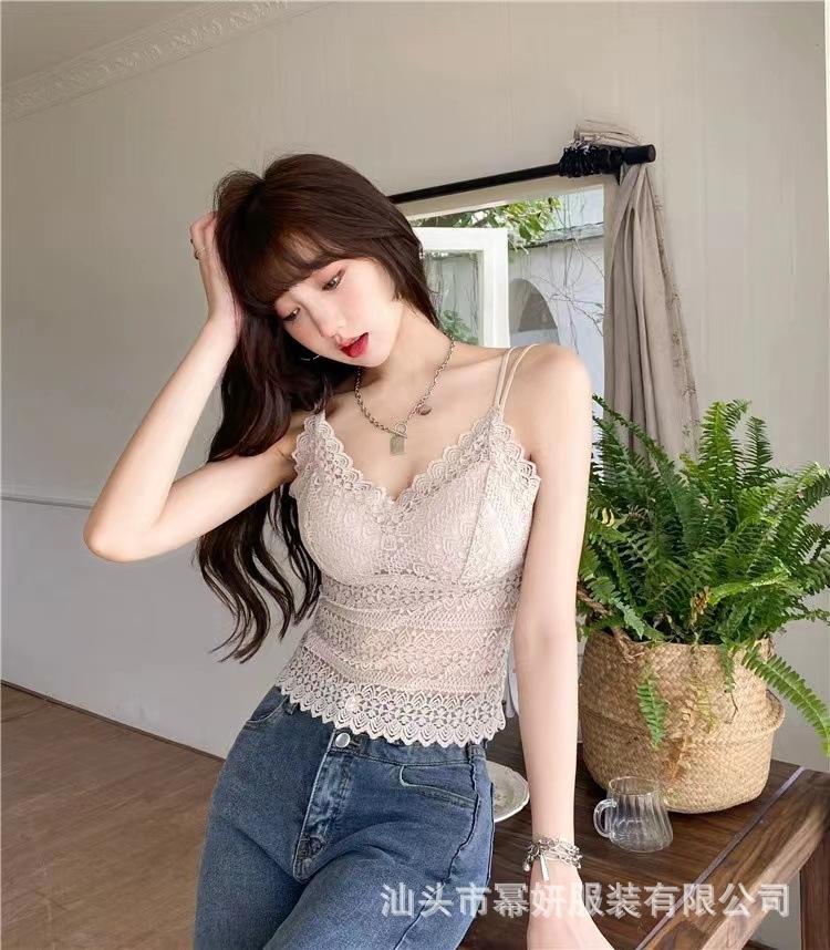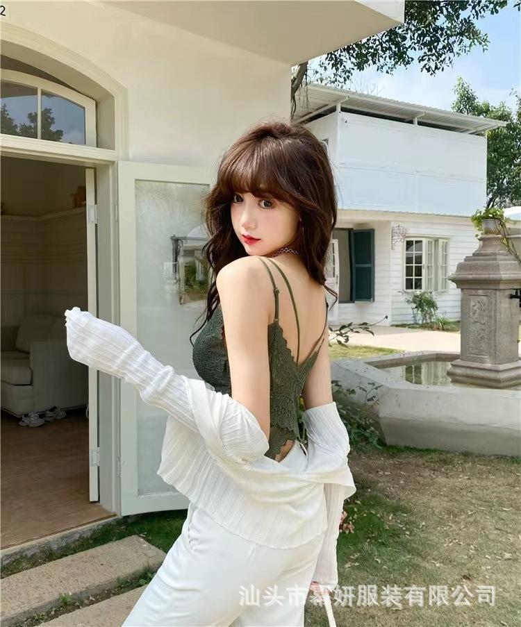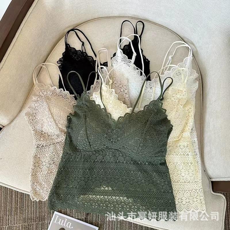 Encaje sexy puro cuello en V tirantes dobles tirante interior con almohadilla en el pecho chaleco espalda de belleza chica caliente delgada top