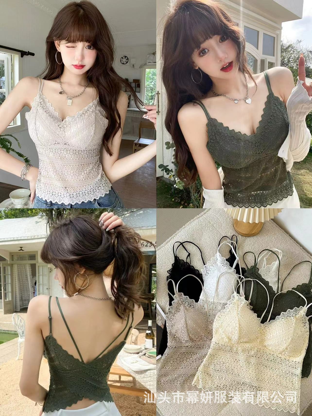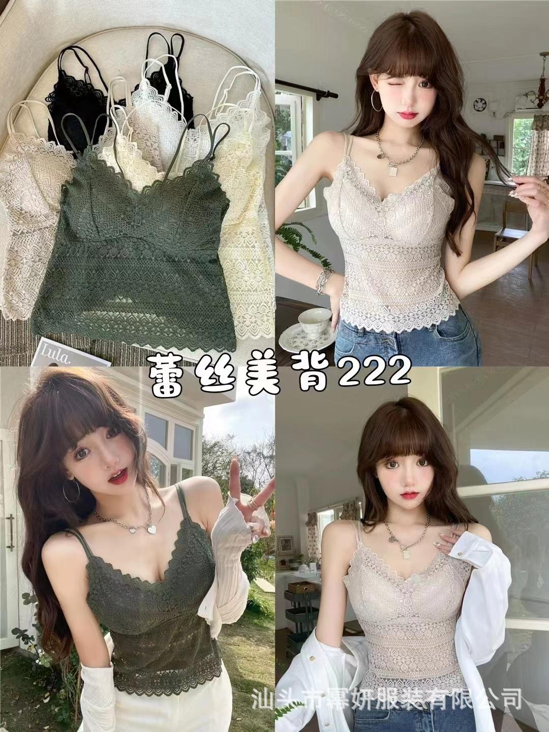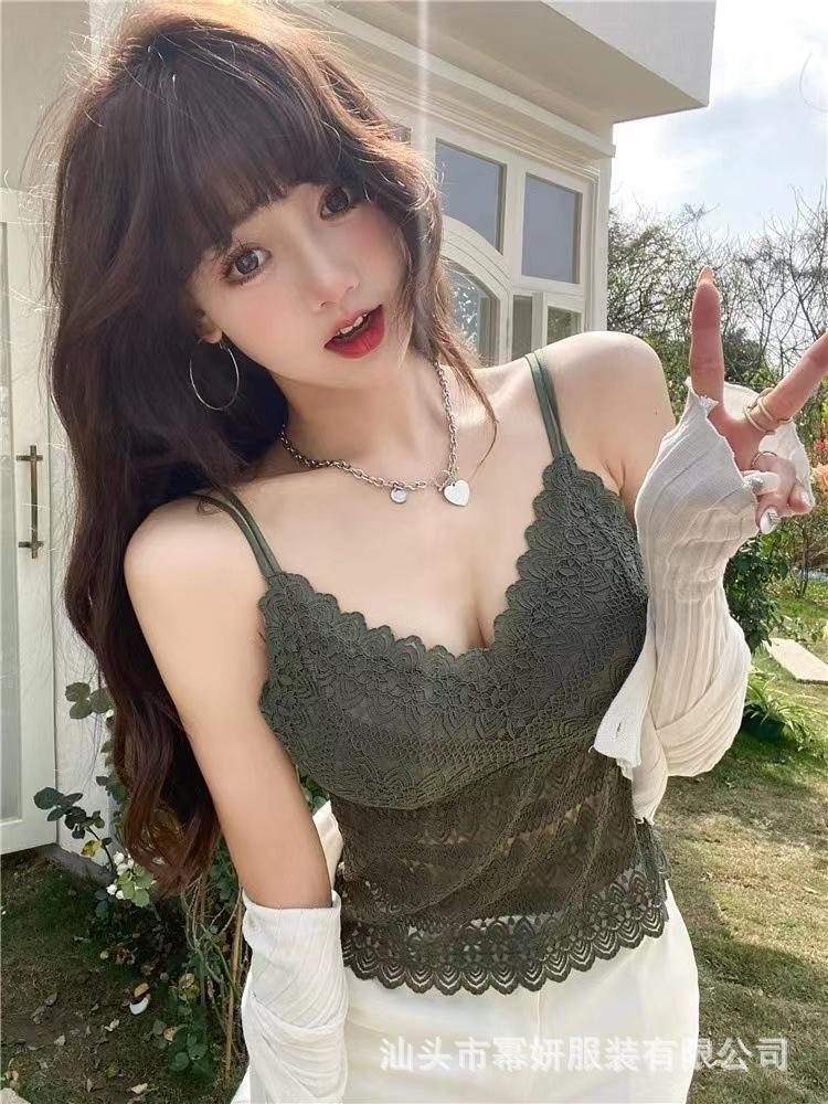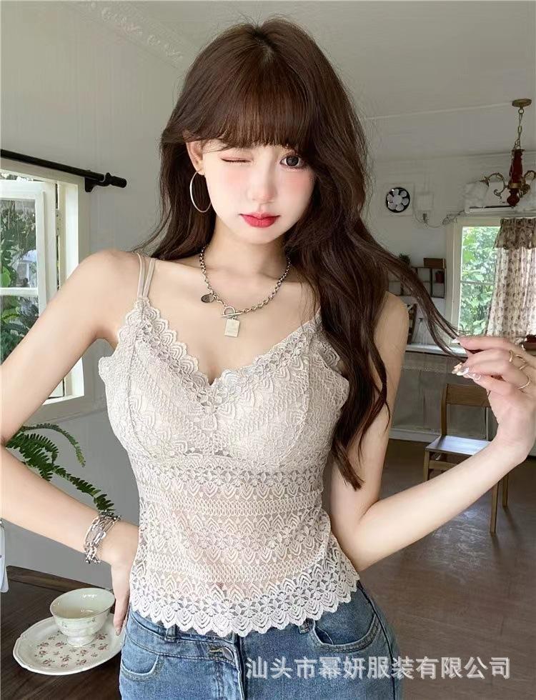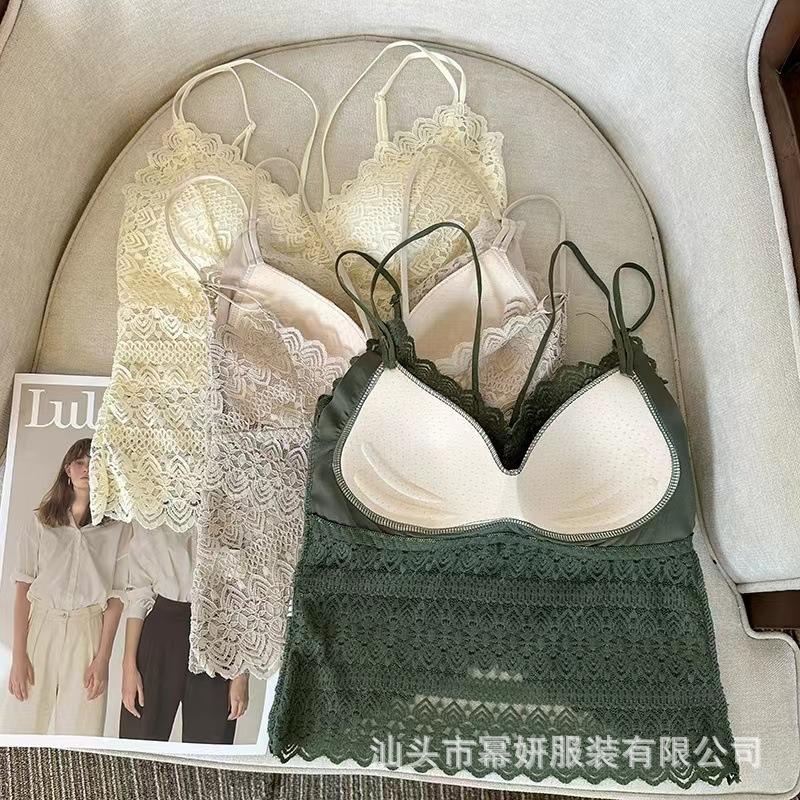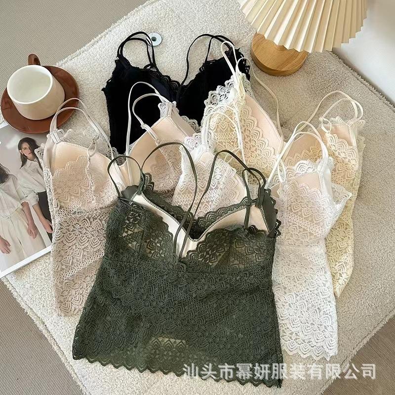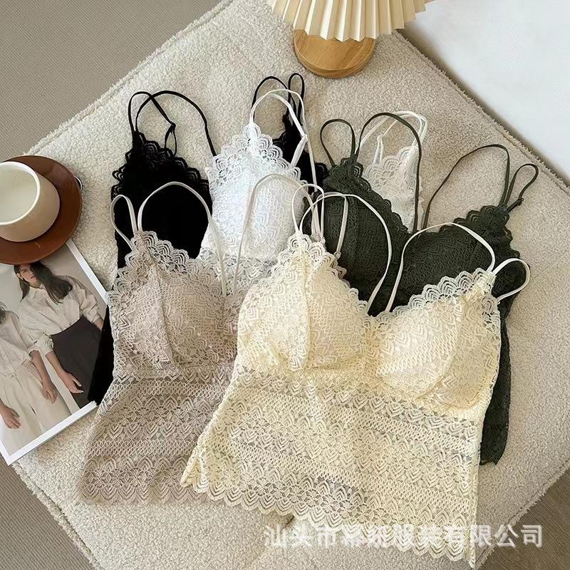 Encaje sexy puro cuello en V tirantes dobles tirante interior con almohadilla en el pecho chaleco espalda de belleza chica caliente delgada top