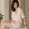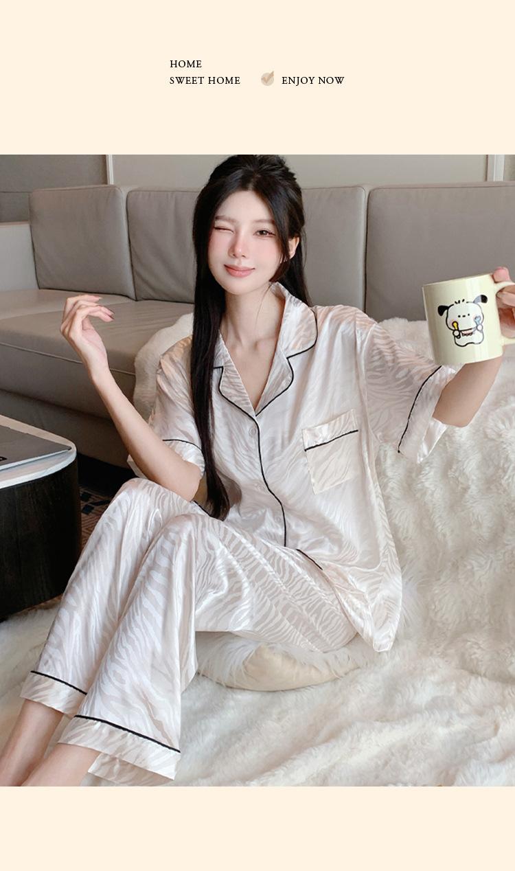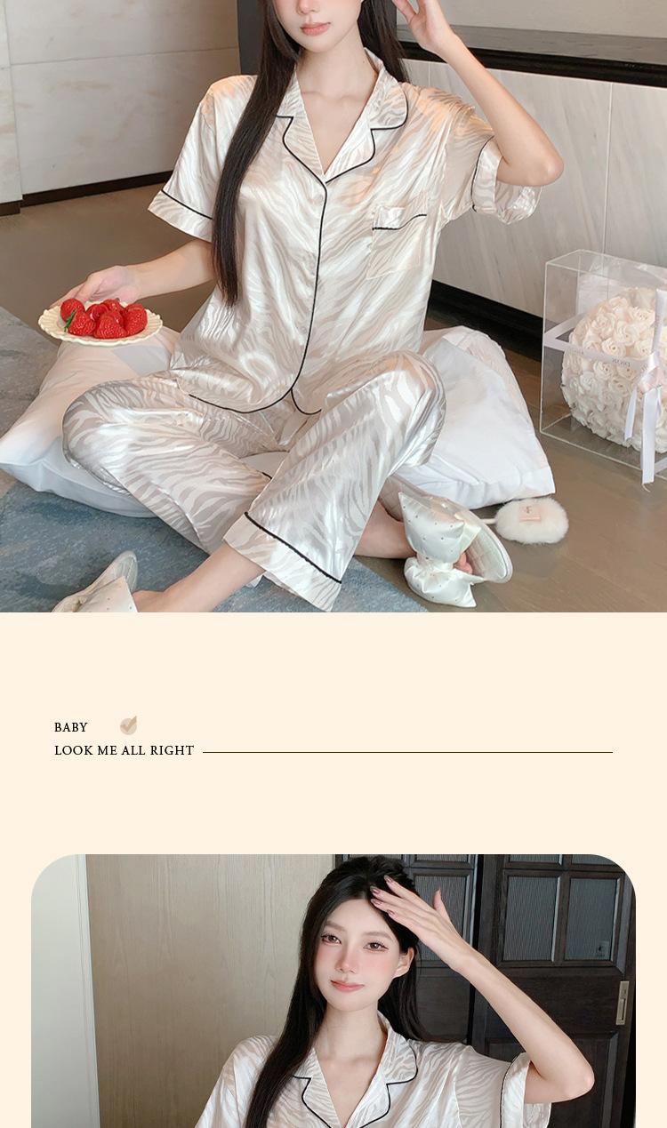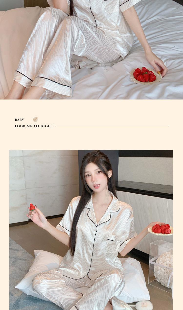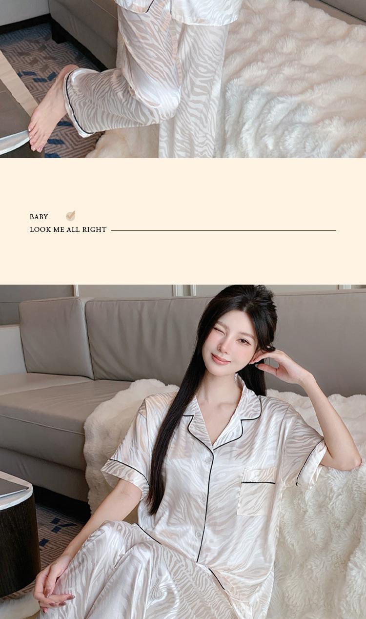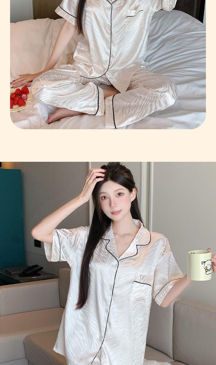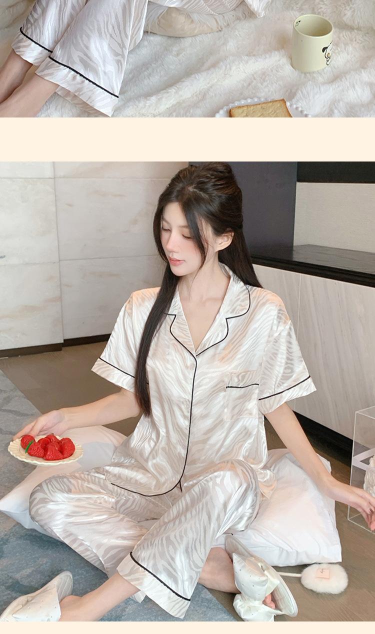 Pijama de Verano de Seda de Hielo de Alta Calidad de Color Sólido para Mujer con Patrón Jacquard de Cebra de Lujo Ligero Ropa para el Hogar Traje de Manga Corta Venta al por Mayor