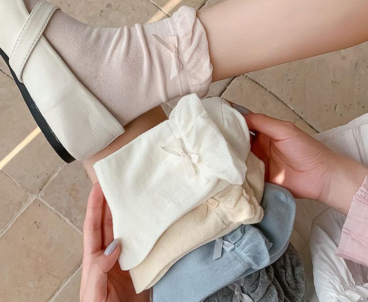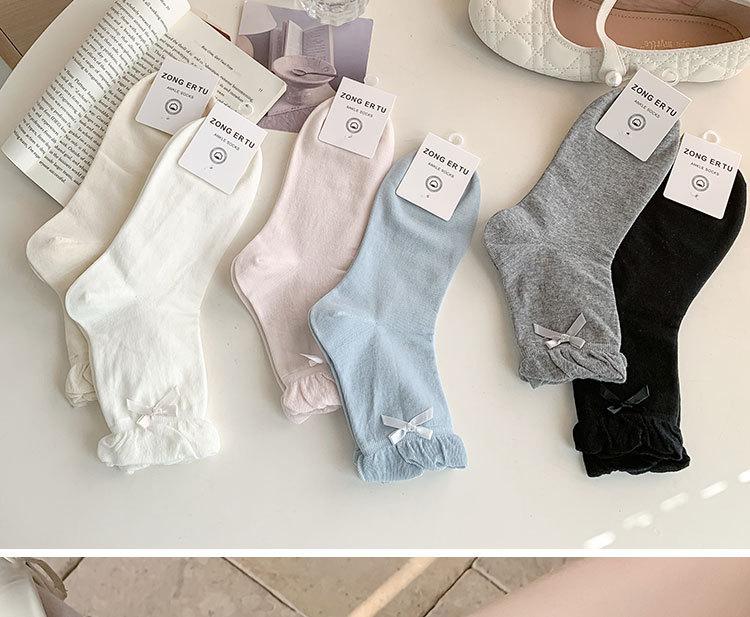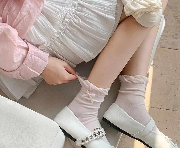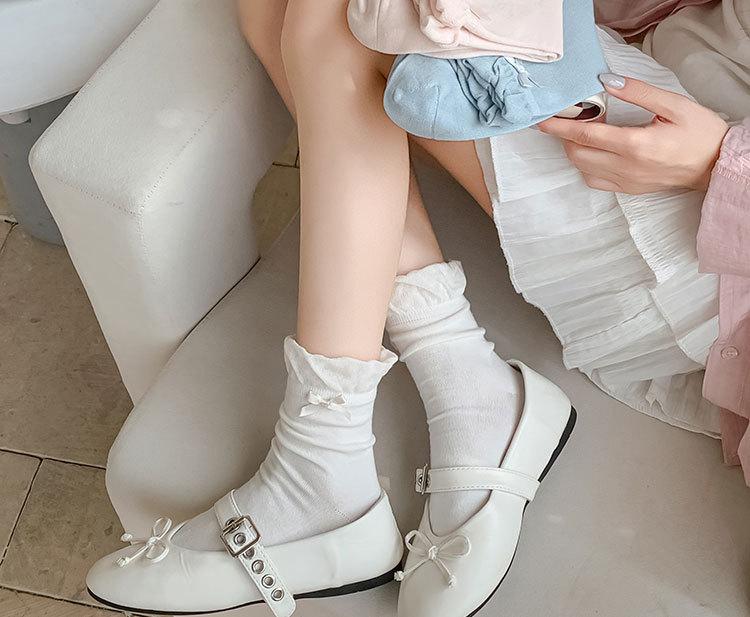 Calcetines finos de encaje de primavera y verano calcetines de algodón para niños calcetines de algodón absorbentes de sudor lindos estilo japonés borde de burbuja calcetines con lazo