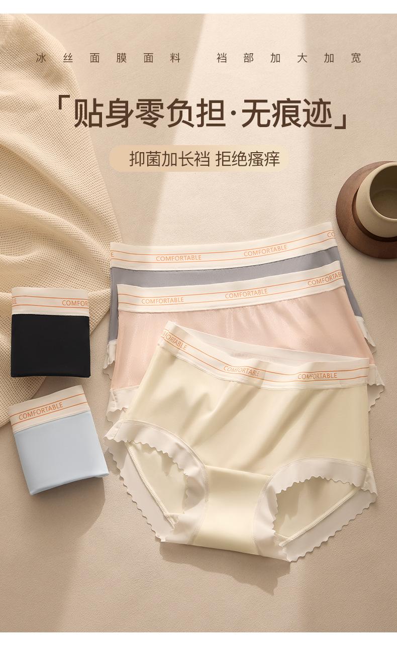 Calzones de Mujer Ligeros de Alta Elasticidad de Cintura Media Sin Costuras de Seda de Hielo Cómodos de Algodón Puro Entrepierna Antibacteriana Extendida Ropa Interior de Mujer