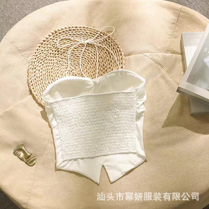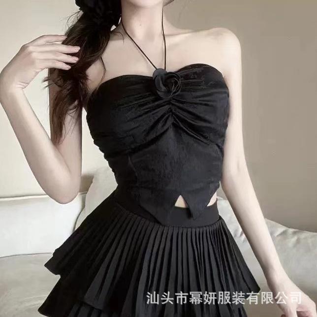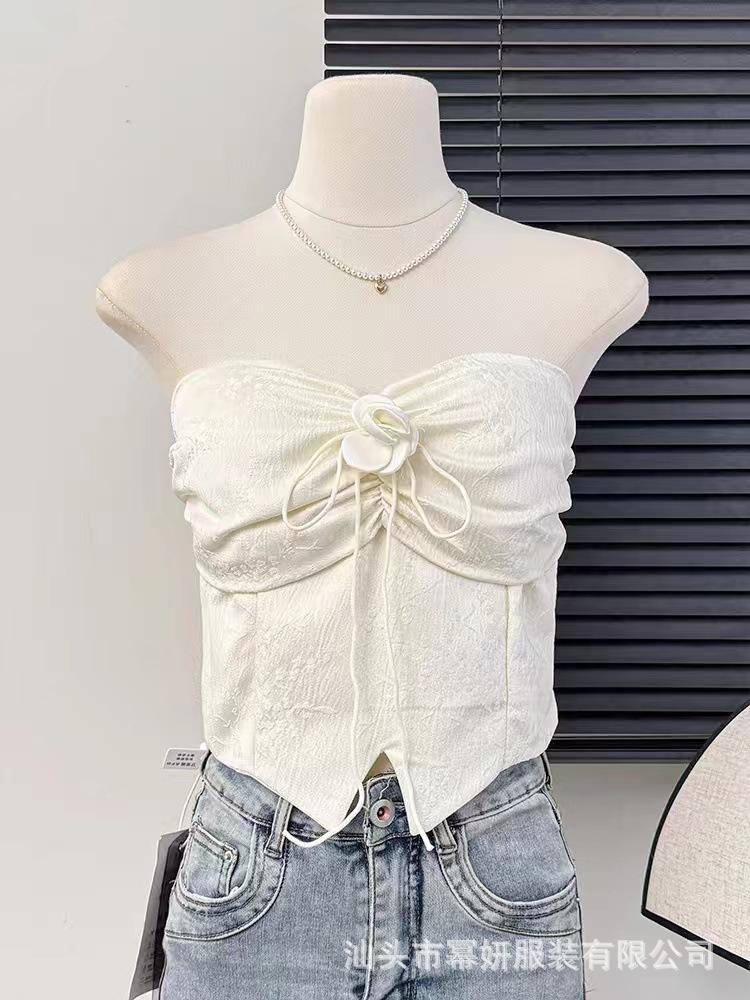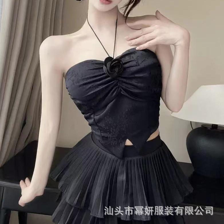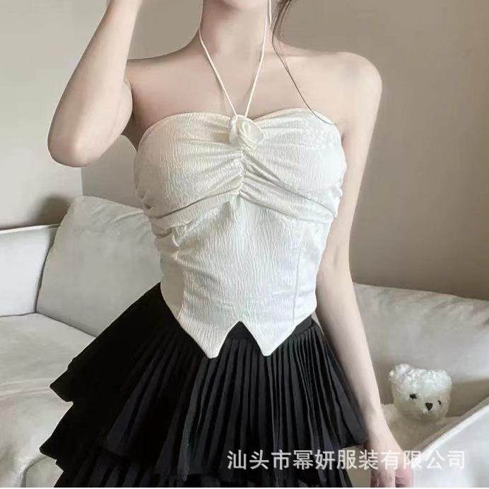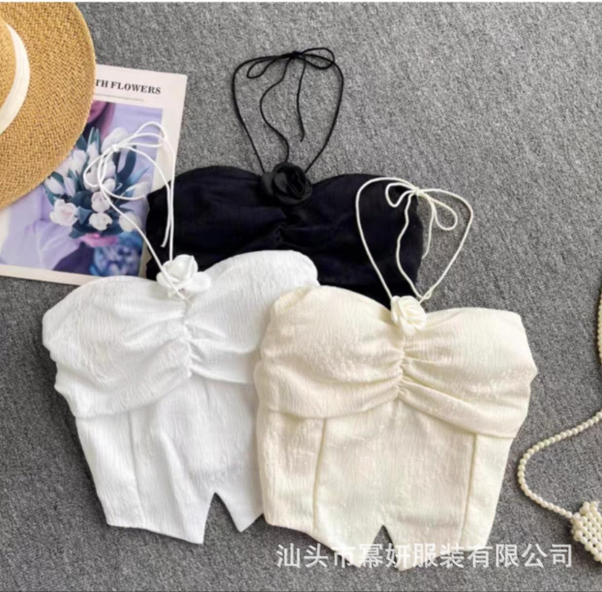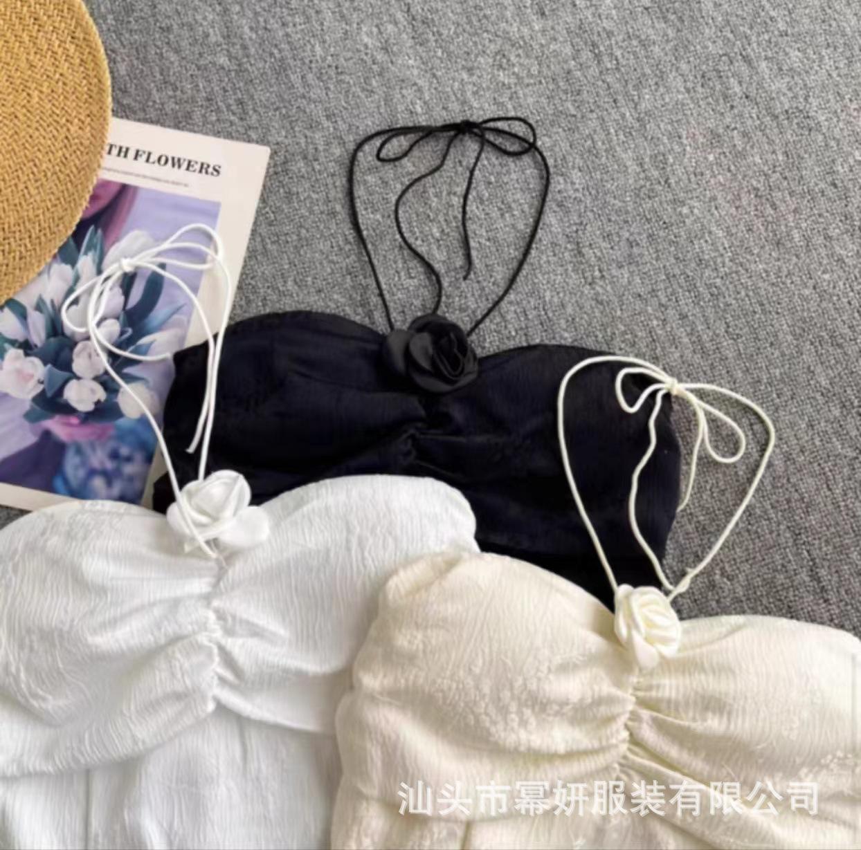 Estilo Deseo Puro Camisola Jacquard Halter con Flor Tridimensional con Almohadilla en el Pecho Anti-corrida Top con Hombros Descubiertos