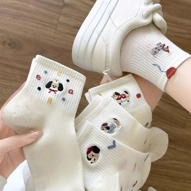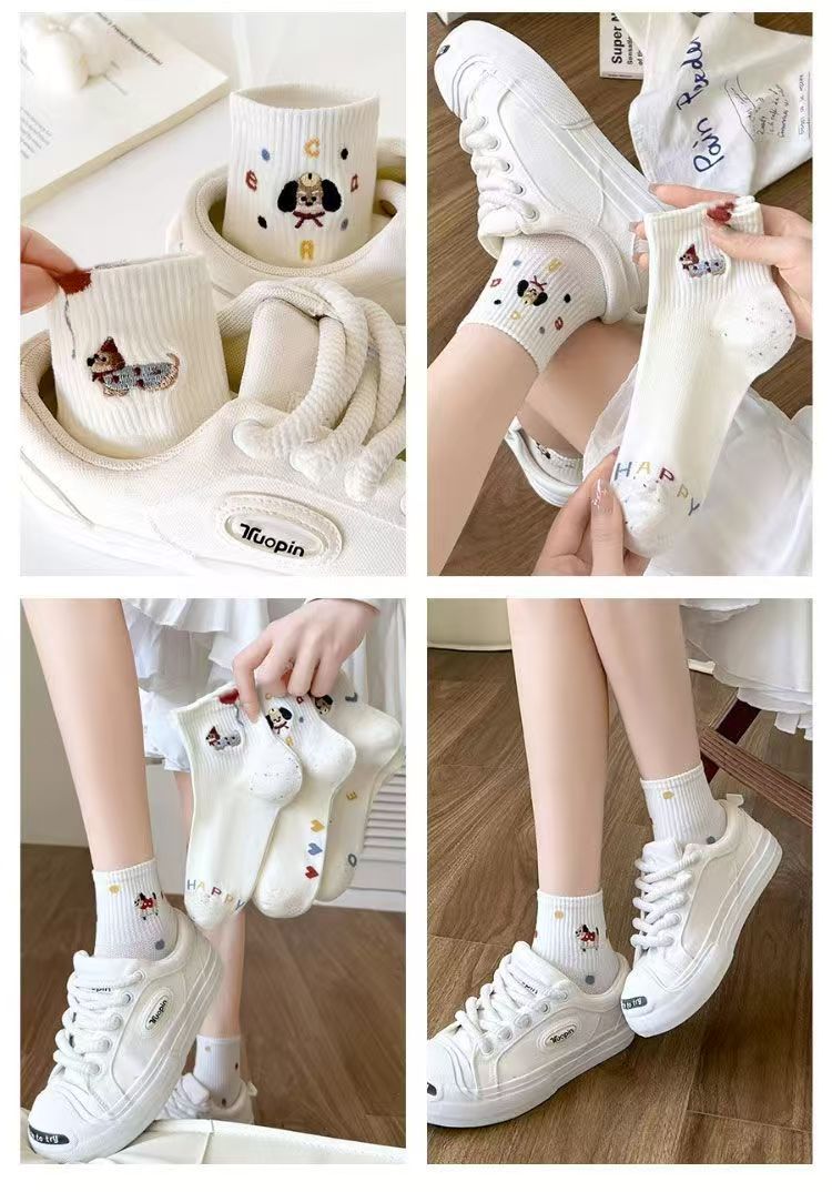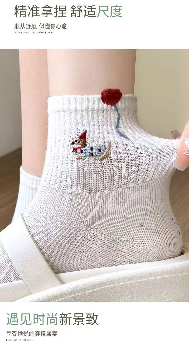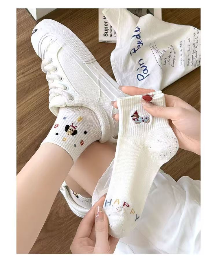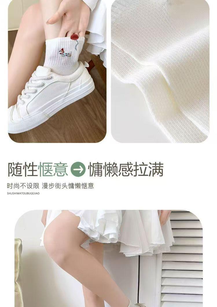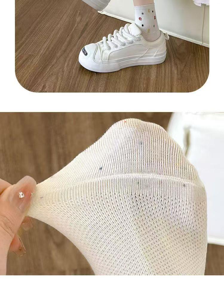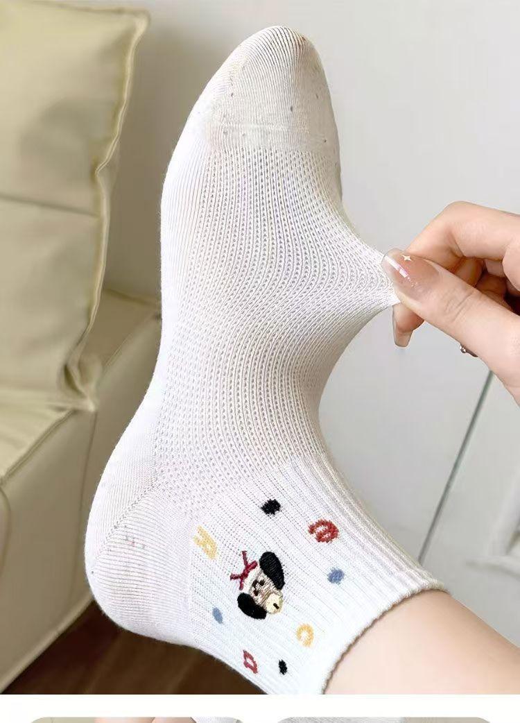 Calcetines Blancos Calcetines Cortos de Mujer Dulce Verano Dibujos Animados Deportes Malla Transpirable Antibacterianos y Desodorantes 2025 Nuevo Estilo Caliente