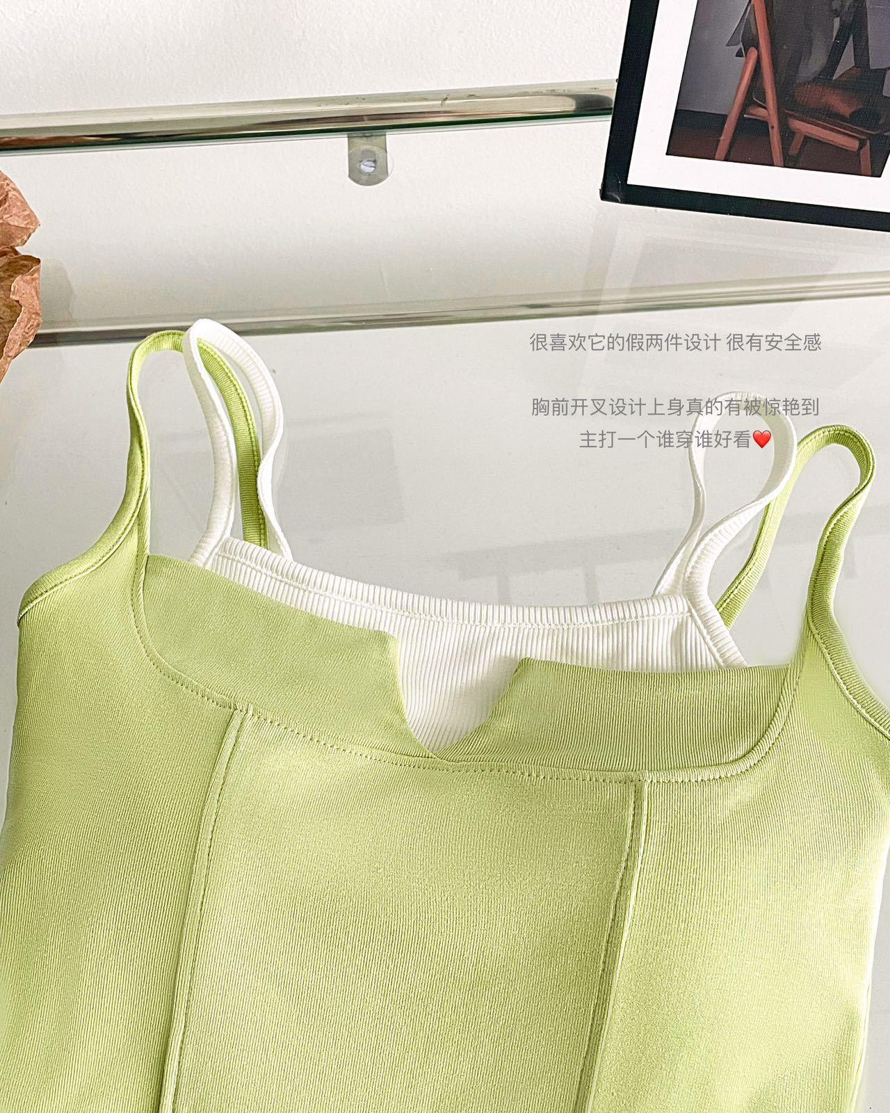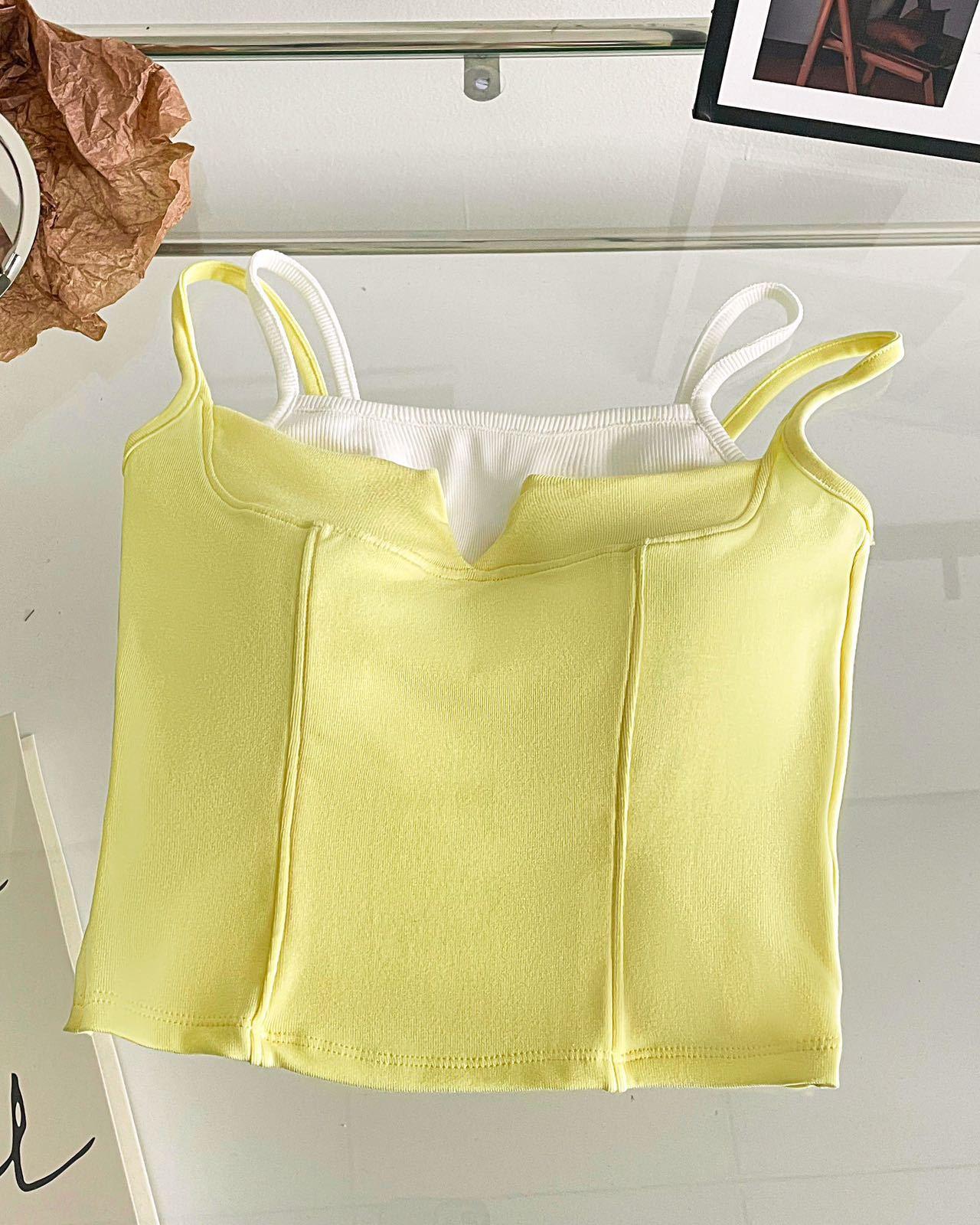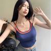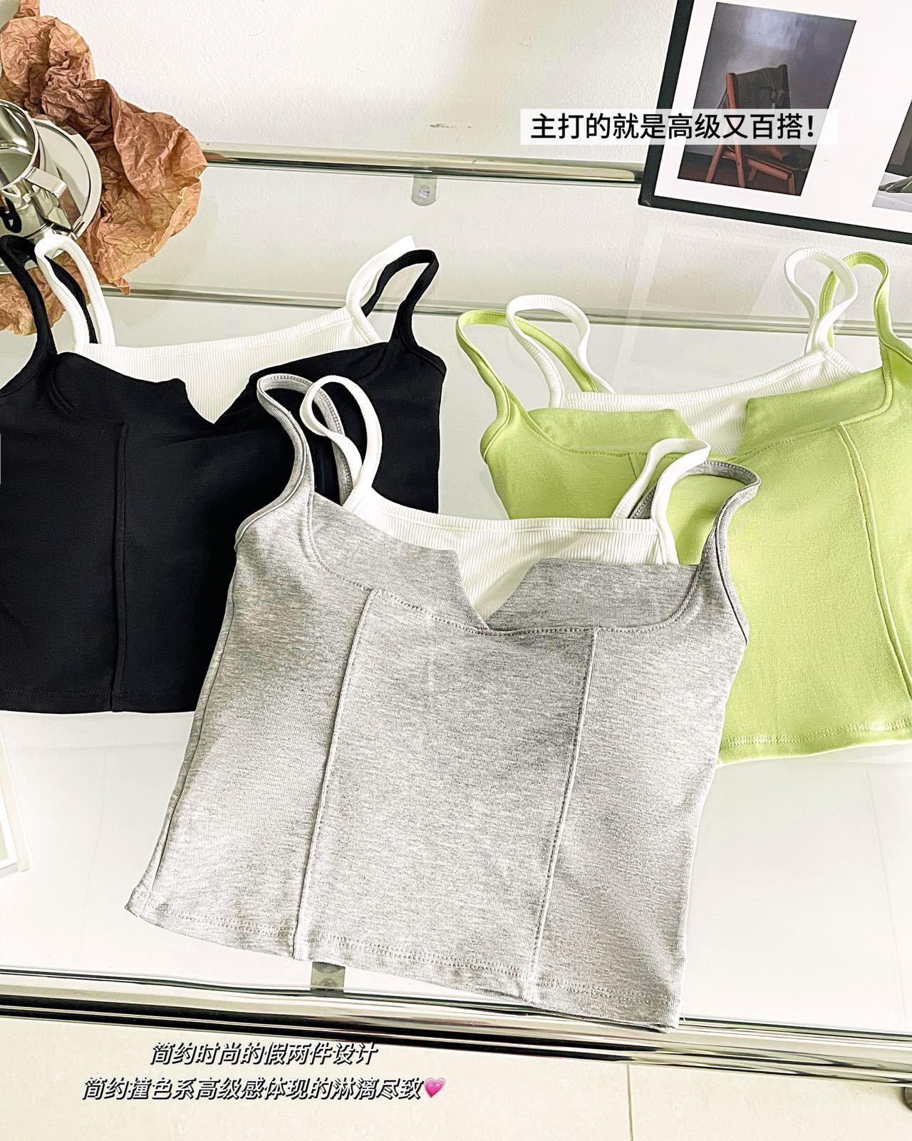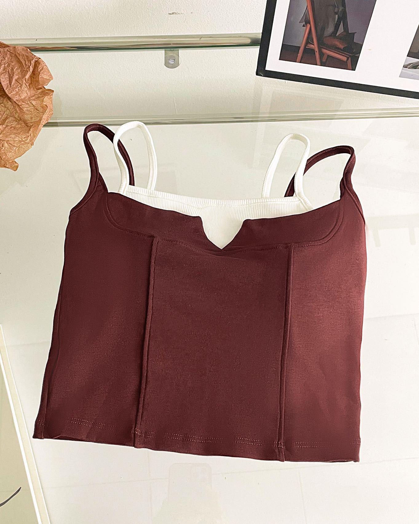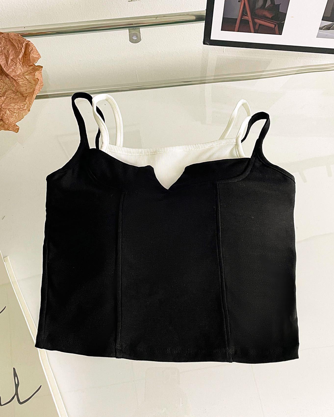 Deseo Puro Estilo Chica Caliente Contraste de Color Falso Dos Piezas Camisola de Verano para Mujer Sexy Hermosa Espalda Adelgazante Corta Top Interior