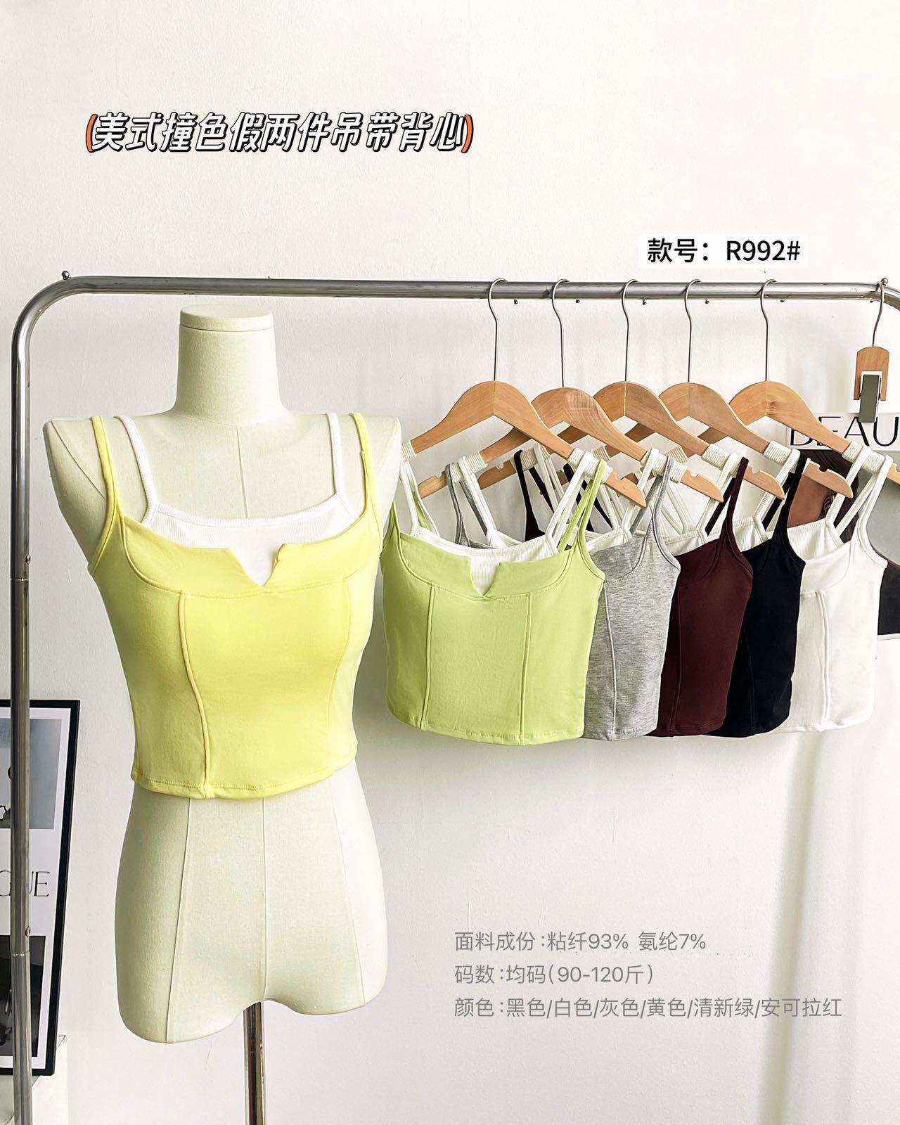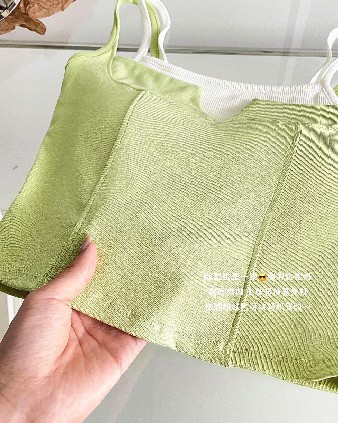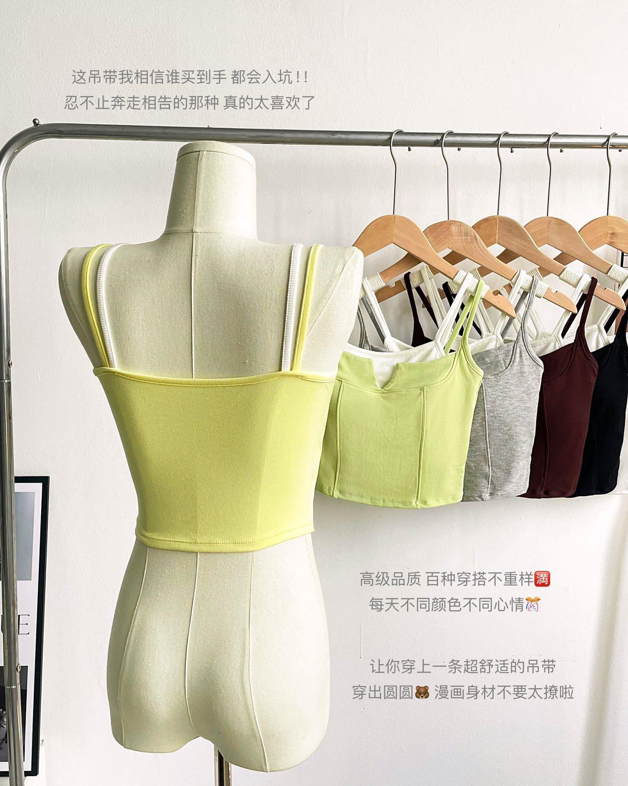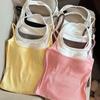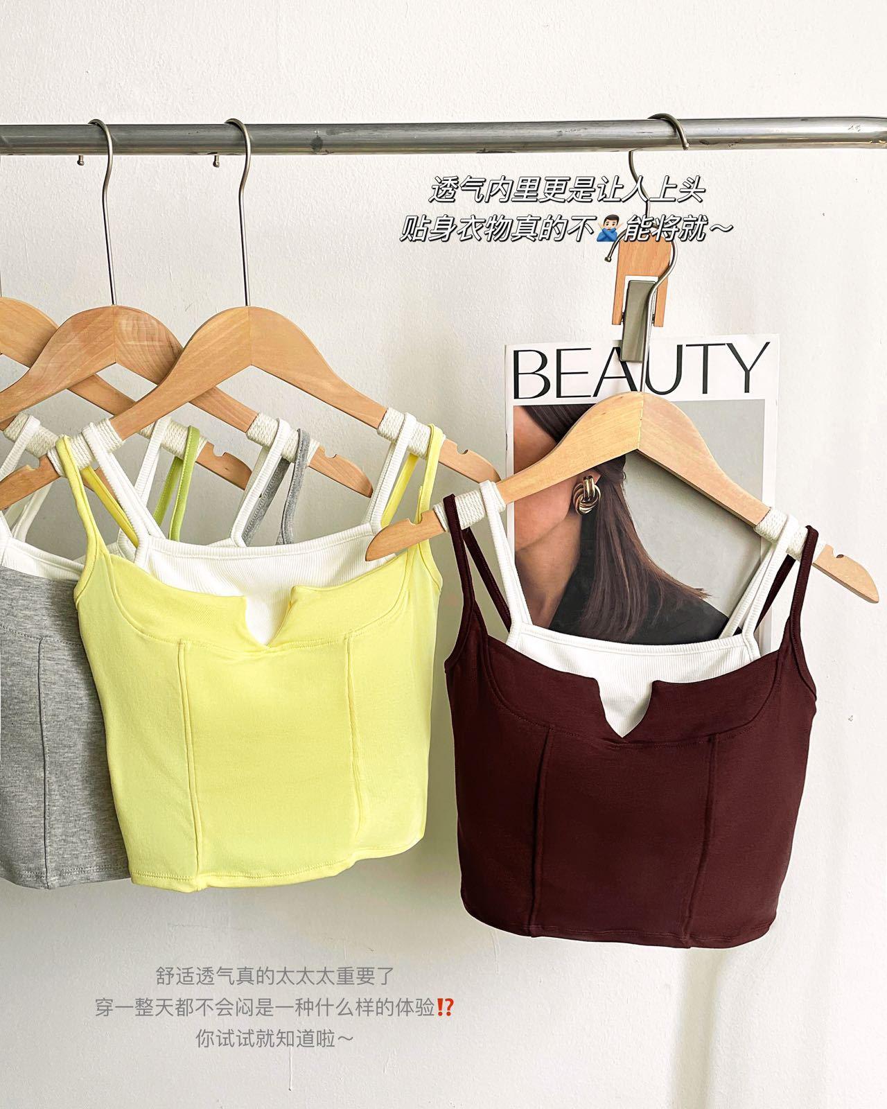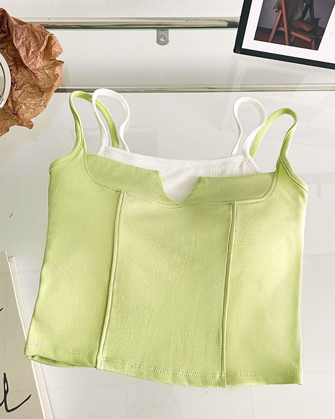 Deseo Puro Estilo Chica Caliente Contraste de Color Falso Dos Piezas Camisola de Verano para Mujer Sexy Hermosa Espalda Adelgazante Corta Top Interior
