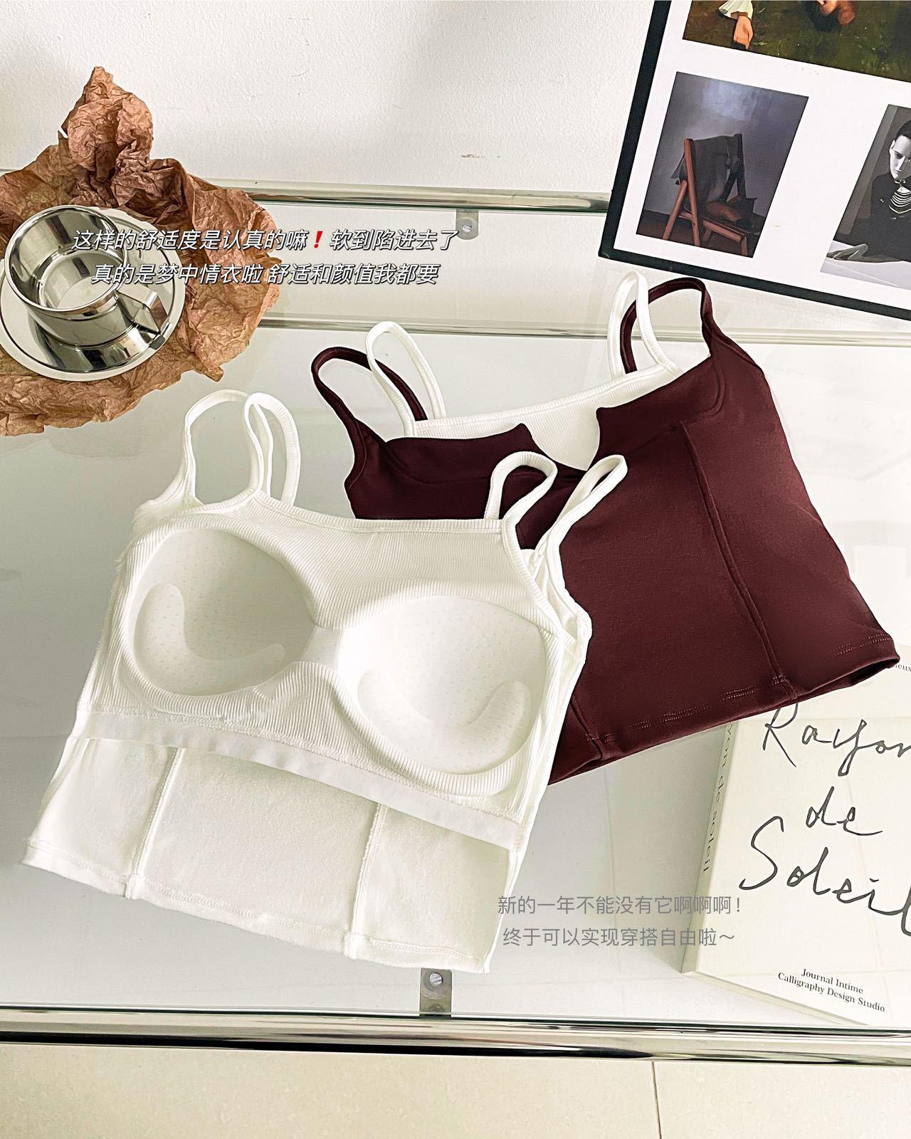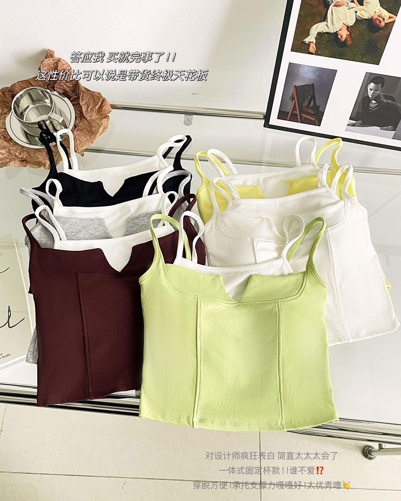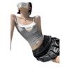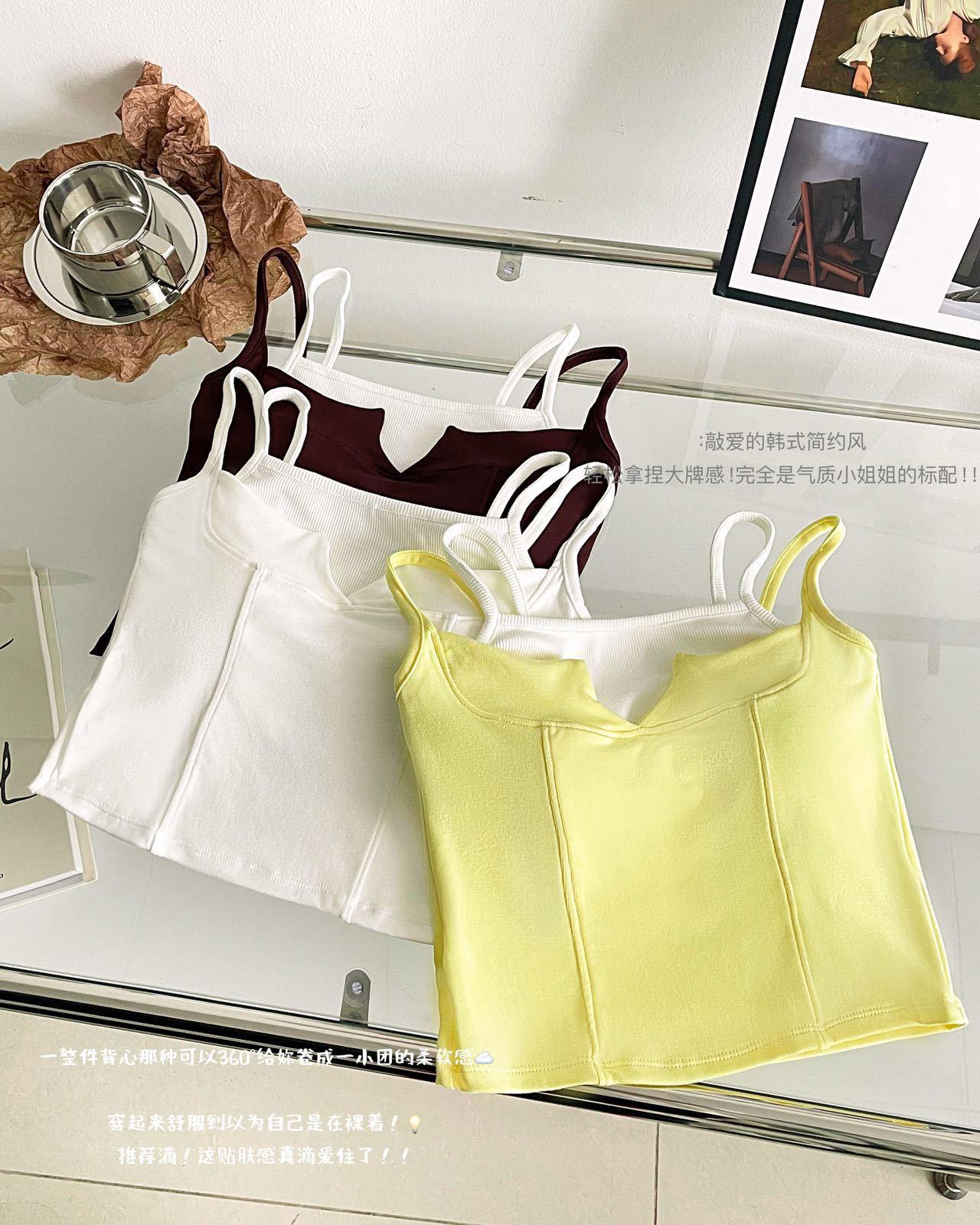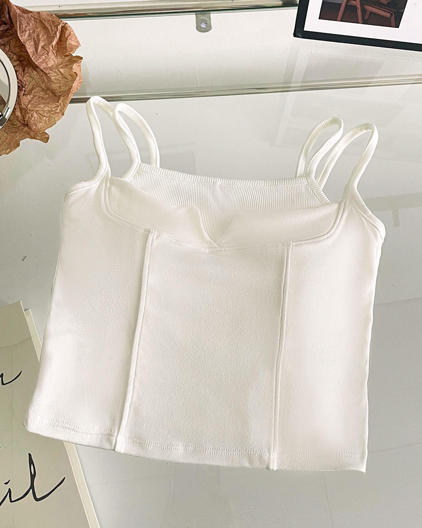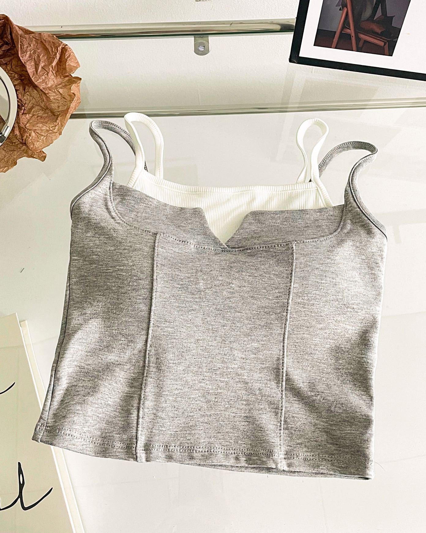 Deseo Puro Estilo Chica Caliente Contraste de Color Falso Dos Piezas Camisola de Verano para Mujer Sexy Hermosa Espalda Adelgazante Corta Top Interior